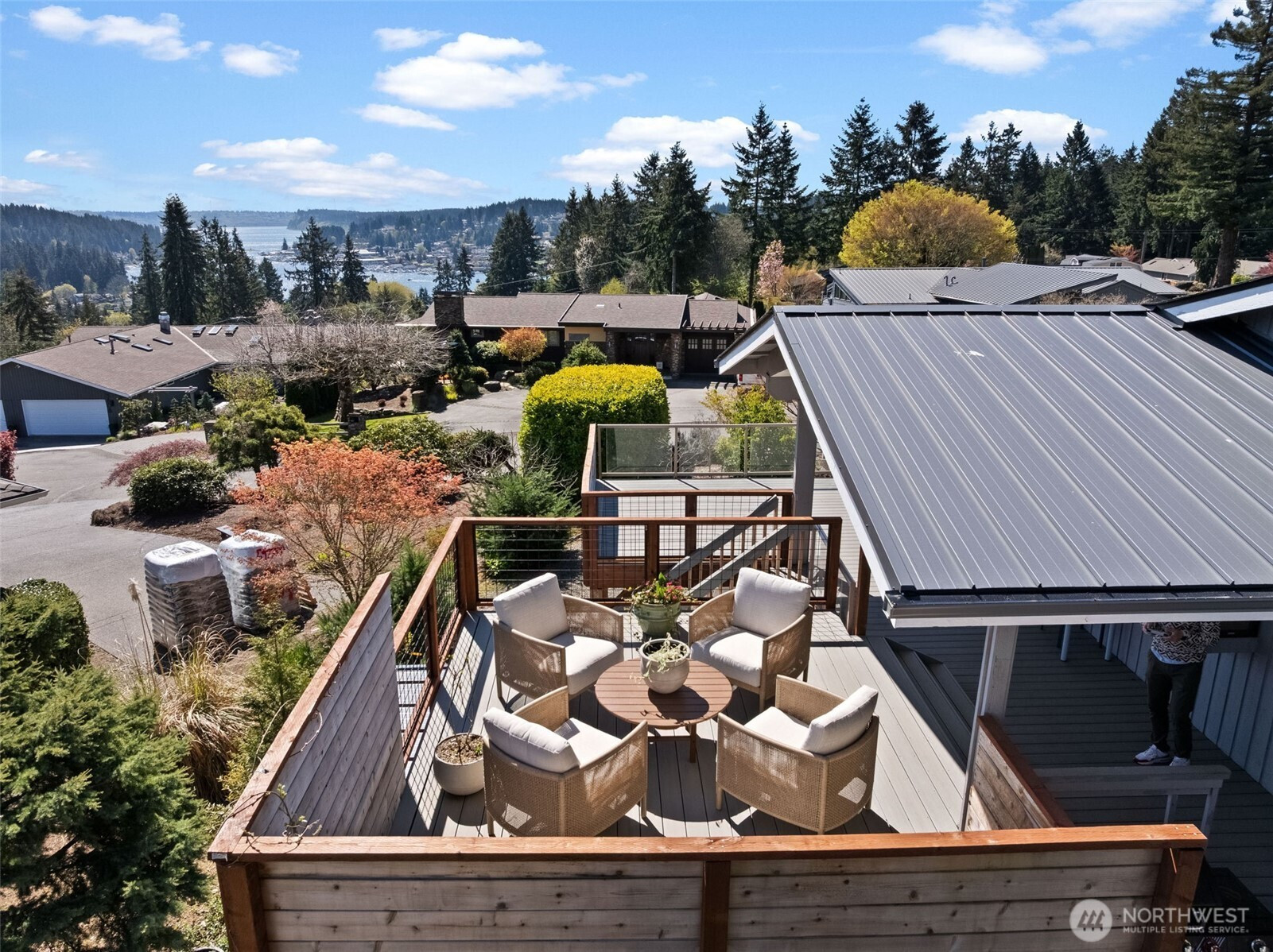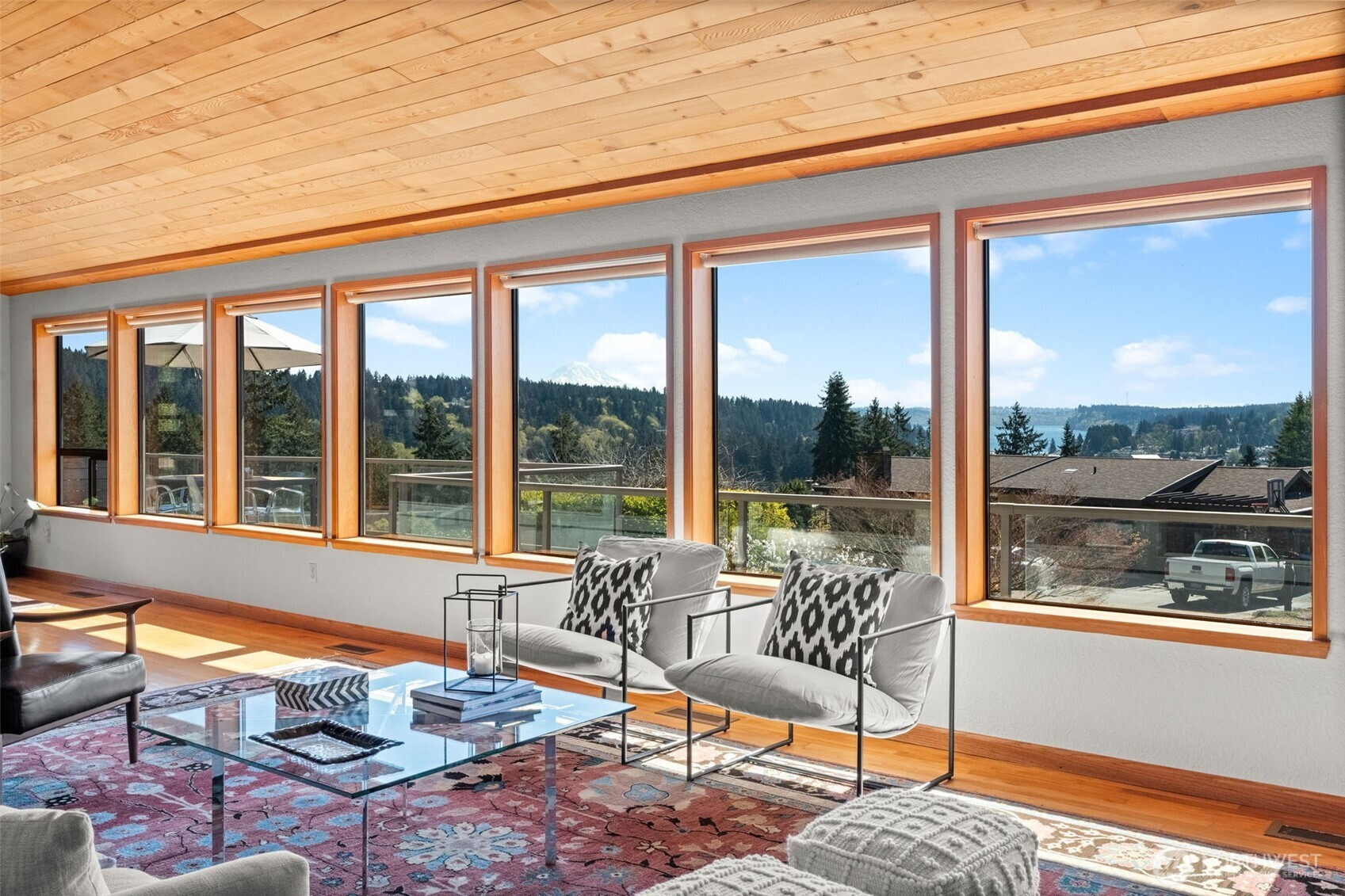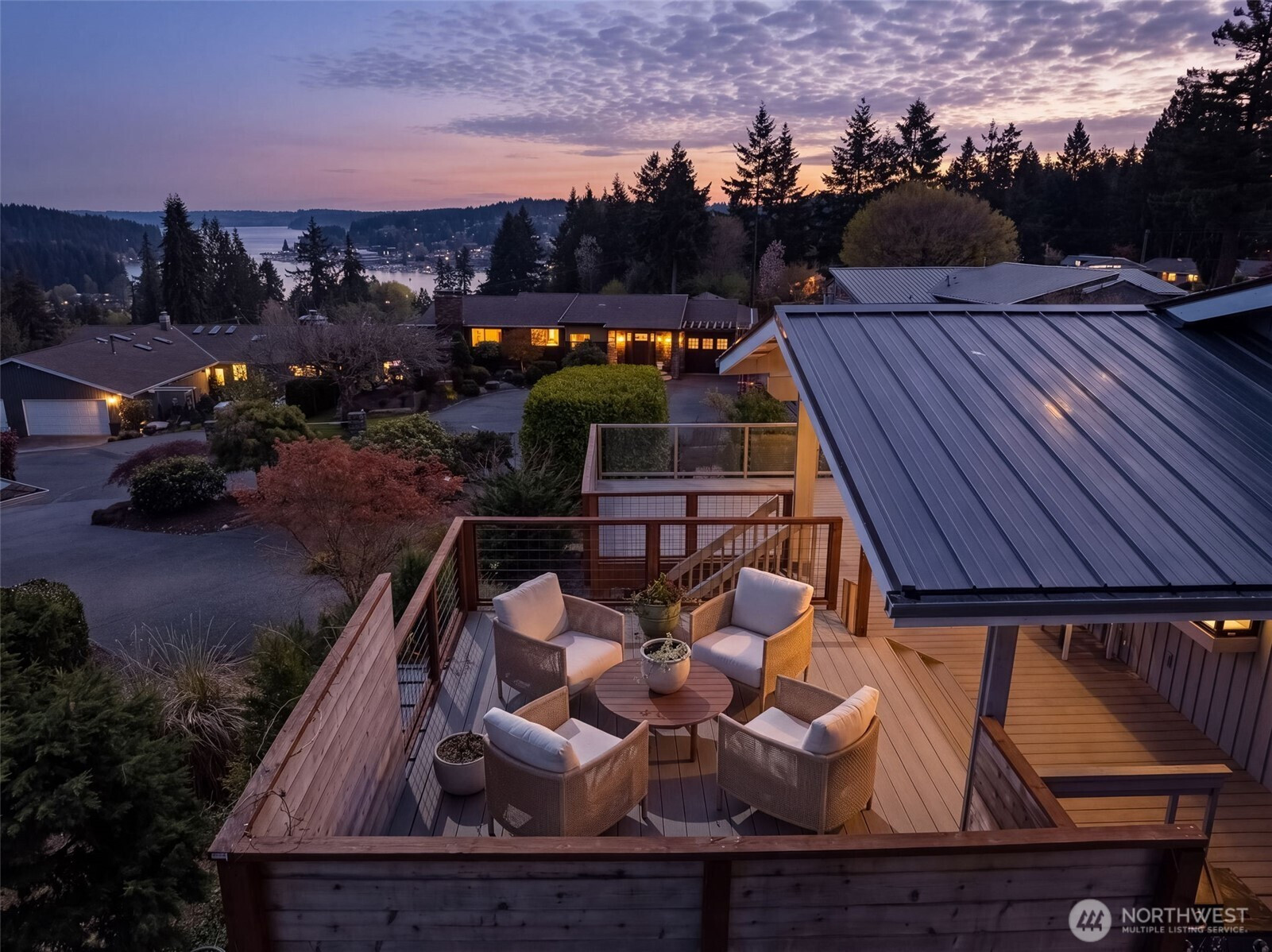 Don't let the photos fool you, the views have to be seen in person. Positioned in the heart of Gig Harbor's coveted view basin, this PNW contemporary delivers a front-row seat from Mt. Rainier to the living harbor, sunrises, sailboats, and mountain silhouettes, all from home. Live "in town" without the downtown congestion. Walk to Morso, Finholm's, and Devoted Kiss and more. Local public transit nearby. The location is irreplaceable and the gardens and established landscaping is the cherry on top. Designed for main level living, primary suite, main living, office, kitchen, laundry and dining all on one floor. Downstairs, a fully finished daylight basement with full bath & sauna + washer/dryer and separate entrance creates natural separation, ideal for guests, multigenerational living, or a short-term rental opportunity (permits required). The home has been extensively reimagined with over $300K in documented improvements: fresh roof (2026), Hardie board siding, remodeled baths and bedrooms, renovated greenhouse, rebuilt Timbertek decks, major landscaping and irrigation, and a laundry/pantry addition. But wait there's more, incredible garage space + parking for entertaining, you won't find a better lot this year! Lives like new construction in the heart of the harbor. City sewer | Public water | 2,642 SF | 3 bed | 2.5 bath (.75 in primary, 1/2 upstairs, .75 downstairs) | Vaulted ceilings | Hardwood floors | RV parking | Shop | Corner cul-de-sac lot | No HOA
