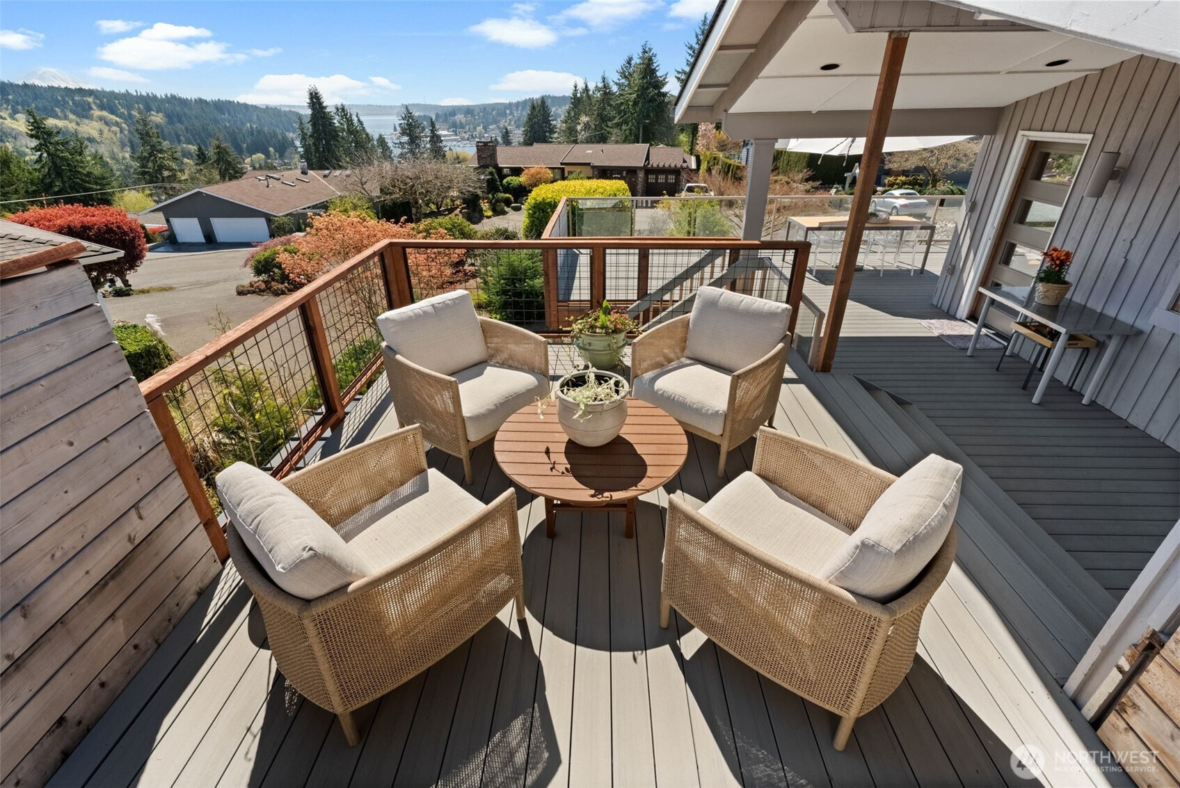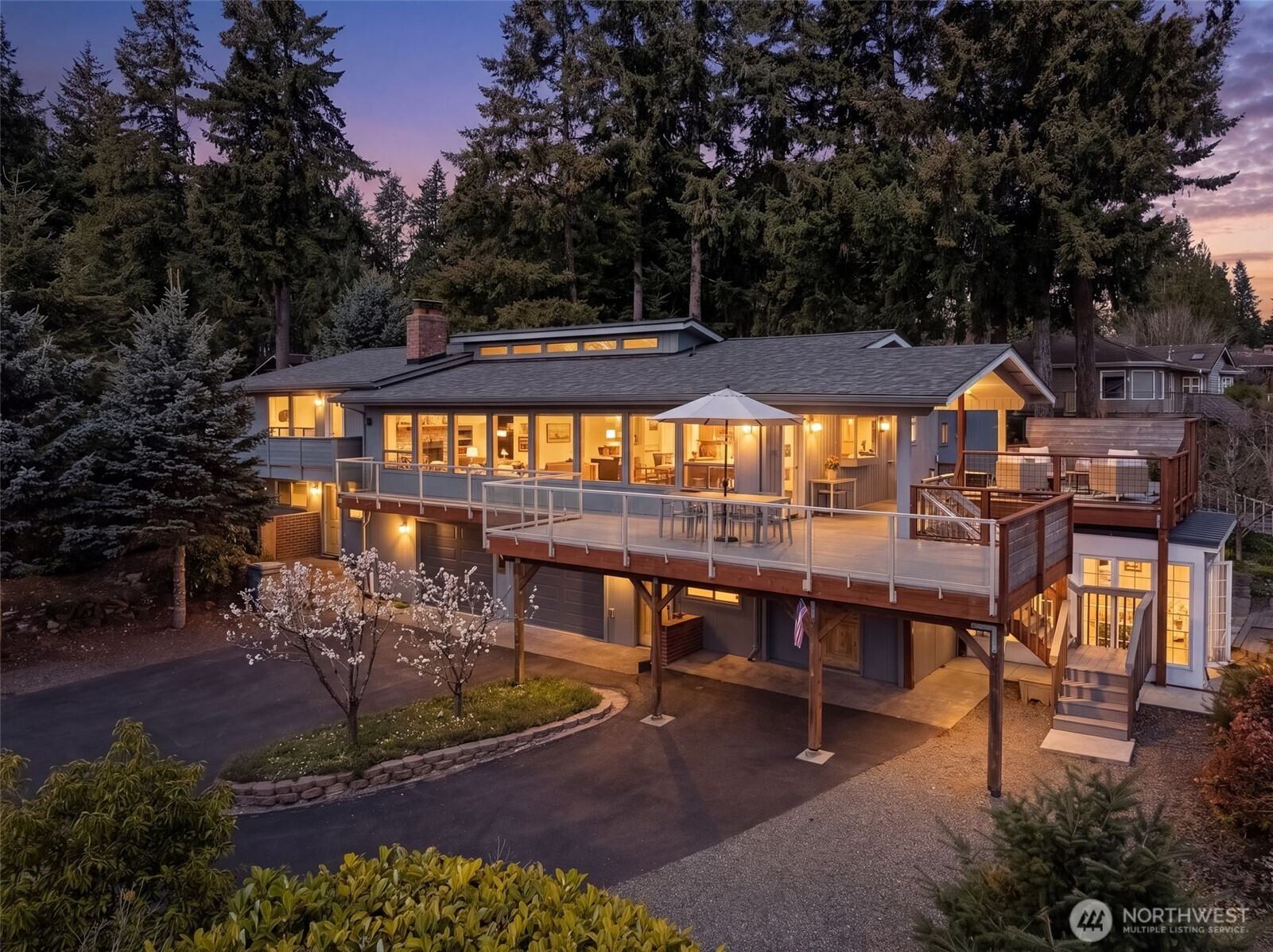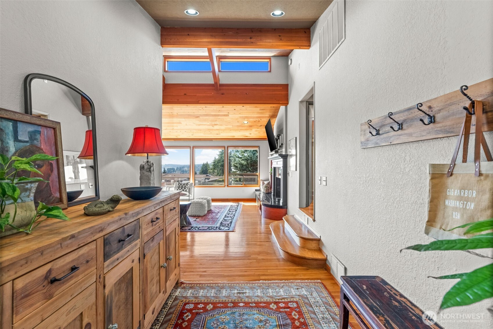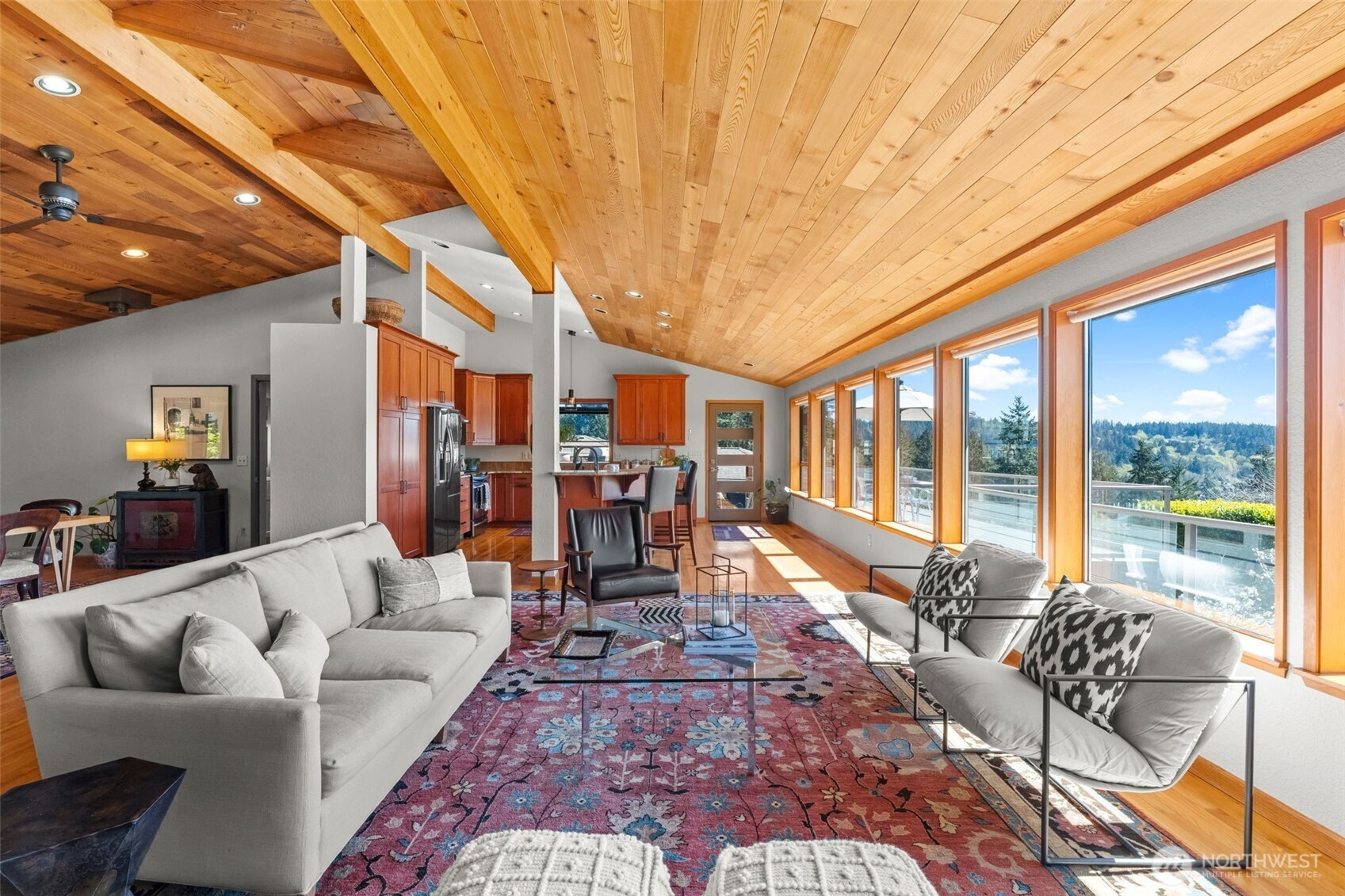 Don't let the photos fool you, the views have to be seen in person. Positioned in the heart of Gig Harbor's coveted view basin, this PNW contemporary delivers a front-row seat from Mt. Rainier to the living harbor, sunrises, sailboats, and mountain silhouettes, all from home. Live "in town" without the downtown congestion. Walk to Morso, Finholm's, and Devoted Kiss and more. Local public transit nearby. The location is irreplaceable and the gardens and established landscaping is the cherry on top. Designed for main level living, primary suite, main living, office, kitchen, laundry and dining all on one floor. Downstairs, a fully finished daylight basement with full bath & sauna + washer/dryer and separate entrance creates natural separation, ideal for guests, multigenerational living, or a short-term rental opportunity (permits required). The home has been extensively reimagined with over $300K in documented improvements: fresh roof (2026), Hardie board siding, remodeled baths and bedrooms, renovated greenhouse, rebuilt Timbertek decks, major landscaping and irrigation, and a laundry/pantry addition. But wait there's more, incredible garage space + parking for entertaining, you won't find a better lot this year! Lives like new construction in the heart of the harbor. City sewer | Public water | 2,642 SF | 3 bed | 2.5 bath (.75 in primary, 1/2 upstairs, .75 downstairs) | Vaulted ceilings | Hardwood floors | RV parking | Shop | Corner cul-de-sac lot | No HOA