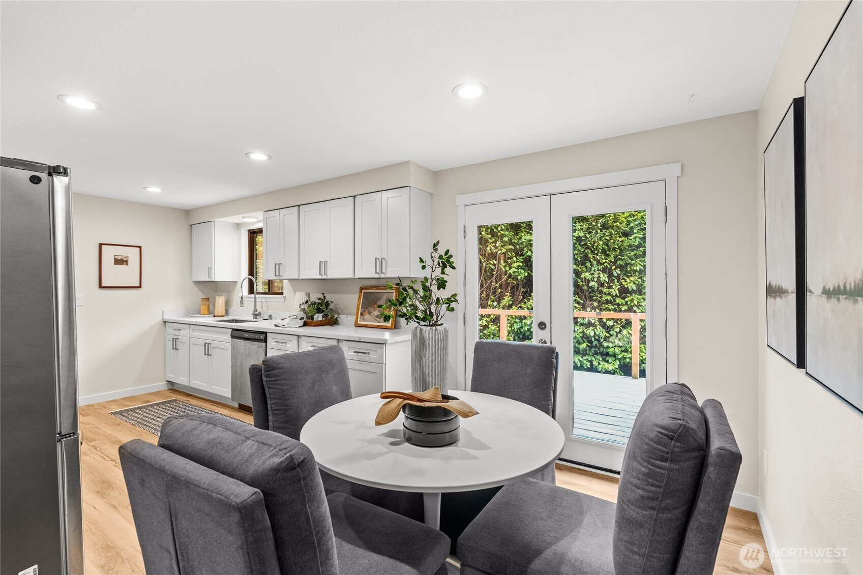 Experience the quintessential Gig Harbor lifestyle in this beautifully refreshed single-level rambler. Perfectly positioned on a beautiful .41-acre lot, this home balances modern interior finishes with the outdoor space you’ve been dreaming of. With brand-new floors that flow seamlessly throughout the main living spaces and a crisp palette of new interior and exterior paint, this home is refreshed and ready for your personal touch. The heart of the home is the stunningly updated kitchen, featuring brand-new cabinetry and countertops, with convenient access to the backyard deck for effortless indoor-outdoor entertaining. This functional layout offers three spacious bedrooms and 1.75 baths, ensuring comfort and accessibility on one level. Outdoor enthusiasts will appreciate the rare RV or oversized vehicle parking in addition to the attached garage, providing ample space for boats and gear. Take delight in the Beach trail shared with the community across the street, located on 126th Street Ct NW. Perfectly positioned in a prime Gig Harbor location, just minutes from Hwy 16, and the shops of Downtown, with the Purdy Spit and Henderson Bay boat launch nearby for easy access to the water.