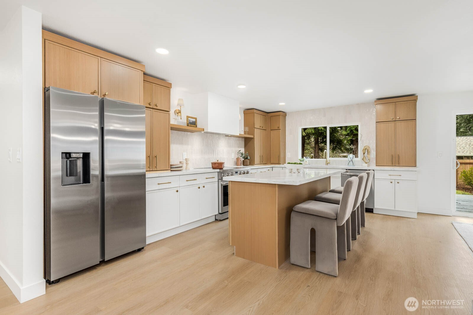 Located in the desirable Oak Brook Golf Course community, this single-family residence offers 3,221 sq ft of thoughtfully updated living space. The home features 4 bedrooms and 3 bathrooms, including two private primary suites, providing flexible space for guest accommodations.The functional floor plan includes a formal lv rm, separate family room, and formal dining room, creating defined yet open spaces for both everyday living and entertaining.The remodeled kitchen showcases white oak slim shaker cabinetry, designer two-tone finishes, and a chef’s 36-inch range, blending modern design with practical functionality. White oak waterproof flooring runs throughout the home, adding warmth and durability. All three bathrooms have been fully renovated with contemporary finishes for a clean, cohesive aesthetic.Situated within the Oak Brook Golf Course neighborhood, this move-in ready property offers upgraded interiors, generous square footage, and a well-established community setting.