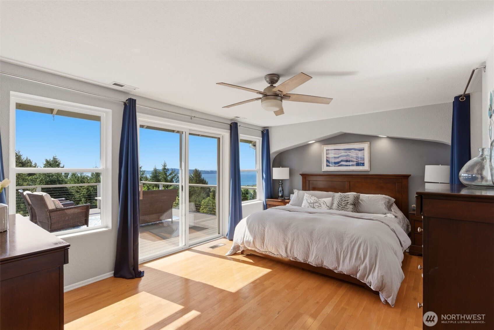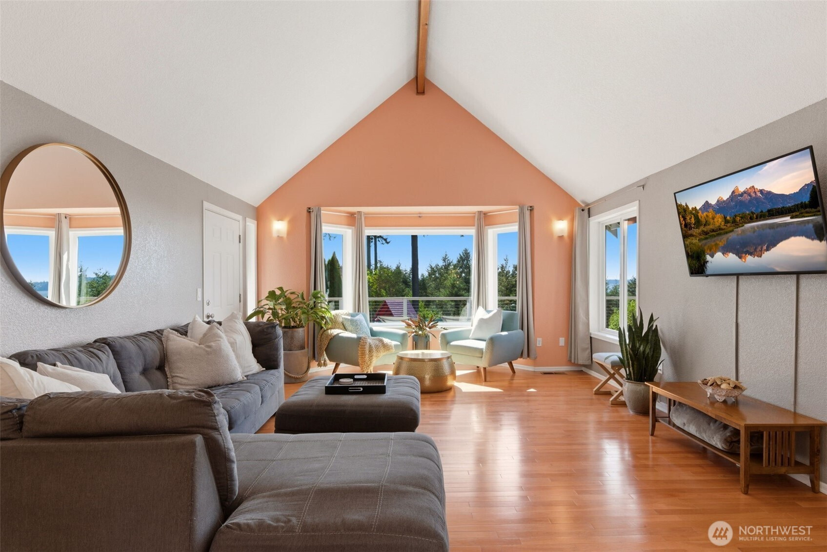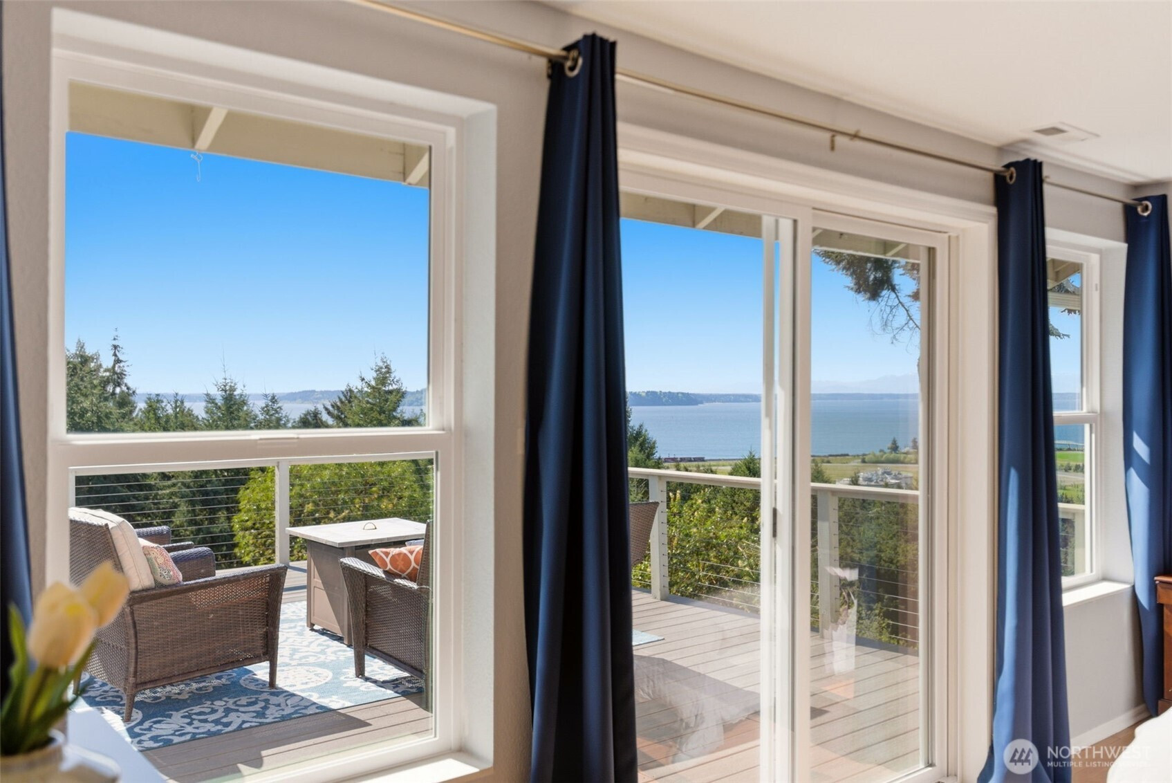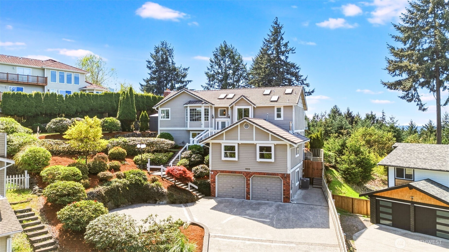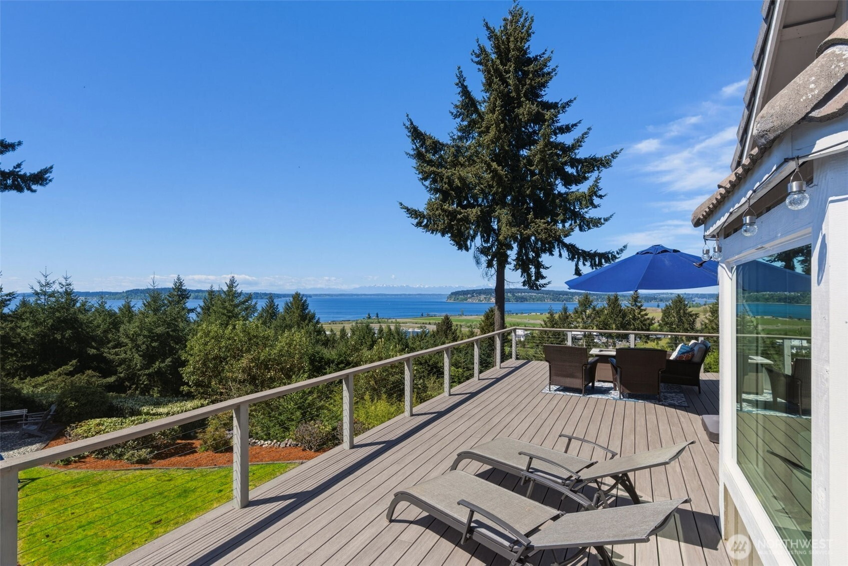 Elevated Living. Unmatched Views. Designed for the Way You Live Now. Perched to capture sweeping 180° views of the Olympic Mountains, Puget Sound, Chambers Bay, and a stunning lineup of islands—this home delivers the kind of everyday backdrop that never gets old. Sunset skies, Steilacoom fireworks, and ever-changing water vistas become part of your daily rhythm. Seamlessly blending indoor-outdoor living, the newly built ~900 SF deck expands your living space in all the right ways—morning coffee, sunset dinners, and effortless entertaining with a front-row seat to the view. Inside, light pours through all-new windows, sliders, and 7 skylights. Two bedrooms up, 2 bedrooms down, 2 bonus rooms, an office and wine cellar. Main-level primary suite w/deck access, a fully equipped media room with wet bar, and a second generous bonus room ideal for work, play, or workouts. Three new gas fireplaces create warmth and ambiance throughout, while a new furnace and heat pump deliver year-round comfort. The kitchen is well appointed w/stainless appliances, gas stove, granite countertops and breakfast bar. Primary suite has stunning views, slider to deck, ensuite updated spa bathroom w/WI closet. Every bedroom features walk-in closets, and storage is abundant throughout—including an oversized garage built. Set on a beautifully maintained .34-acre lot with mature landscaping and rock walls. Situated in highly rated Steilacoom School District, close to grocery, beach, trails, dog park and more!