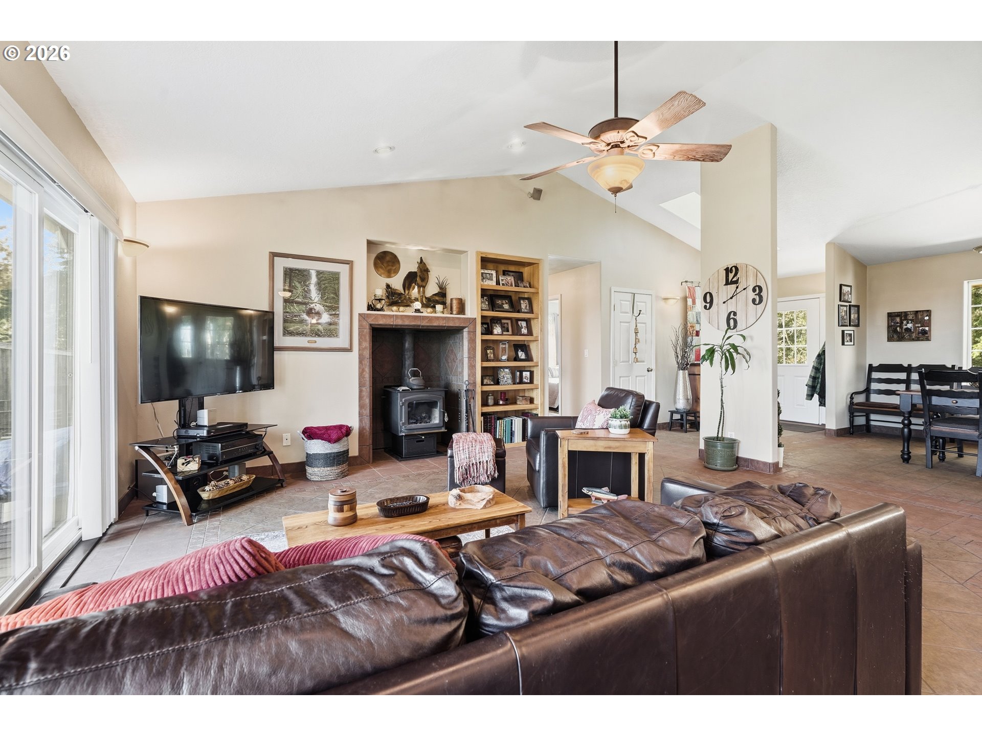 CeilingFan, Skylight, TileFloor, VaultedCeiling, WalltoWallCarpet
