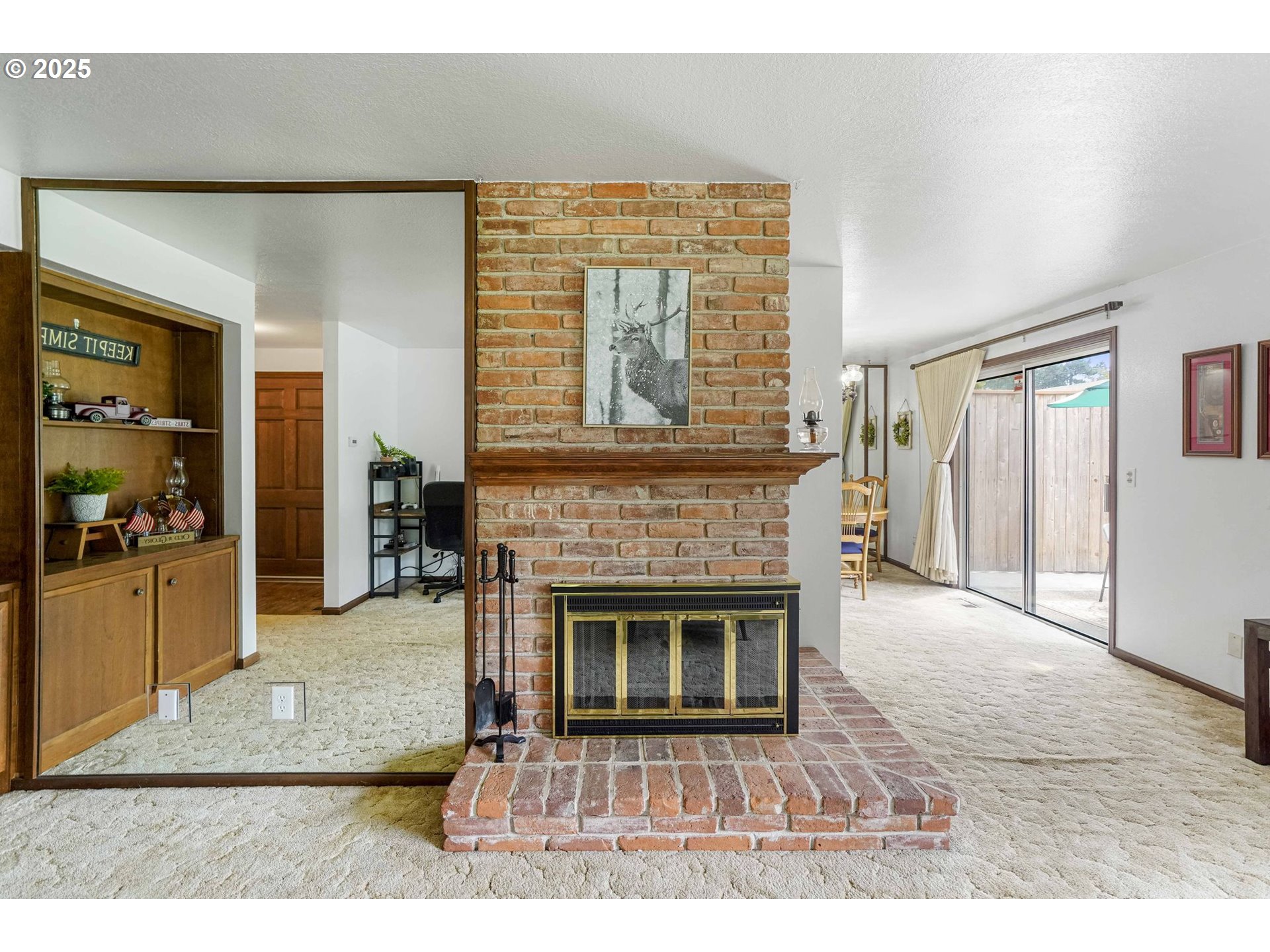 Tucked into the peaceful Glencreek Wood neighborhood, this charming single-level end-unit condo combines comfort, space, & convenience. Front tinted windows provide bright natural light while adding privacy, highlighted by a wood-burning brick fireplace with convenient gas start, inviting soaking tub with separate shower & a private patio create a perfect blend of relaxation & functionality. Includes a deep 2-car garage with built-in storage. HOA covers water, sewer, trash, and lawn care for easy living.