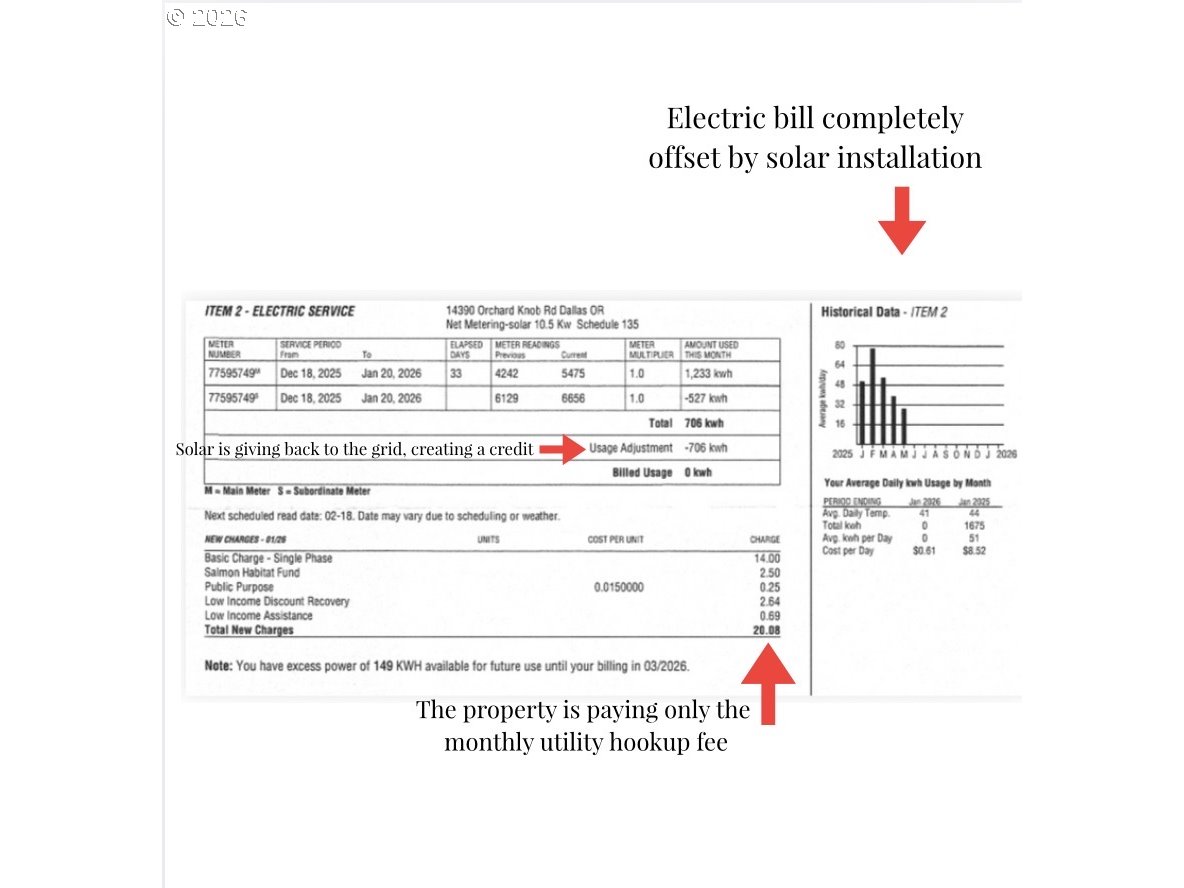 (503) 893-8874The best of all possible worlds--what does that look like? Consider this: a house facing south on a 5.08-acre parcel, with vast Contemporary-style windows looking out to an expansive meadow starry and fragrant with wildflowers, welcoming to deer, rabbits, and an astonishing variety of birds, from the bald eagle to the burrowing owl. From the wraparound deck, you can see the mountains; sunrise and sunset paint the sky. The house is a delightful blend of dramatic and homey, with a huge and stunning vaulted living room that leads to a cozy dining room and well-designed kitchen with a ton of storage. The main level has two sizeable bedrooms in addition to the wonderful primary suite, with its custom built-in shelves and attached bath. The lower level gives you studio or office space, a media room, another bedroom, and direct access to a patio shaded by the deck, a convenient hangout on sunny days. Speaking of sunny days, you'll be so grateful for the state of the art solar panels, installed on the metal roof of the shop. The system is fully owned and works so well that it gives back to the grid--if you're concerned about rising electricity costs, you'll be buying inflation-proof power. Along with the attached double garage, there is a separate drive-through shop, 1471 SF waiting for your projects...it has 15- and 20-amp circuits, and unlike most shops, it also has its own heat pump and is fully insulated, so you can work in complete comfort. All this, plus a magical location; it feels like the countryside, but it's so convenient to Dallas that you can still order DoorDash; and if you feel like cooking, you're in the heart of farm-to-table bounty. Benedetto Winery is down the road, and Eola Hills/Amity 20 min away. You're 3 minutes from the legendary Baskett Slough National Wildlife Refuge. You're less than an hour from the ocean and a little more than an hour to Portland or Eugene. Still looking for the best of all possible worlds? It's right here.