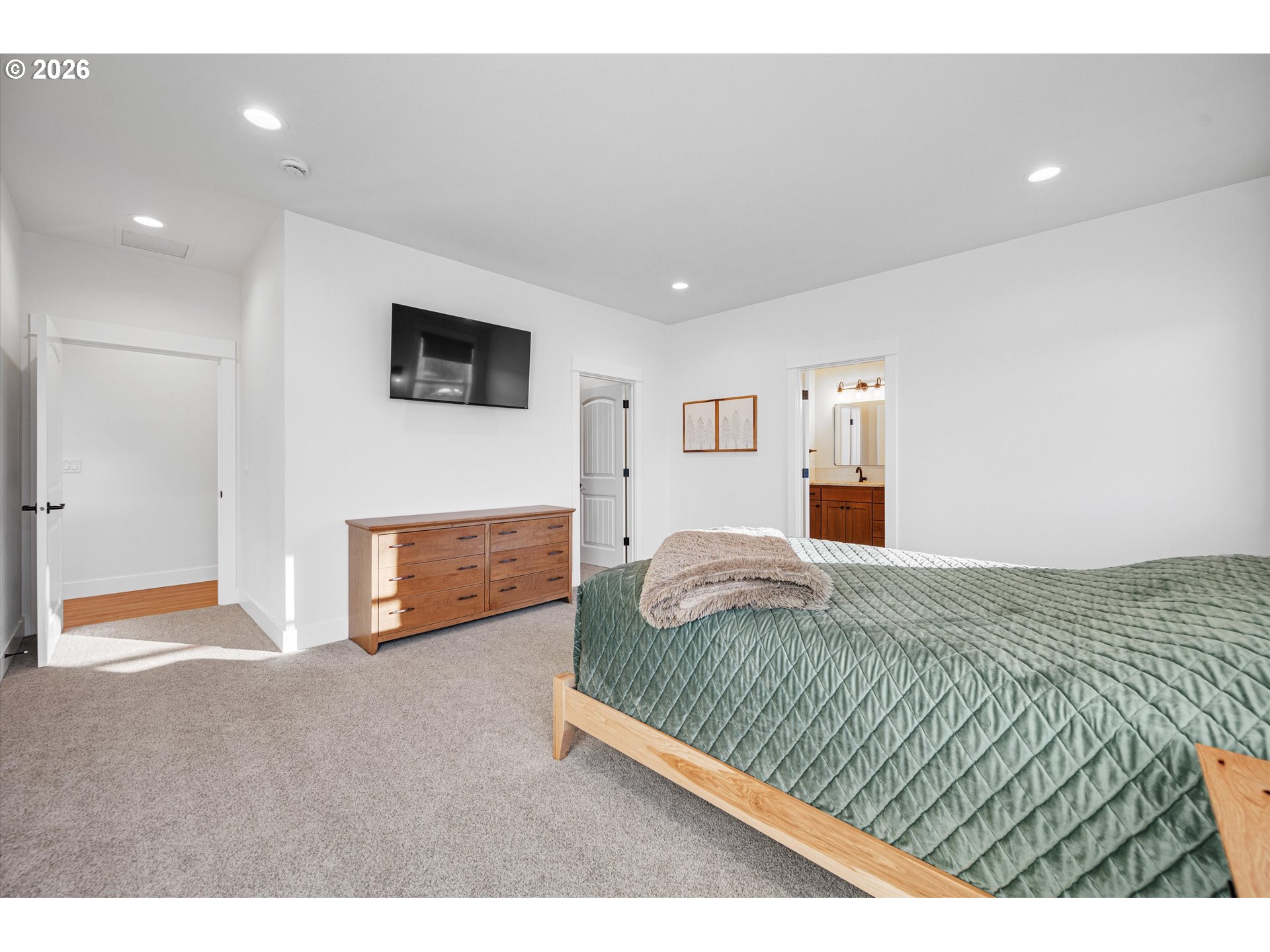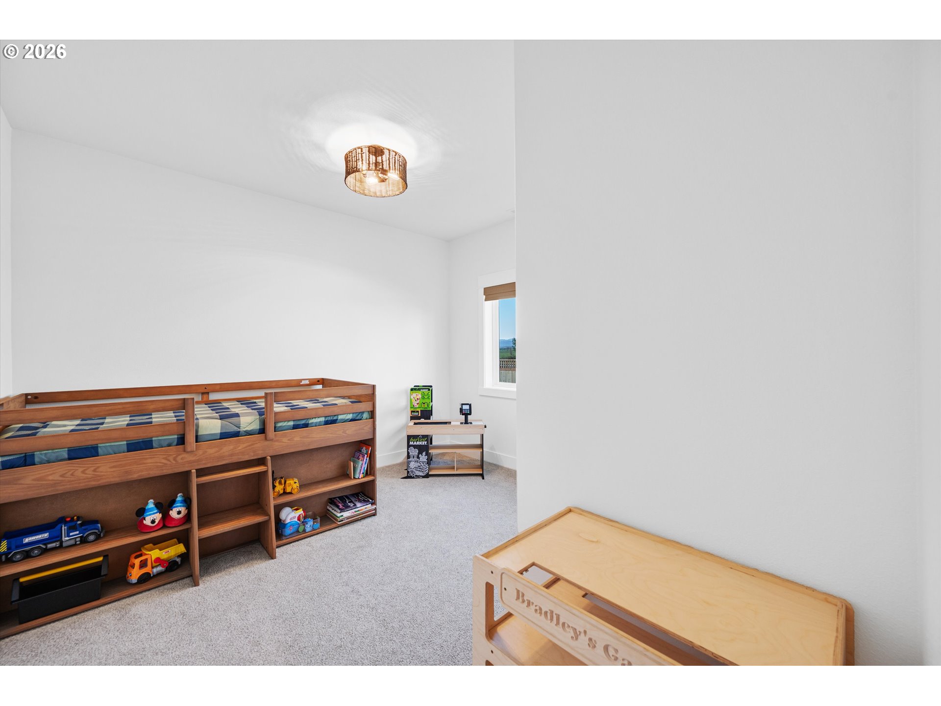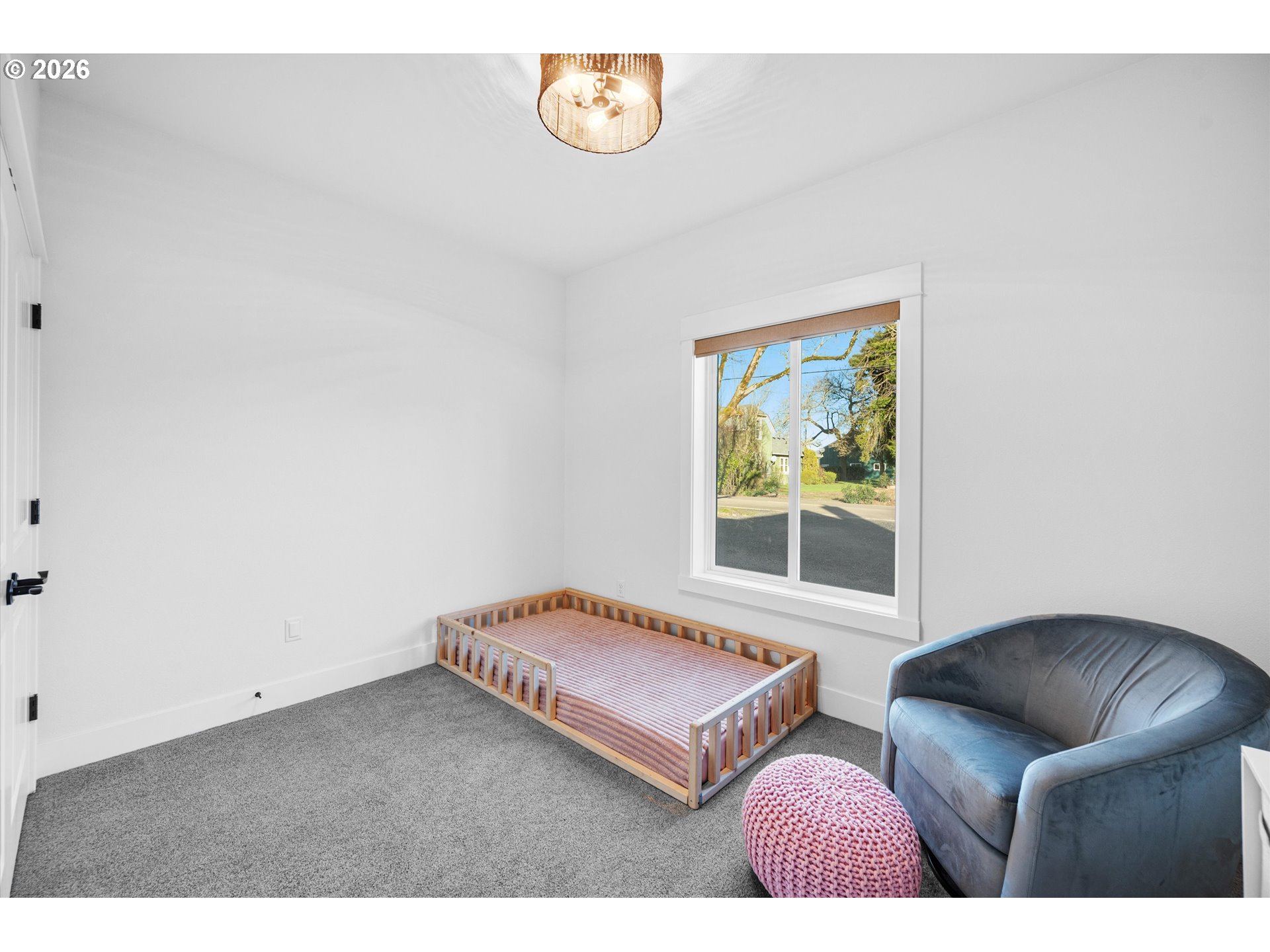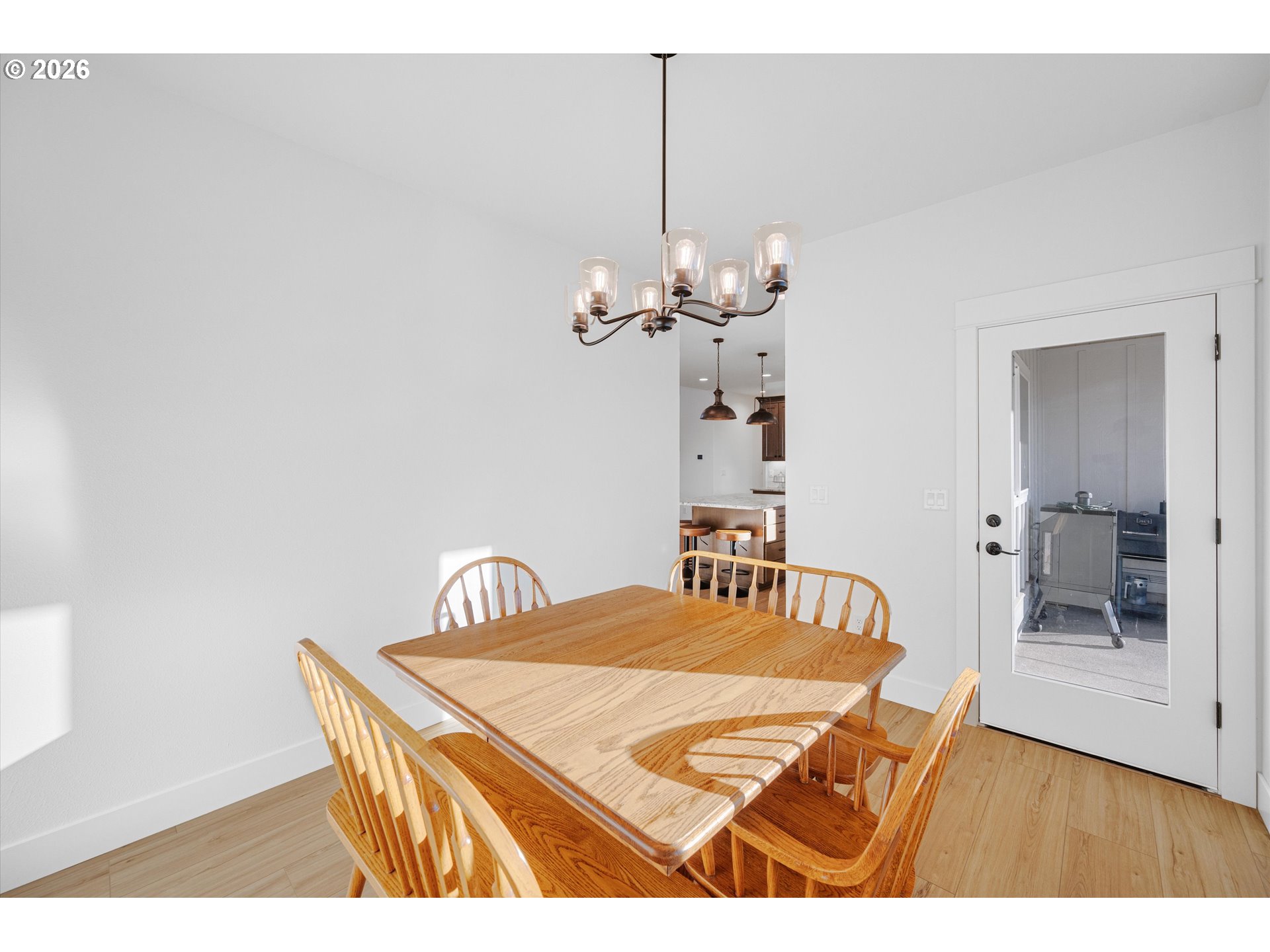 Nestled on a peaceful half-acre with beautiful valley views, this nearly new, single-level home blends easy country living with modern comfort and style. Vaulted ceilings and a light-filled great room create a welcoming, open feel, while tasteful, on-trend finishes carry throughout the home. The heart of the home is the stunning kitchen, featuring granite countertops, a generous island for gathering, and a convenient pantry—perfect for both everyday living and entertaining.The spacious primary suite offers a quiet retreat with a well-sized walk-in closet and a beautifully finished bath, complete with dual sinks and a large tiled walk-in shower. Two additional bedrooms are thoughtfully situated on the opposite side of the home, providing privacy and flexibility for guests, office space, or hobbies.Step outside and enjoy the calm of country surroundings without the maintenance of acreage. The large patio space provides an abundance of room for entertaining and a brand-new pole barn offers ideal space for RV storage, a workshop, or creative pursuits. The circular driveway provides for easy access and additional parking. With room to garden, grow, and spread out, this property offers the charm of rural living just minutes to Mac and is located in the Amity School District. Immaculately maintained and well crafted by a renowned builder—this is a special opportunity for comfortable, well-planned country living with modern finishes.