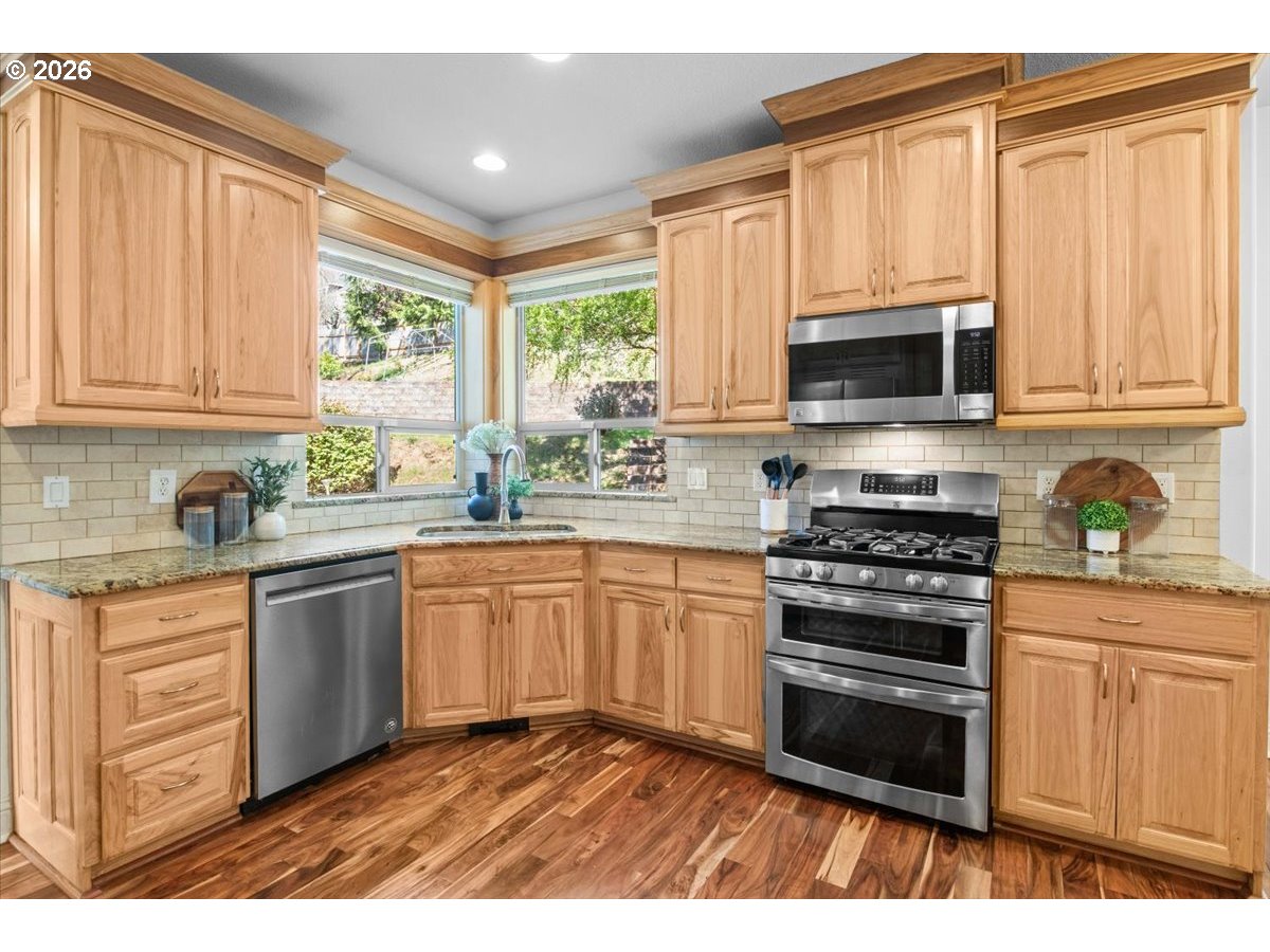 Dishwasher, Disposal, DoubleOven, FreeStandingGasRange, Granite, StainlessSteelAppliance