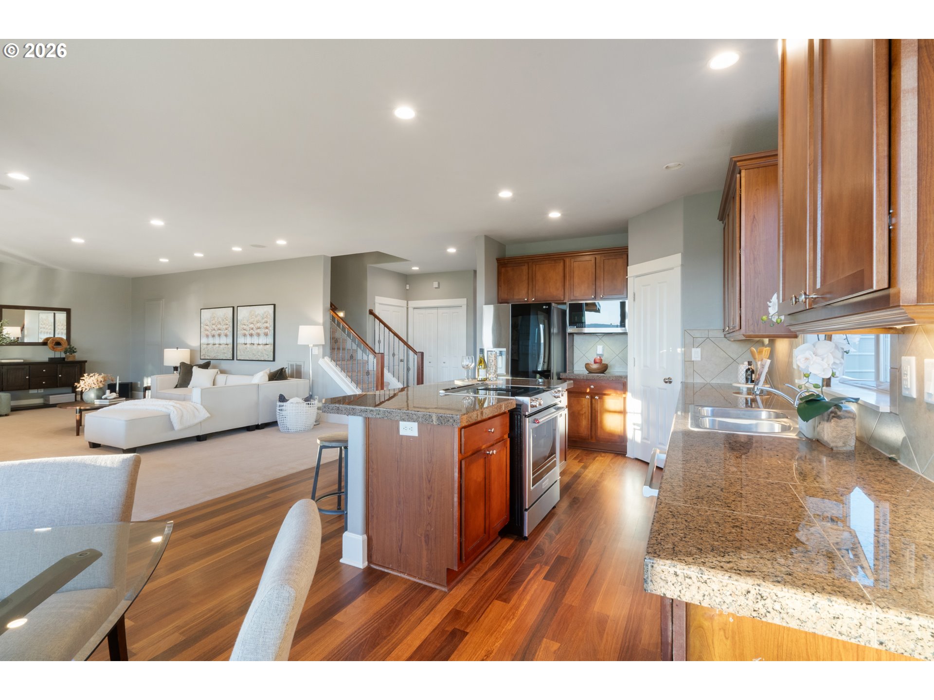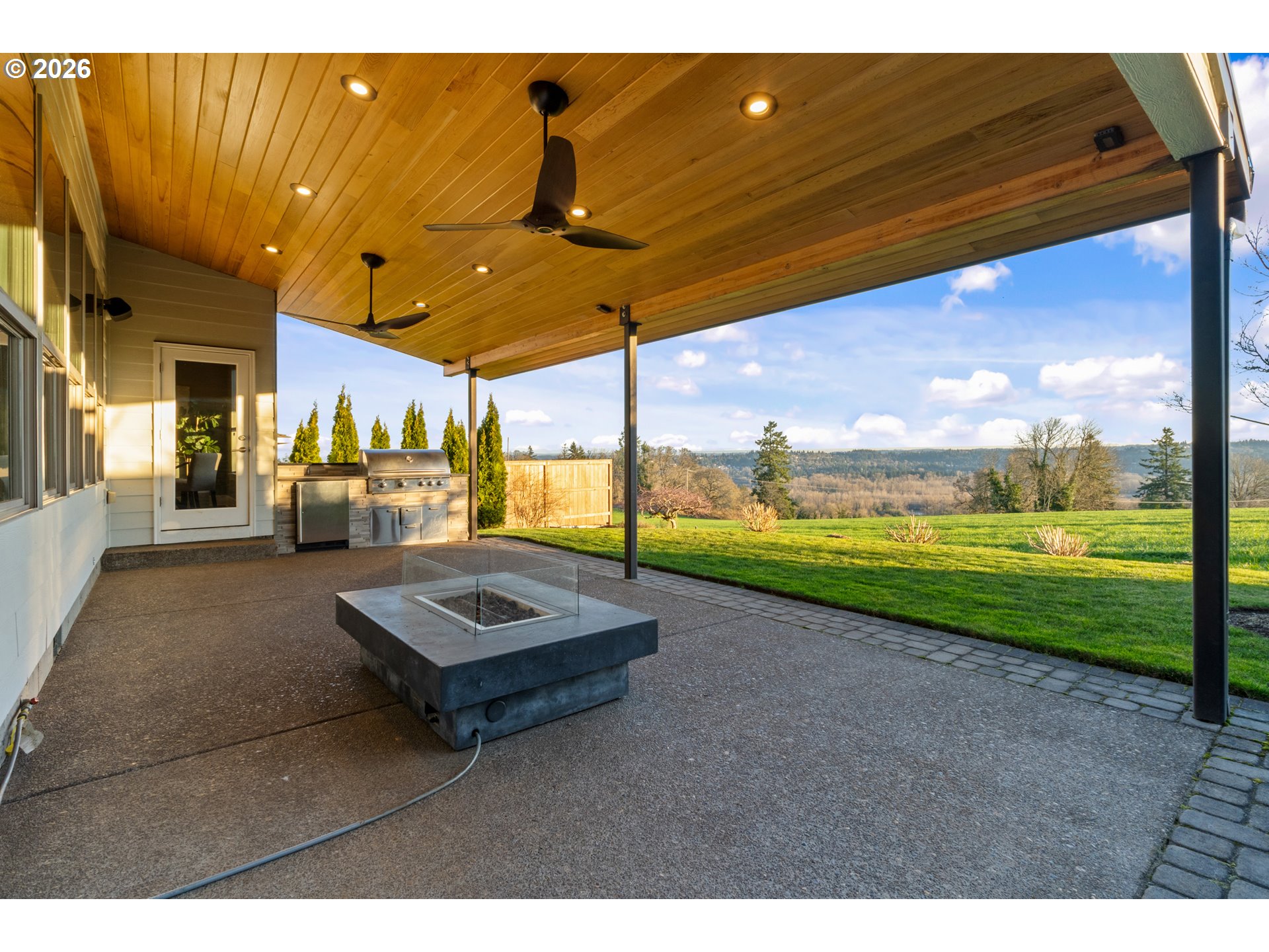 (503) 893-8874Expansive views grace a spacious, upscale home w/ warm, elegant granite & wood finishes. Excellent open plan & flow on main level. Kitchen boasts new fridge & range, wood cabinets, & granite tile. Separate office or den w/ window bench seat, built-ins, & hardwood floors. Upstairs has 4 beds, laundry, & large bonus room & flex space. Primary suite w/ gas fireplace, soaking tub, & mountain views. Outdoors find serene fields & tree-covered hills from the covered patio w/ SS grill, gas firepit, & ceiling fans.