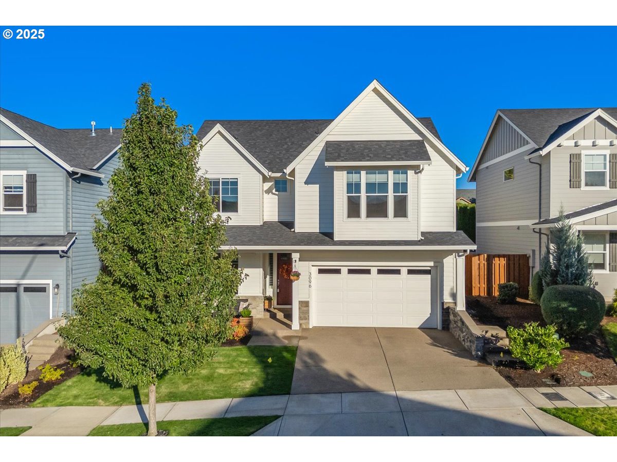 (503) 893-8874Better than new construction in this immaculately maintained and updated model home! Gorgeous laminate flooring throughout main floor, high ceilings. Open kitchen with quartz counters, tile backsplash, stainless gas appliances, pantry, island and eating bar. Open living room with fireplace. All new windows! Main floor office/den/5th bedroom. Primary suite with vaulted ceilings, double sinks, tile floor and shower. Huge 4th bedroom/bonus room with closet. Upstairs laundry room. Oversized garage with storage. Updated window treatments and fixtures. Beautiful yard with covered patio, extended paver patio, gas hookup for bbq, updated fence and arbor vitae for great privacy. Beautiful territorial view and close to restaurants, wineries, shopping, schools and more!
