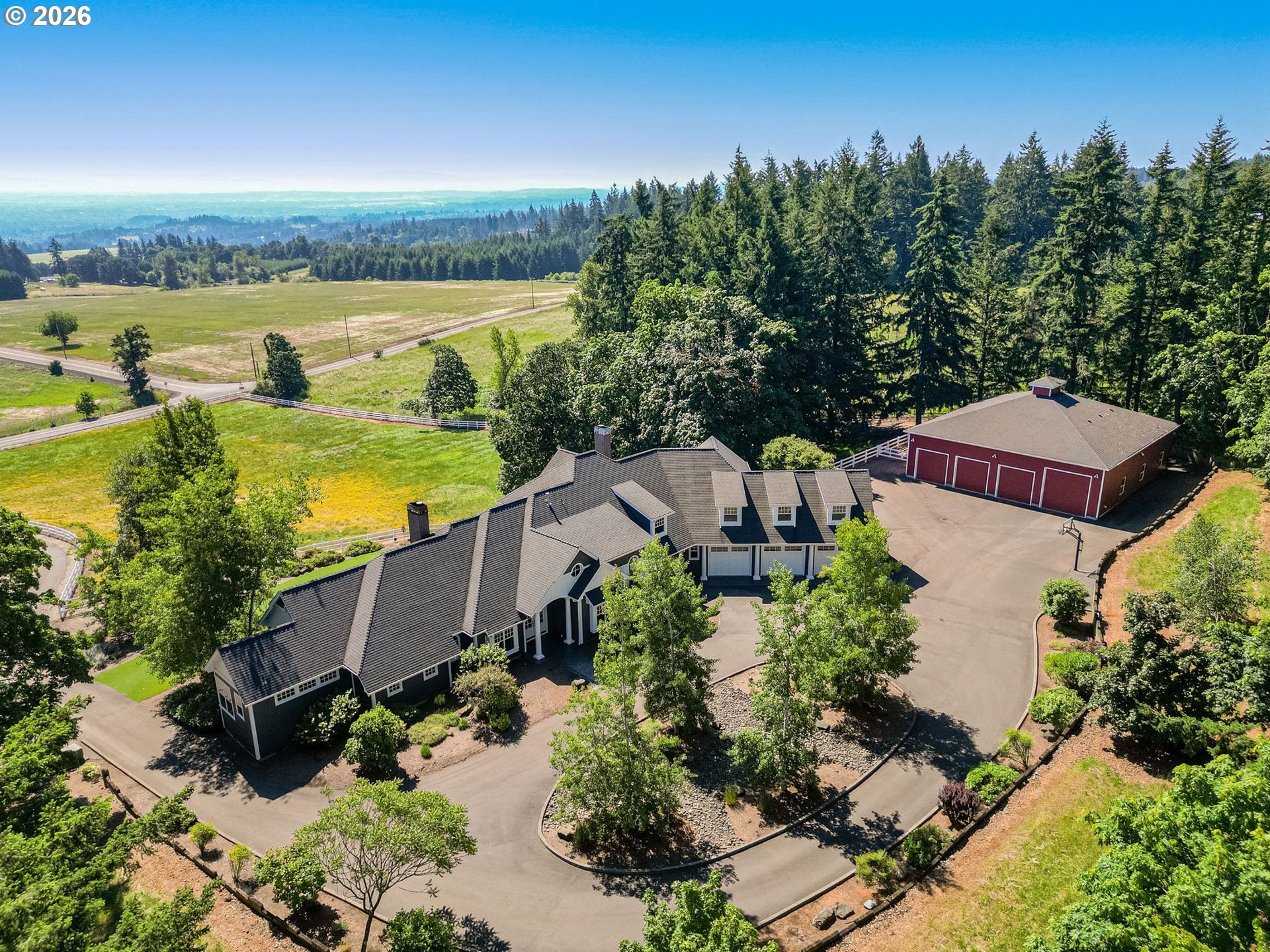 (503) 893-8874The ultimate GATED & MANICURED dream property! Your own private slice of heaven in the highly desirable hills of West Salem, CLOSE TO WINE COUNTRY! One of a kind exquisite 6 bedroom, 6 bathroom, custom-built estate by Comfort Homes LLC. This home is conveniently located & is just minutes from downtown Salem. Boasting 5,332 square feet of luxurious living space and set on 4.79 acres, this home offers the perfect balance of privacy, comfort, and breathtaking panoramic views of Mt. Jefferson and the city of Salem skyline. Inside, you’ll find an open-concept design featuring a gourmet kitchen with high-end appliances, elevated finishes throughout, a spacious family room, and a formal dining room ideal for entertaining. The main-level primary suite is a true retreat, complete with a large walk-in closet and a spa-like en suite with a walk-in shower and oversized two-person Jacuzzi tub. A second main-level bedroom includes its own en suite and kitchenette, offering an ideal setup for multigenerational living, guests, or a caretaker. Upstairs are four additional generously sized bedrooms and two full bathrooms, perfect for family or visitors. An intimate den with a cozy fireplace sits between the family room and the primary suite, offering a quiet spot to relax. Additional highlights include:* Mudroom and spacious laundry room* Attached OVERSIZED 3-car garage* Covered back porch with outdoor fireplace and built-in BBQ* Large Detached LARGE 4-bay shop w/ water, electric & sewer, including one oversized bay for RV or motorhome* Fully fenced pasture, ideal for animals *Dual zone hvac system *Full home plumbing resirc system * Full home instant generator system * Orchard w/ fruit trees * Full home sound system *turf yard low maintenance * Ample parking for guests. Perfect for NW Living & Entertaining! Don’t miss your chance to own a one-of-a-kind property w/ spectacular views & exceptional amenities in Salem’s most sought-after locations. Dual Living! Visit Virtual tour Link!