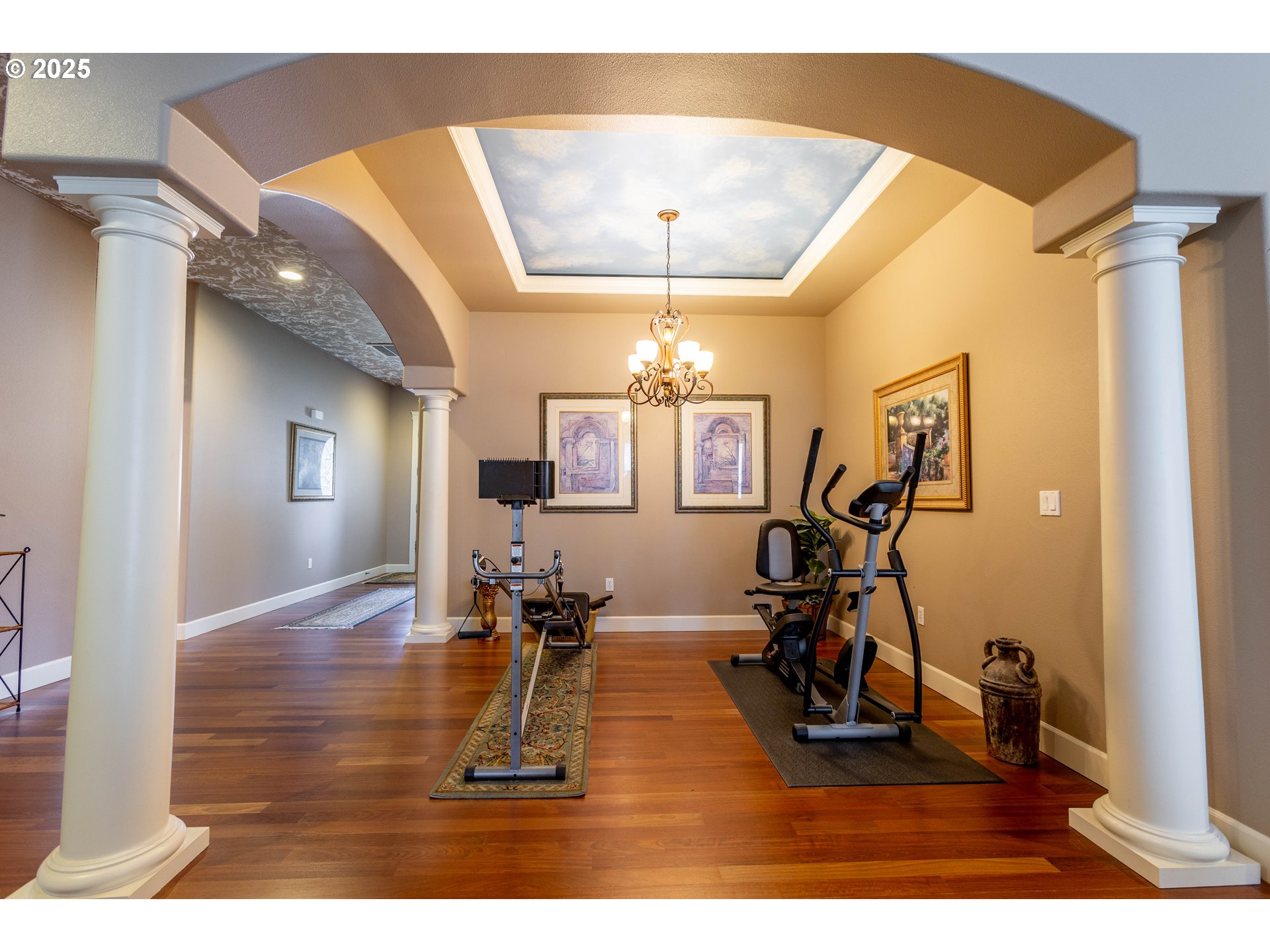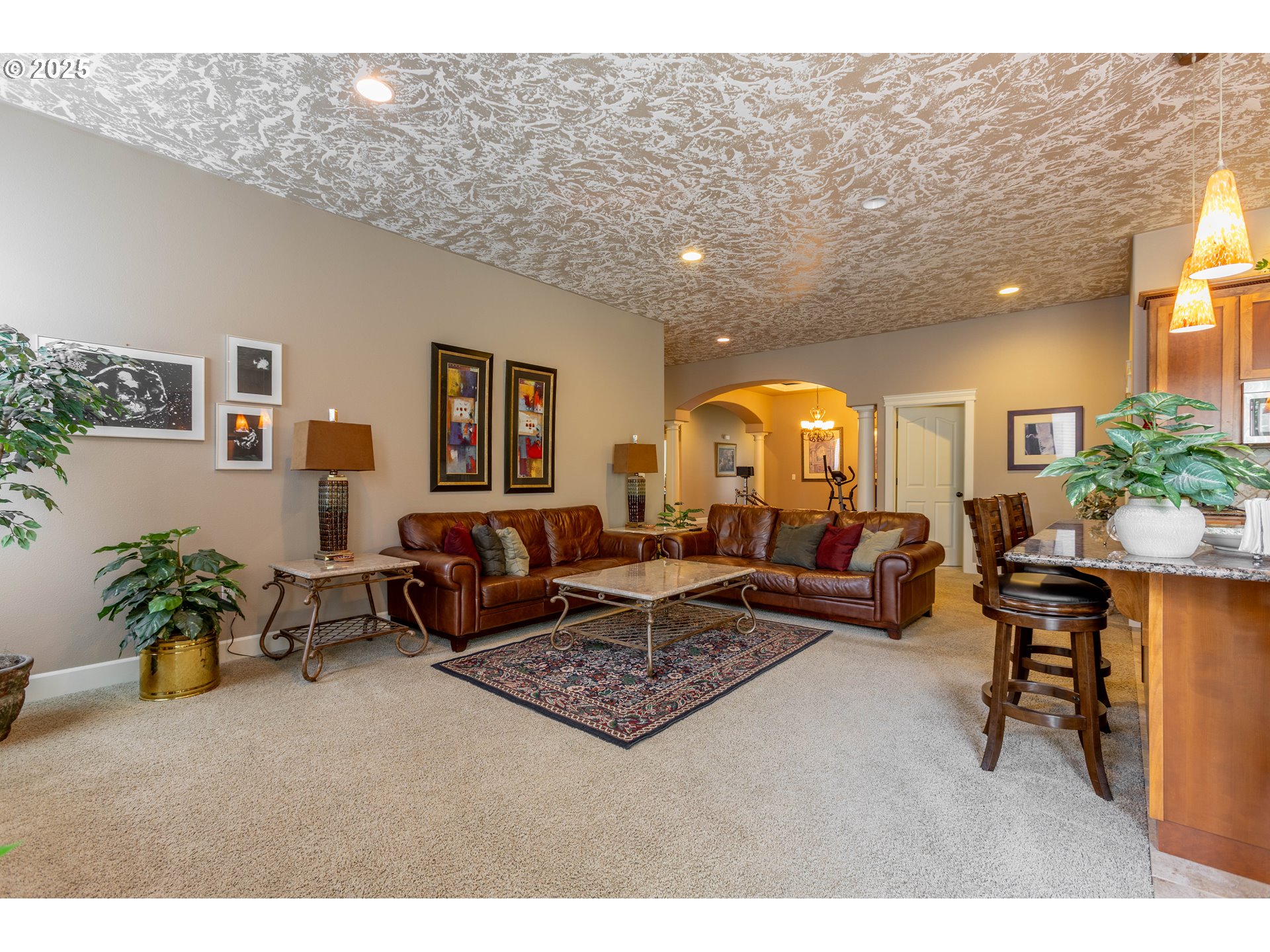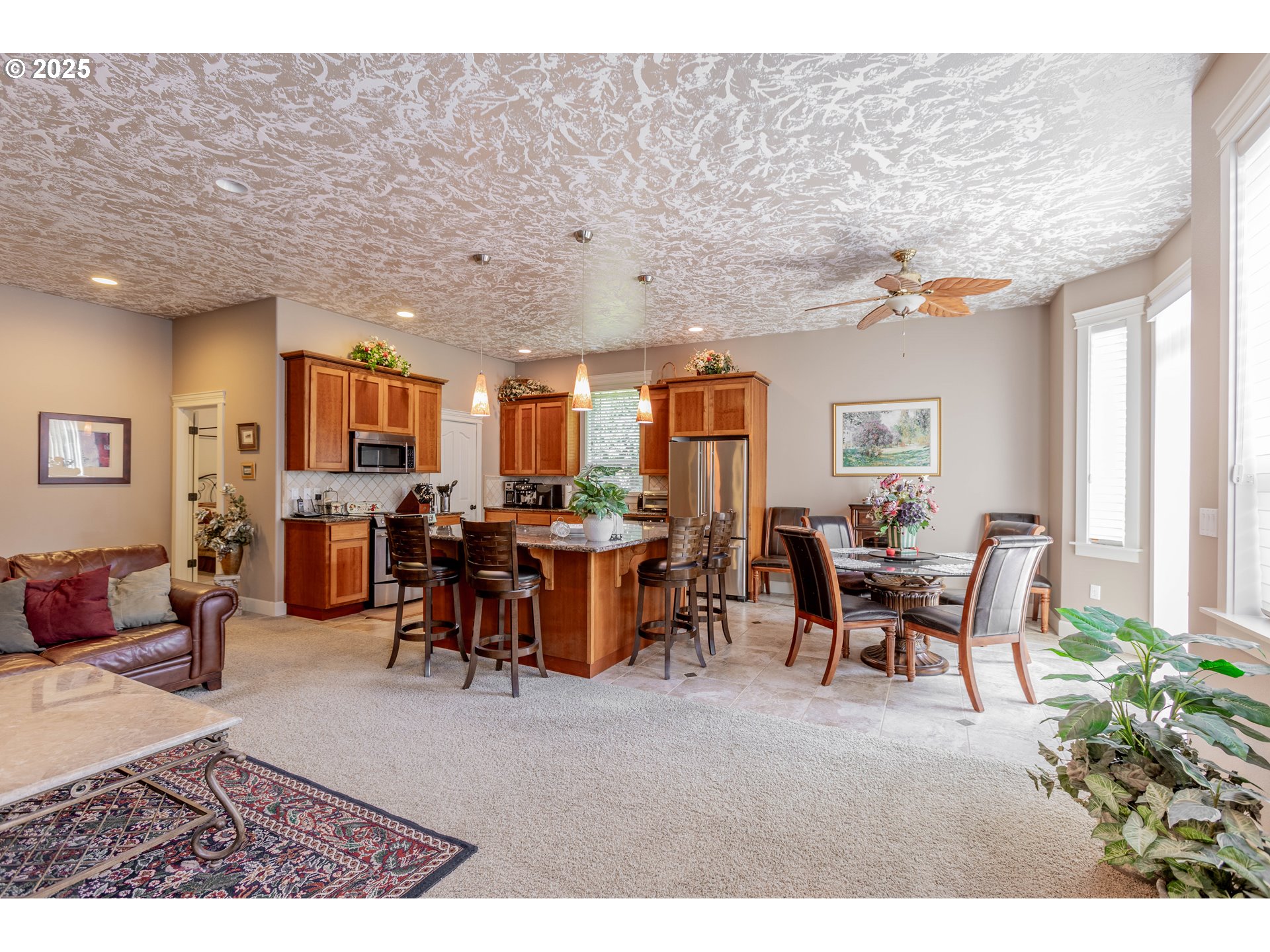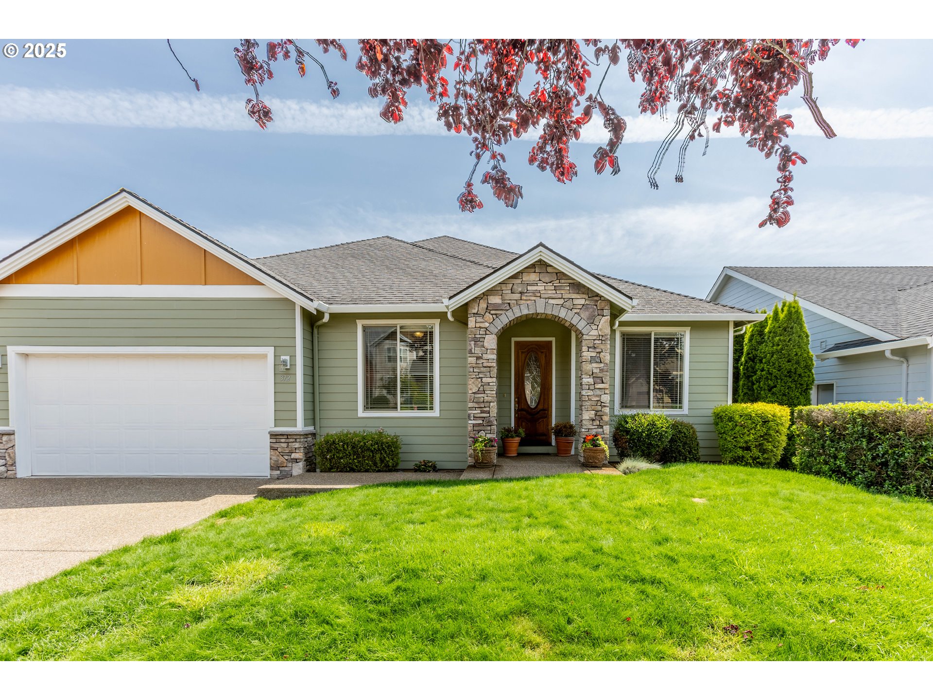 Rare one-level home in highly desired West Salem neighborhood! Features a spacious open floor plan with high ceilings & an elegant formal dining room. The kitchen showcases rich cherry cabinets with dark rope accents, slab granite countertops, a large island with bar seating & beautiful cherry wood floors. Dining area features stately archways, columns & a trayed ceiling. Double doors open to a front den/bedroom. Generous primary suite includes a gas fireplace, jetted tub & tiled shower. An 8' entry door, UGS & full landscaping. Furnishings included if Buyer so chooses.