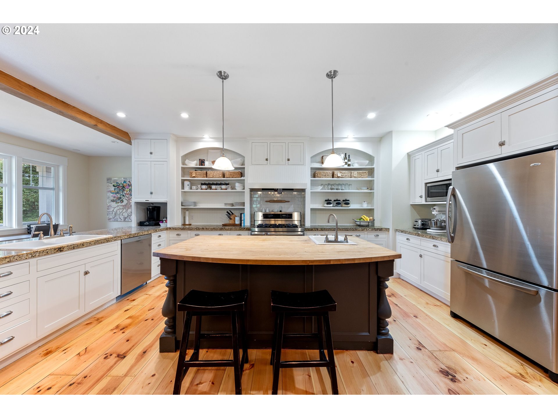 (503) 893-8874Stunning, custom-built home nestled among the trees for the privacy you desire. Welcome home to an open, flexible floor plan with room to entertain! Fall in love with unique touches like authentic wide-plank pine floors, beams milled from trees from your own property, and custom-fitted kitchen w/ granite countertops. This light-filled space offers lovely views of wildlife from its many windows. The unfinished basement has an add’l 2387 s.f. w/ potential for dual living when finished.