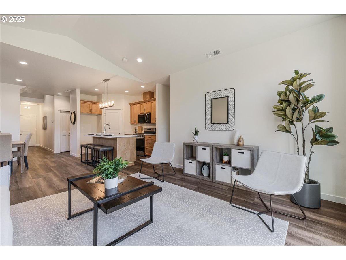 MOVE IN READY! Seller offering $$$ when you closing by 12/31/25!!Modern craftsman townhome with main-level primary suite, 3 beds/2.5 baths, and 2-car garage. Vaulted entry, 16x15 great room, 12x11 dining, island kitchen with shaker cabinets and quartz counters plus side by side refrigerator. Upstairs: 2 beds, full bath, loft with view to below. Oversized laundry off garage with front load W/D, window treatments throughout. Enjoy fenced and landscaped yard, territorial view, covered front porch, sprinklers, and no HOA. LA related to seller.