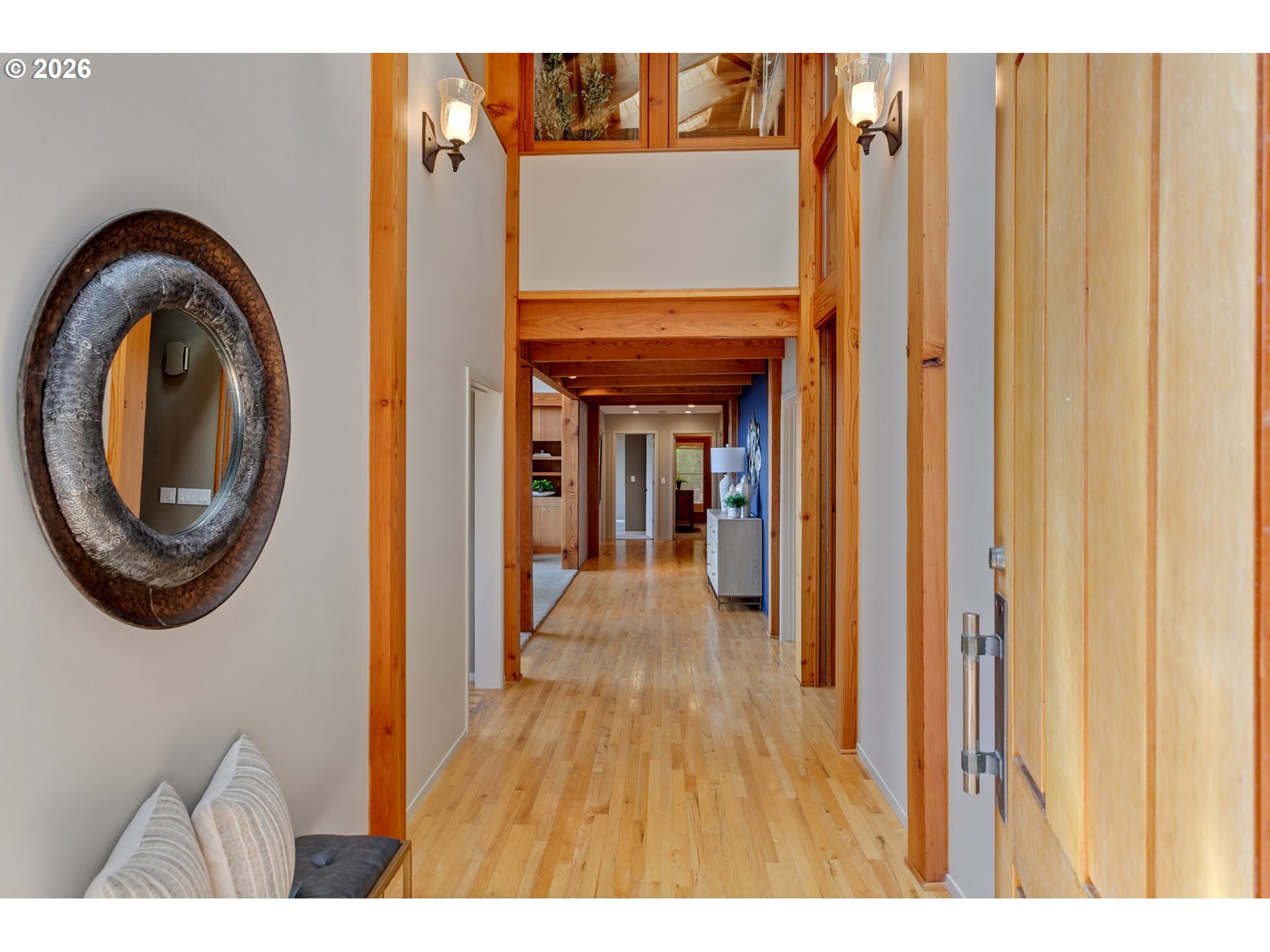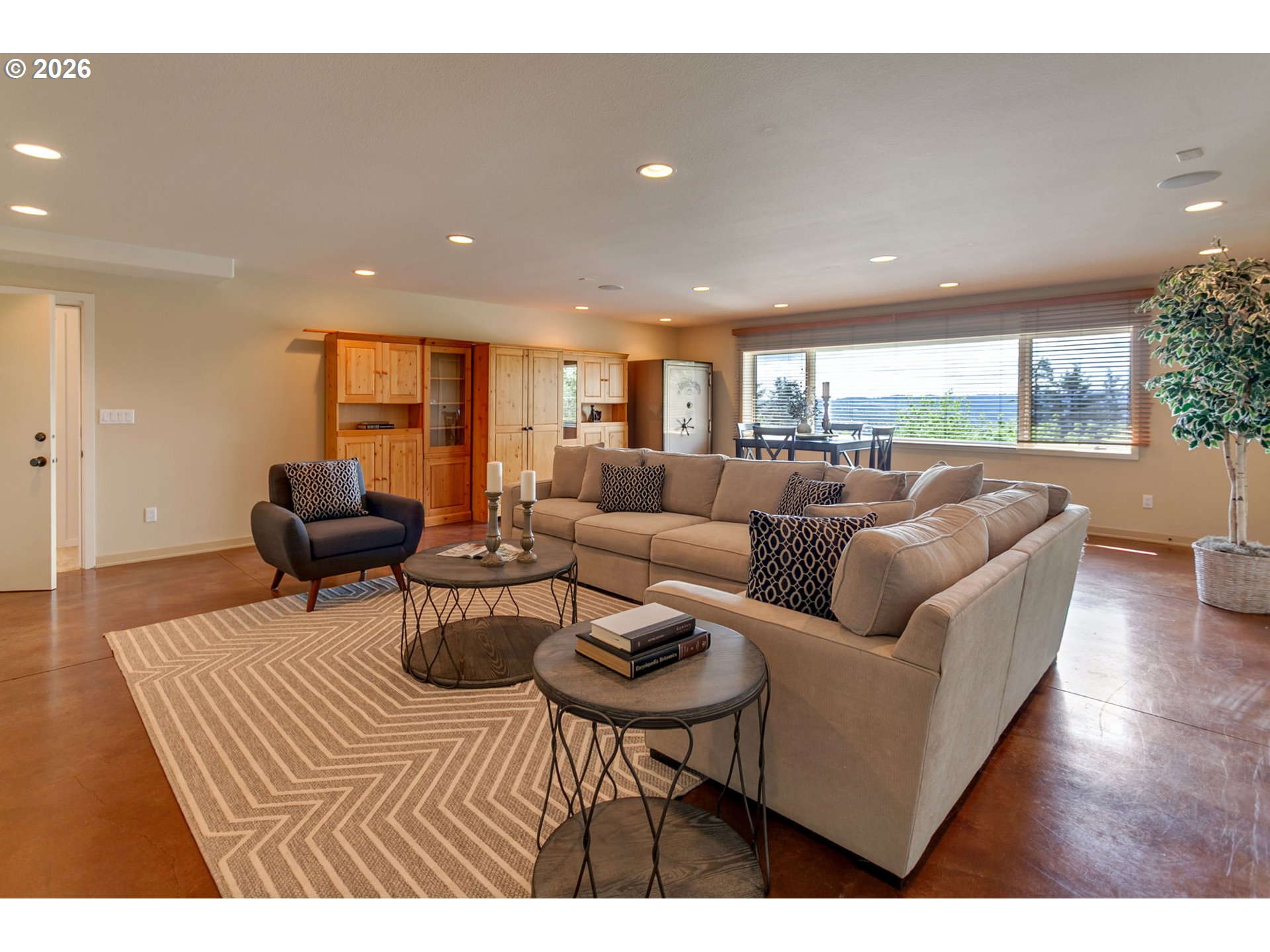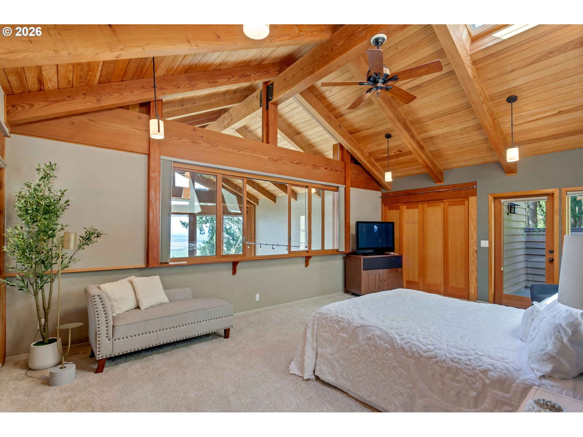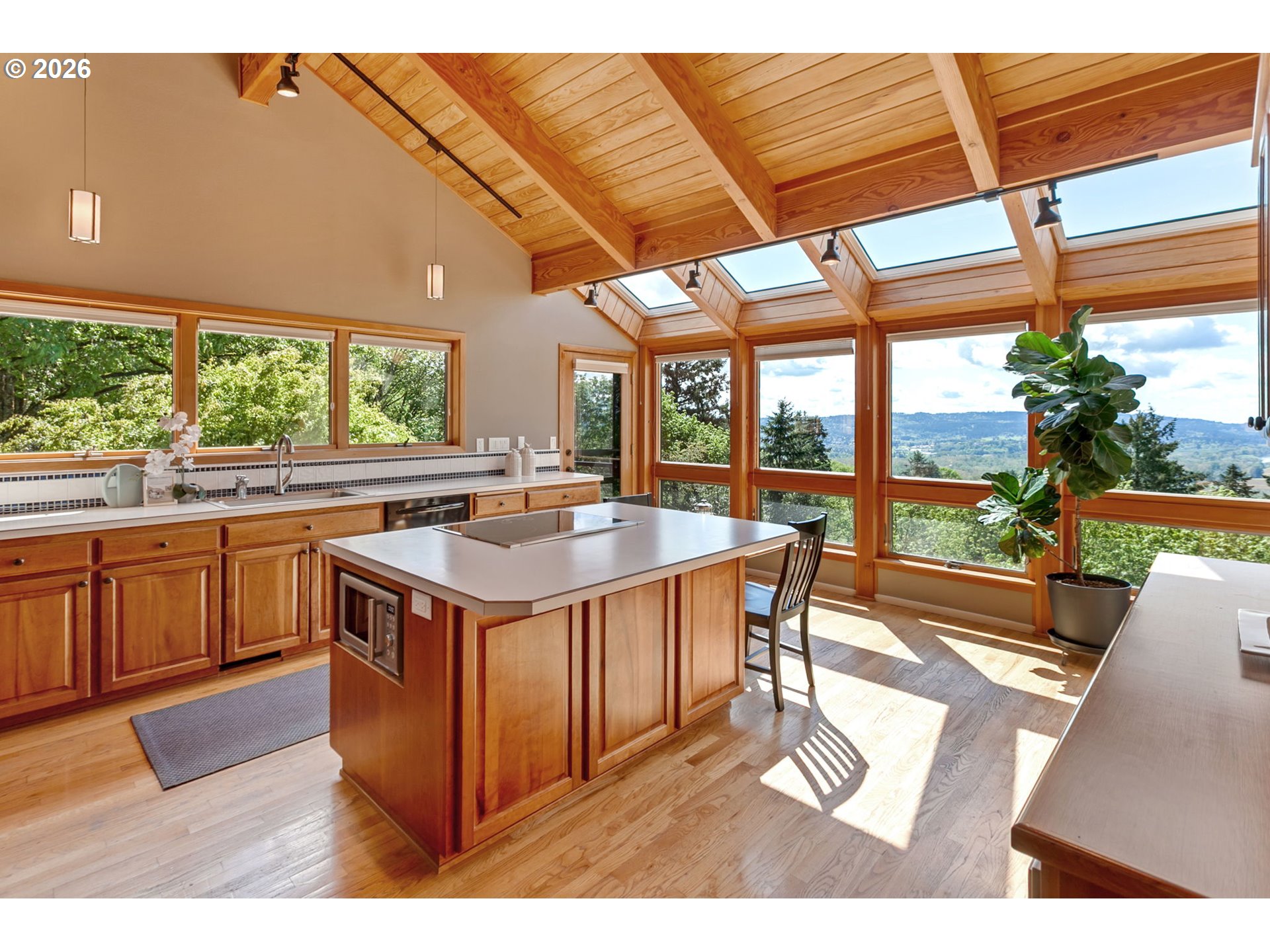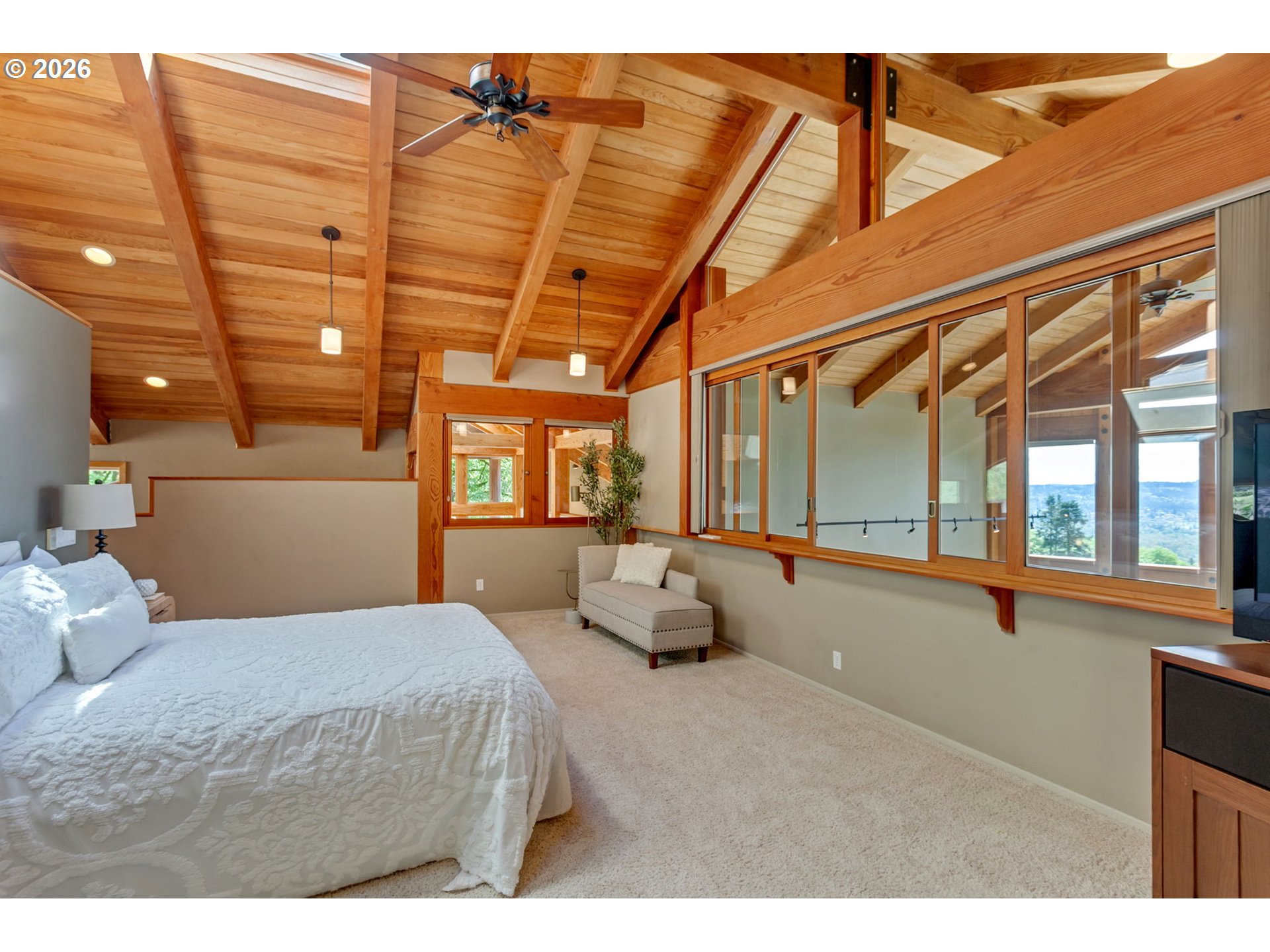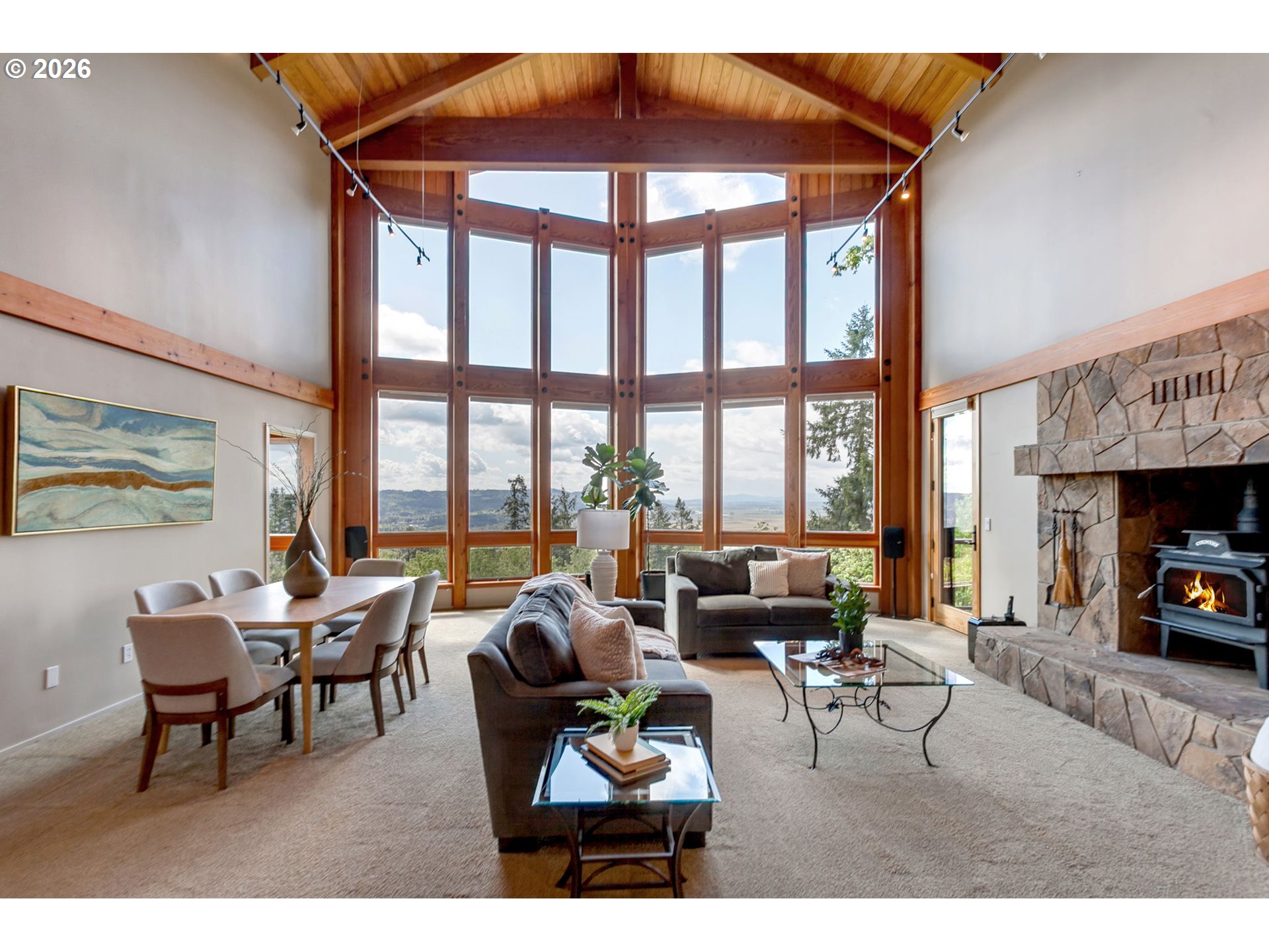 (503) 893-8874Architecturally designed NW-style home with sweeping views of the South Willamette Valley and river, offered for the first time on the market. This one-of-a-kind property showcases exceptional craftsmanship, including solid Douglas fir beams, hemlock tongue-and-groove ceilings, oak floors, and an impressive 8’ solid cherry front door.The vaulted living and dining areas are designed to maximize natural light and views, centered around a striking Ochoco Fawn stone fireplace with wood stove. The kitchen features cherry cabinetry, oak flooring, induction cooktop, French door refrigerator, updated dishwasher, and a large island ideal for entertaining.Primary suite offers expansive views, private deck access with new membrane, Hunter Douglas window coverings, sound-dampening features, walk-in California Closet system, and flexible bonus space. The ensuite bath includes heated tile floors, walk-in tile shower, double sinks, and custom finishes.Additional bedrooms include two on the main level with a remodeled hall bath featuring soaking tub, cherry cabinetry, and heated tile floors. Lower-level bedroom offers valley views and access to a remodeled full bath with tile shower.Lower level includes an oversized rec room with heated concrete floors, plus a climate-controlled wine cellar. Extensive storage throughout with custom built-ins.Exterior features cedar siding, Anderson windows and doors, irrigation via Rain Bird system, and a 500-gallon water holding tank with pressure system and softener (Rickreall Community Water).Garage and shop amenities include a 4-car drive-through garage with 220 power, Tesla charger, and 24x35 heated flex space (currently used as a gym), plus a separate 24x24 workshop with wood stove. Detached garage built in 2008.Additional features: Lennox HVAC system (2011), new water heater (2026), alarm system, crawlspace vapor barrier with air circulation system, surround sound, and multiple updated systems throughout.