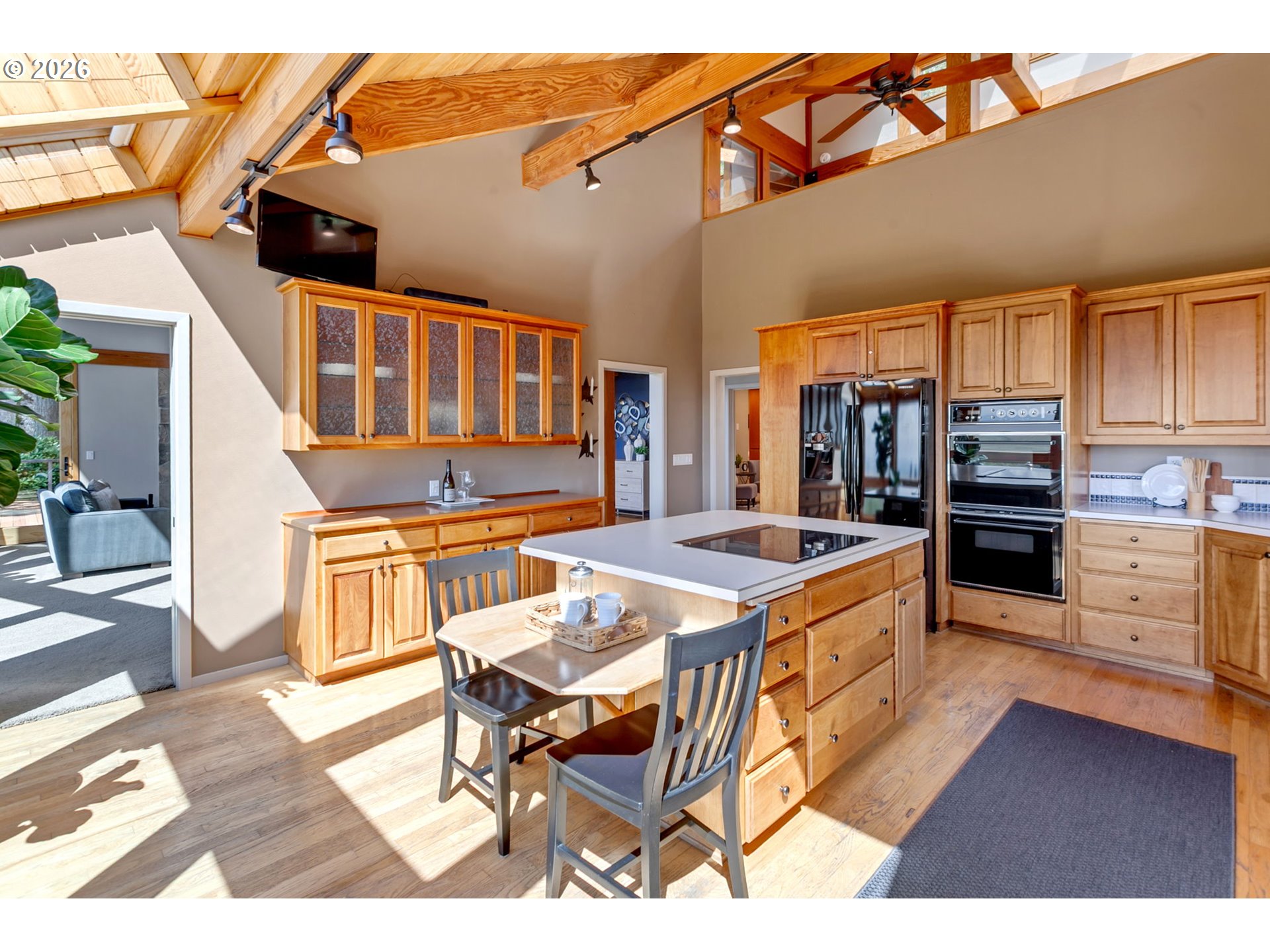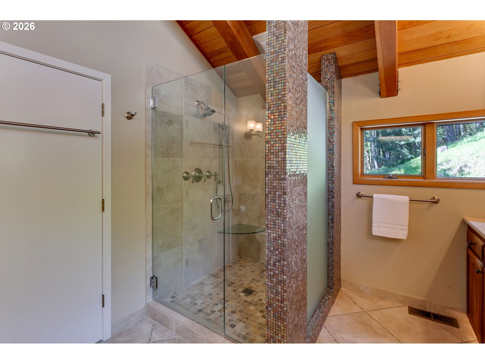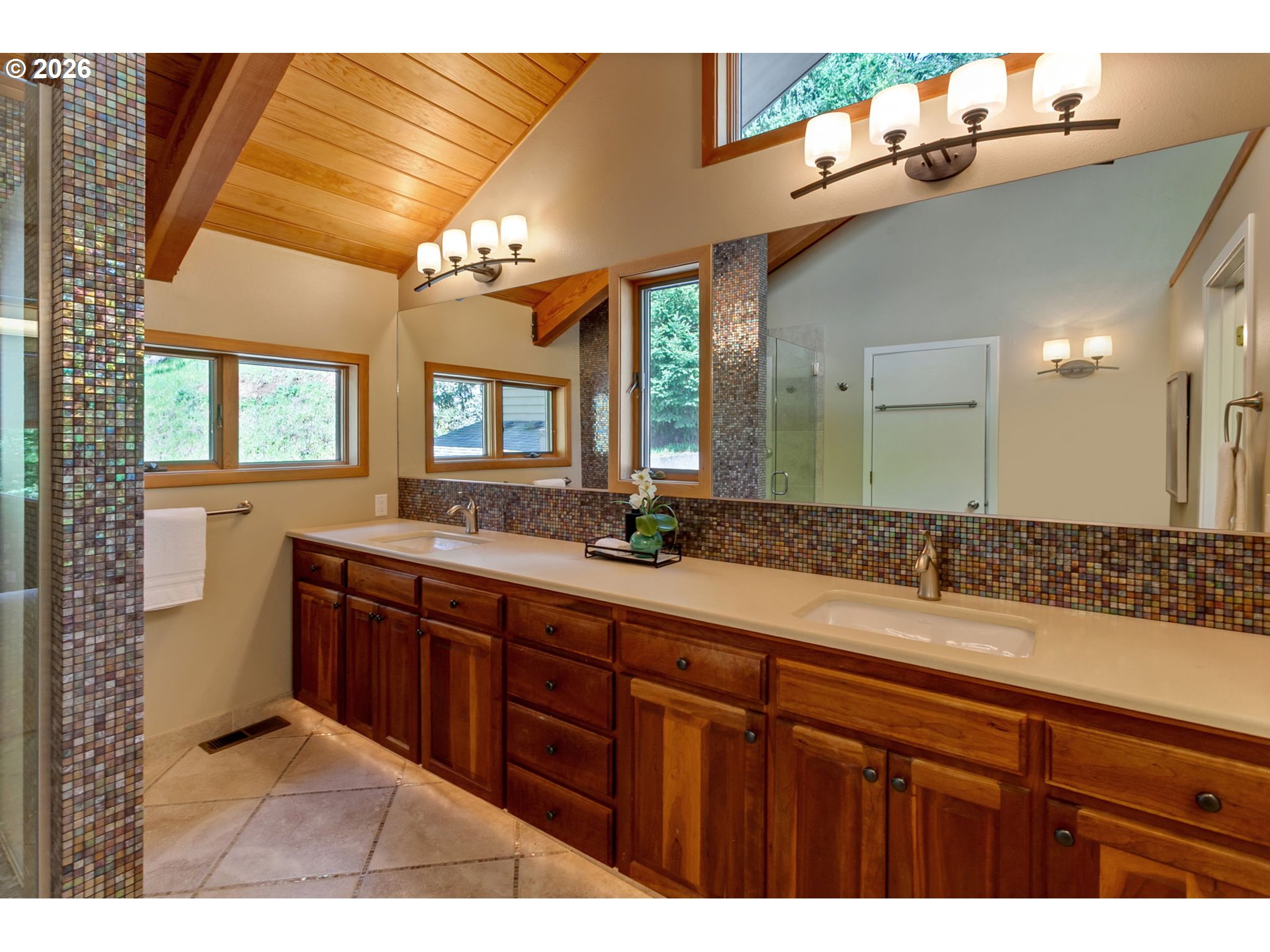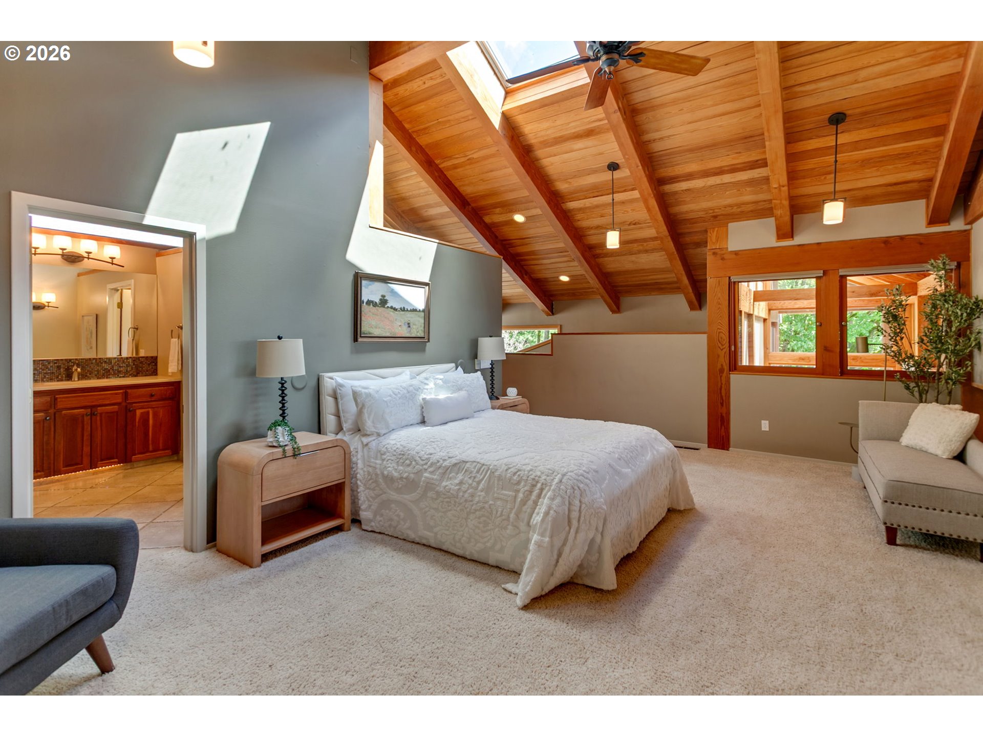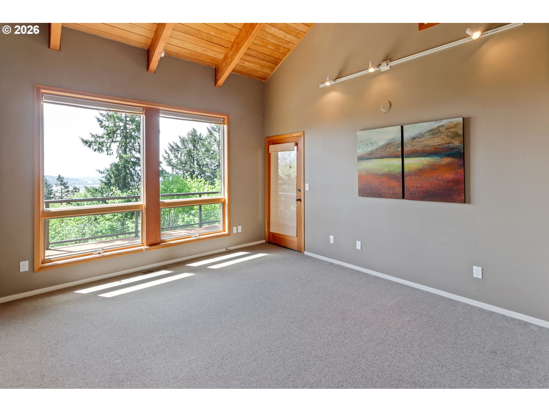 (503) 893-8874Architecturally designed NW-style home with sweeping views of the South Willamette Valley and river, offered for the first time on the market. This one-of-a-kind property showcases exceptional craftsmanship, including solid Douglas fir beams, hemlock tongue-and-groove ceilings, oak floors, and an impressive 8’ solid cherry front door.The vaulted living and dining areas are designed to maximize natural light and views, centered around a striking Ochoco Fawn stone fireplace with wood stove. The kitchen features cherry cabinetry, oak flooring, induction cooktop, French door refrigerator, updated dishwasher, and a large island ideal for entertaining.Primary suite offers expansive views, private deck access with new membrane, Hunter Douglas window coverings, sound-dampening features, walk-in California Closet system, and flexible bonus space. The ensuite bath includes heated tile floors, walk-in tile shower, double sinks, and custom finishes.Additional bedrooms include two on the main level with a remodeled hall bath featuring soaking tub, cherry cabinetry, and heated tile floors. Lower-level bedroom offers valley views and access to a remodeled full bath with tile shower.Lower level includes an oversized rec room with heated concrete floors, plus a climate-controlled wine cellar. Extensive storage throughout with custom built-ins.Exterior features cedar siding, Anderson windows and doors, irrigation via Rain Bird system, and a 500-gallon water holding tank with pressure system and softener (Rickreall Community Water).Garage and shop amenities include a 4-car drive-through garage with 220 power, Tesla charger, and 24x35 heated flex space (currently used as a gym), plus a separate 24x24 workshop with wood stove. Detached garage built in 2008.Additional features: Lennox HVAC system (2011), new water heater (2026), alarm system, crawlspace vapor barrier with air circulation system, surround sound, and multiple updated systems throughout.