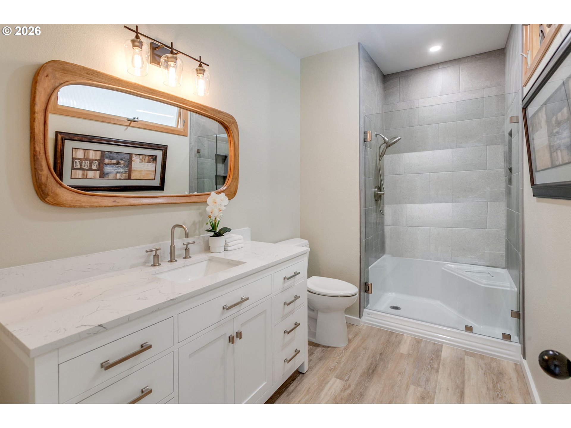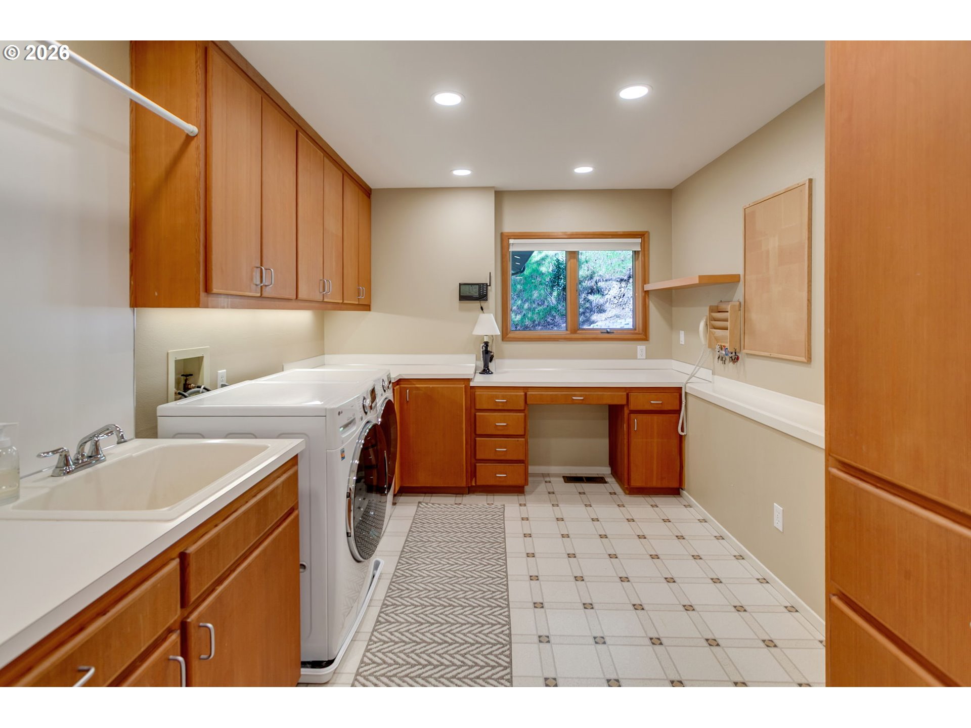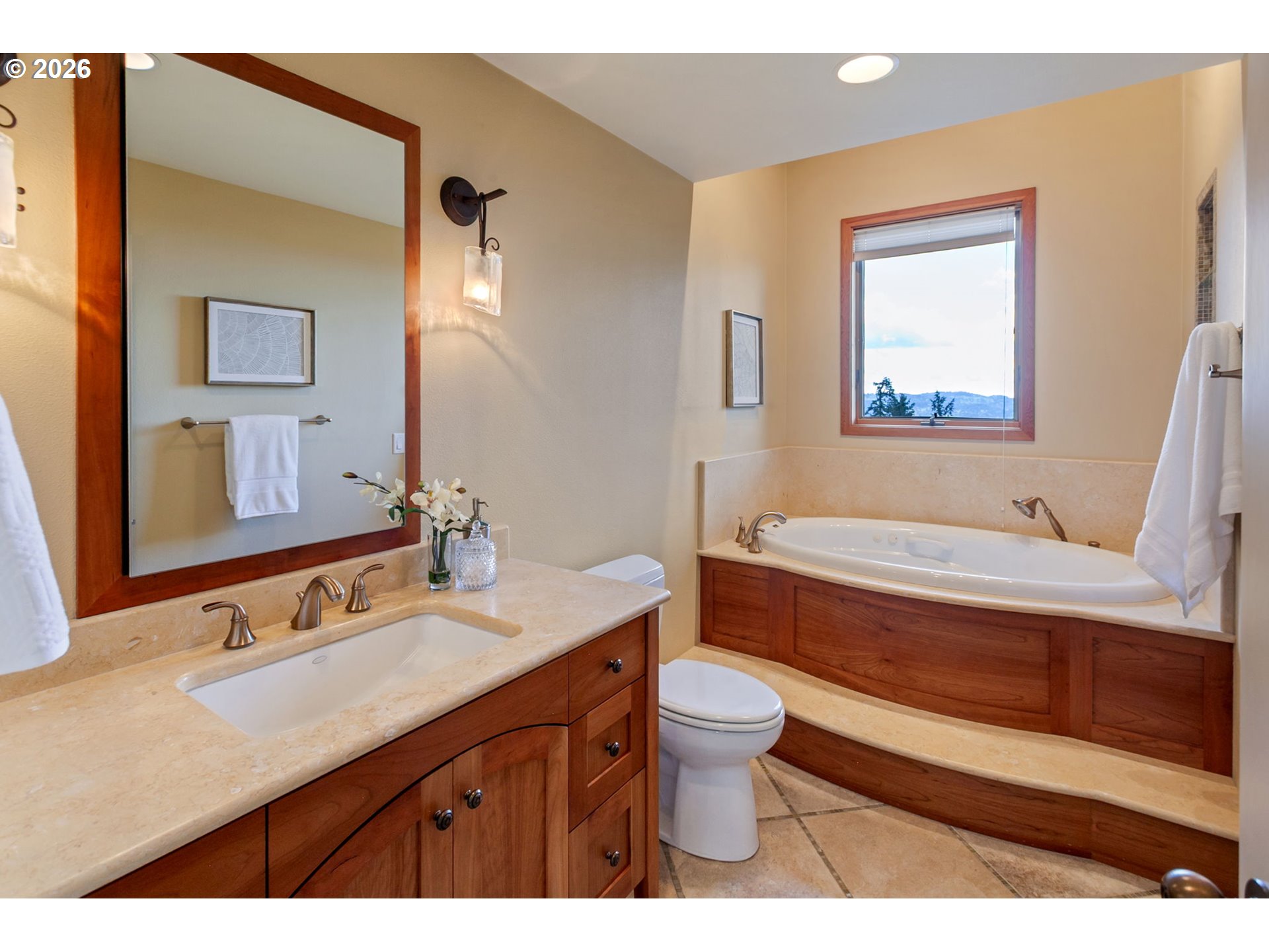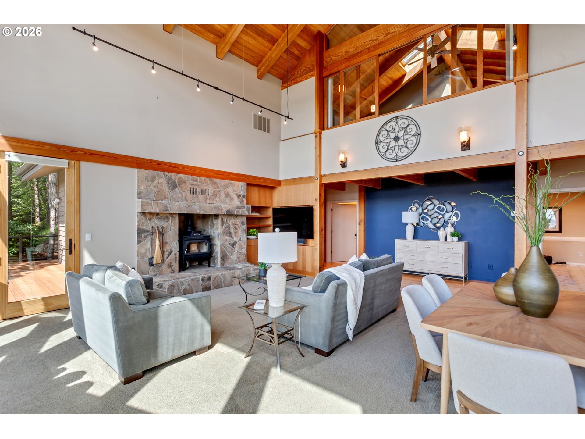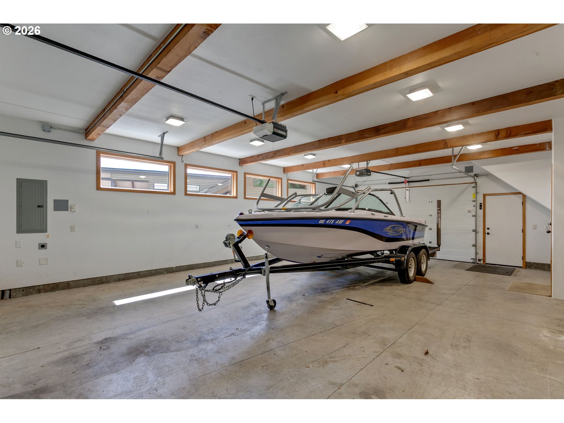 (503) 893-8874Architecturally designed NW-style home with sweeping views of the South Willamette Valley and river, offered for the first time on the market. This one-of-a-kind property showcases exceptional craftsmanship, including solid Douglas fir beams, hemlock tongue-and-groove ceilings, oak floors, and an impressive 8’ solid cherry front door.The vaulted living and dining areas are designed to maximize natural light and views, centered around a striking Ochoco Fawn stone fireplace with wood stove. The kitchen features cherry cabinetry, oak flooring, induction cooktop, French door refrigerator, updated dishwasher, and a large island ideal for entertaining.Primary suite offers expansive views, private deck access with new membrane, Hunter Douglas window coverings, sound-dampening features, walk-in California Closet system, and flexible bonus space. The ensuite bath includes heated tile floors, walk-in tile shower, double sinks, and custom finishes.Additional bedrooms include two on the main level with a remodeled hall bath featuring soaking tub, cherry cabinetry, and heated tile floors. Lower-level bedroom offers valley views and access to a remodeled full bath with tile shower.Lower level includes an oversized rec room with heated concrete floors, plus a climate-controlled wine cellar. Extensive storage throughout with custom built-ins.Exterior features cedar siding, Anderson windows and doors, irrigation via Rain Bird system, and a 500-gallon water holding tank with pressure system and softener (Rickreall Community Water).Garage and shop amenities include a 4-car drive-through garage with 220 power, Tesla charger, and 24x35 heated flex space (currently used as a gym), plus a separate 24x24 workshop with wood stove. Detached garage built in 2008.Additional features: Lennox HVAC system (2011), new water heater (2026), alarm system, crawlspace vapor barrier with air circulation system, surround sound, and multiple updated systems throughout.