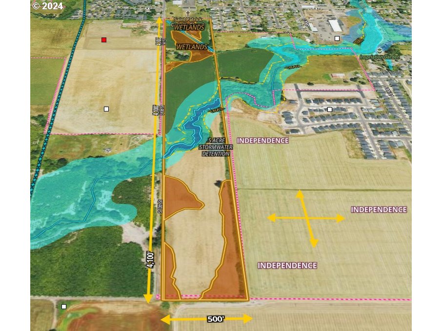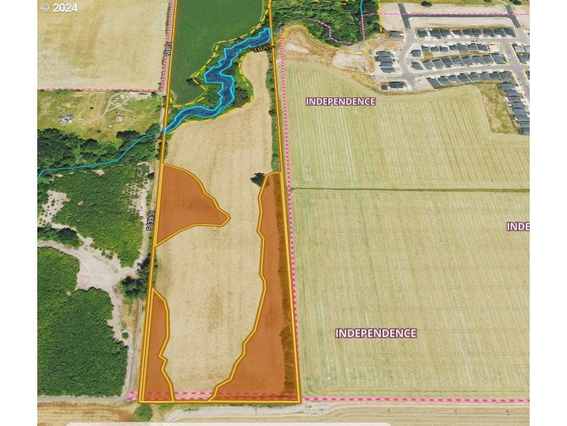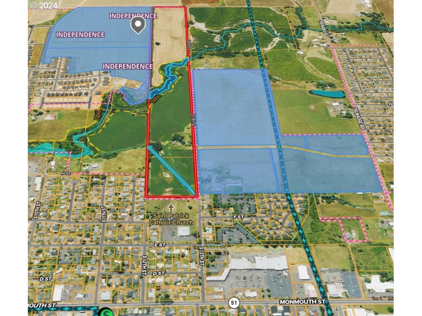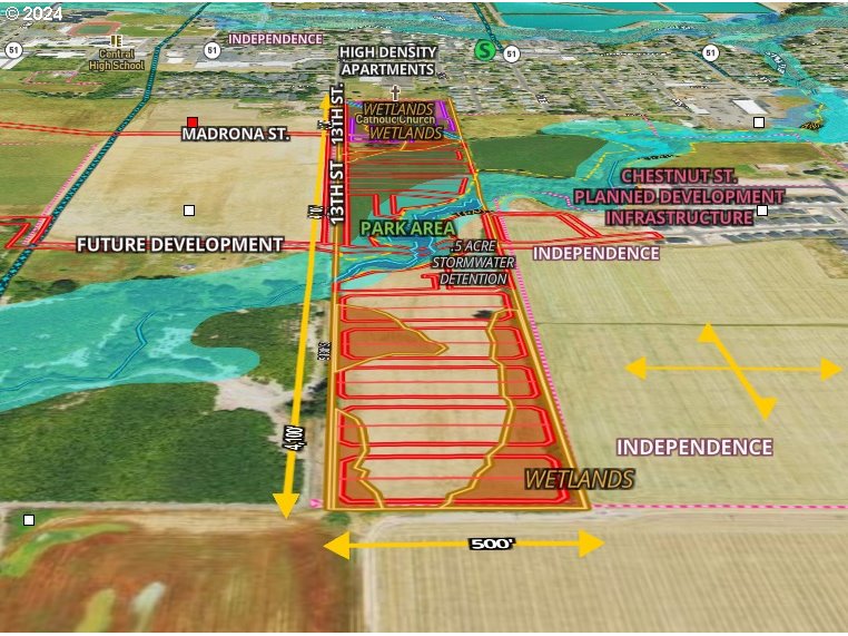 Residential Development property being annexed into the city limits w/ an overlay zone designated for a minimum of 9 units per acre. The Planning Dept. expressed willingness and flexibility to concentrate the high-density residential units into a centralized area to comply w zoning minimums. Wetland delineation map is available. The City reportedly has funds set aside for the construction of the Ash Creek Bridge. This is an efficient, square and flat development with services next to the property.