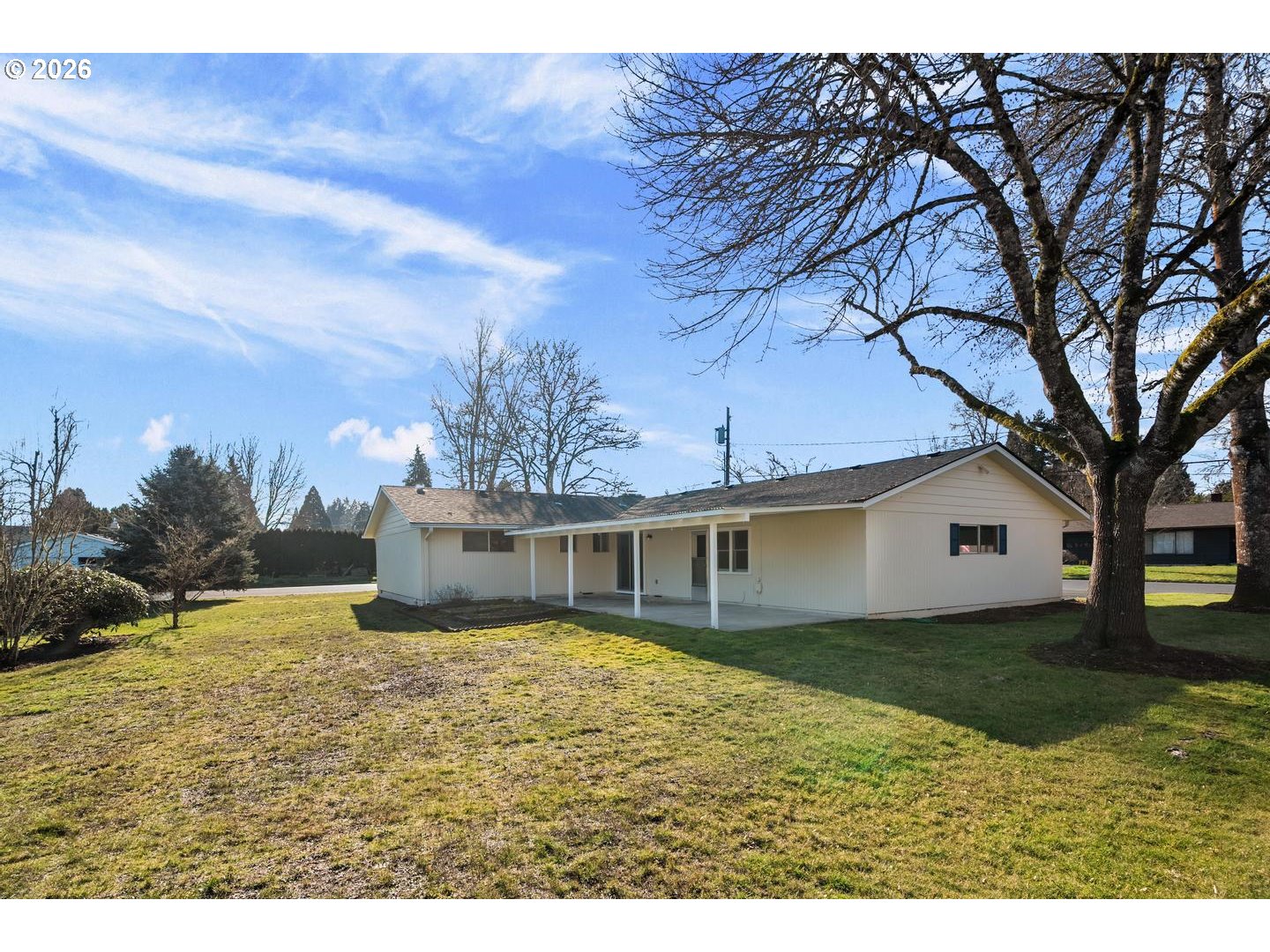 Completely refreshed and move in ready, this single level ranch sits on a spacious quarter acre corner lot in Monmouth. Offering 4 bedrooms and 2 full baths across 1,976 square feet, the home blends original character with thoughtful updates throughout. The kitchen features new quartz countertops, stainless steel appliances, updated hardware and improved venting, while both bathrooms have been renovated with new quartz counters, sinks and fixtures. Hardwood floors have been refinished in the bedrooms and hallway, with new luxury vinyl tile in the kitchen, family room, and baths. Enjoy wood beamed ceilings, a wood burning fireplace, fresh interior and exterior paint, updated electrical panels, new lighting, a new front door and a covered patio that opens to the large yard and garden space. This home is truly move in ready and waiting for its next chapter.