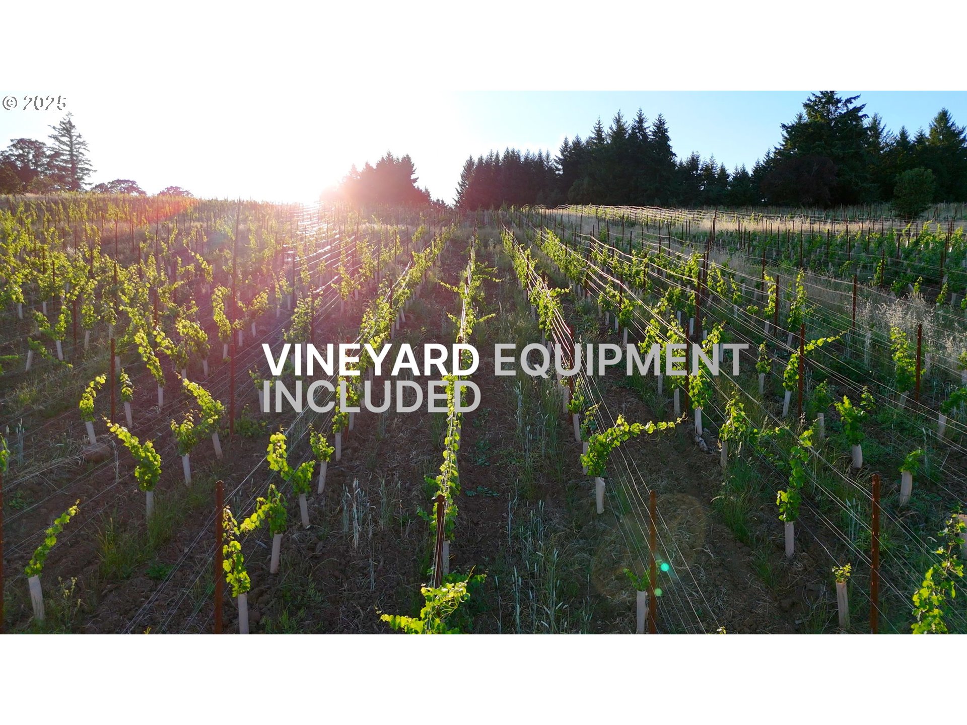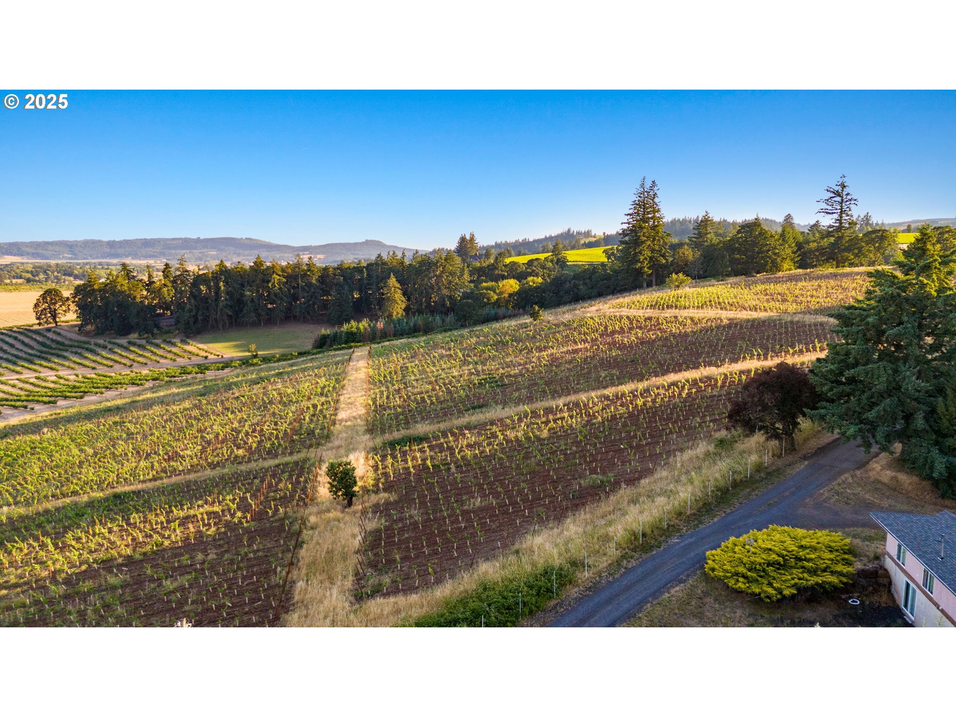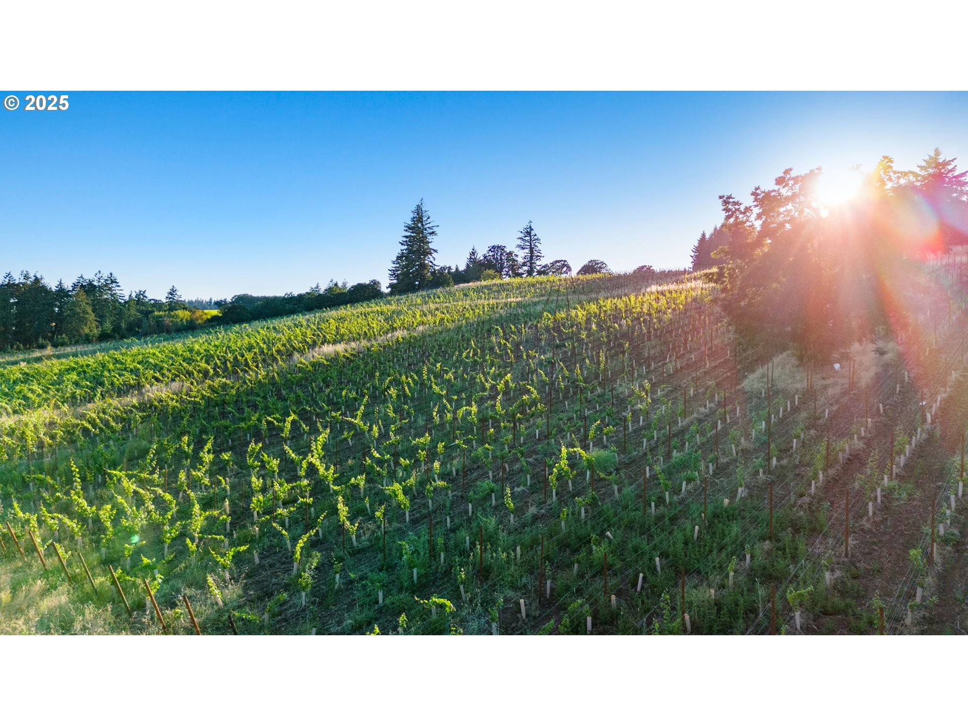 Rare opportunity to own an Eola Hills vineyard with potential homesite in the heart of Oregon’s wine country. Located adjacent to the renowned Seven Springs Vineyard, Lingua Franca and surrounded by other prestigious vineyards. This 20-acre property offers scenic views, versatile land, desirable Jory soil with vines beginning production in fall 2026. Currently planted to 8.1 acres of Pinot Noir and 3.7 acres of Chardonnay (11.8 acres total under vine), with an additional 4 plantable acres. Vineyard equipment included: Kubota tractor, tiller, Gearmore sprayer, and a 400-gallon diesel fuel tank. South-facing site with expansive views of Mt. Hood, Mt. Jefferson, surrounding vineyards, forests, and the distant coastal range. Ideal for those seeking privacy while still being just minutes to town. Prime location for vineyard estate, boutique tasting room, or quiet getaway. Zoned Farm/Forest (FF), buyers to verify all potential uses directly with Polk County.