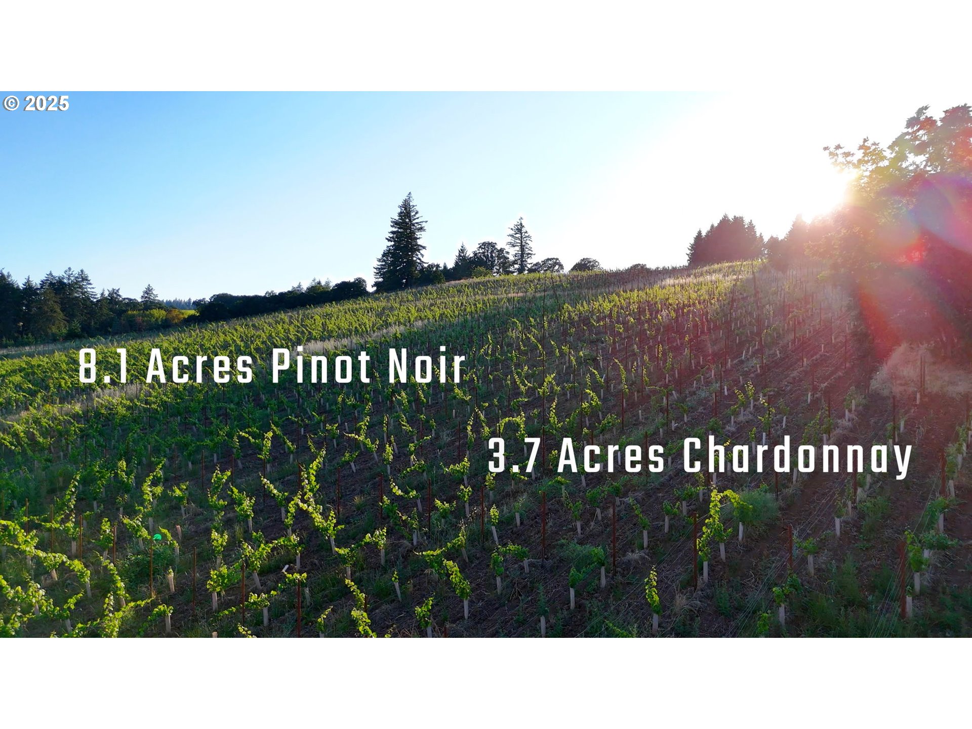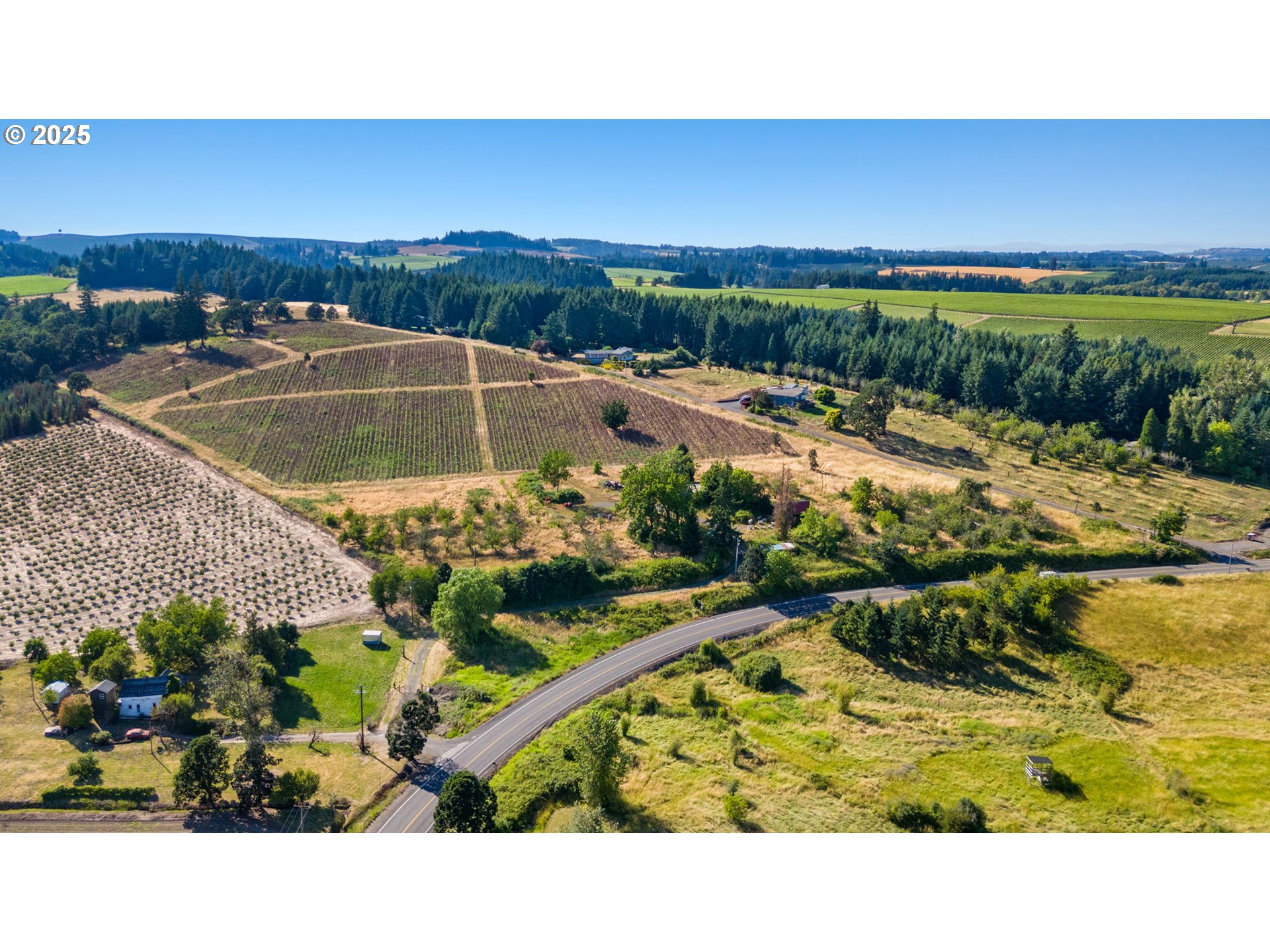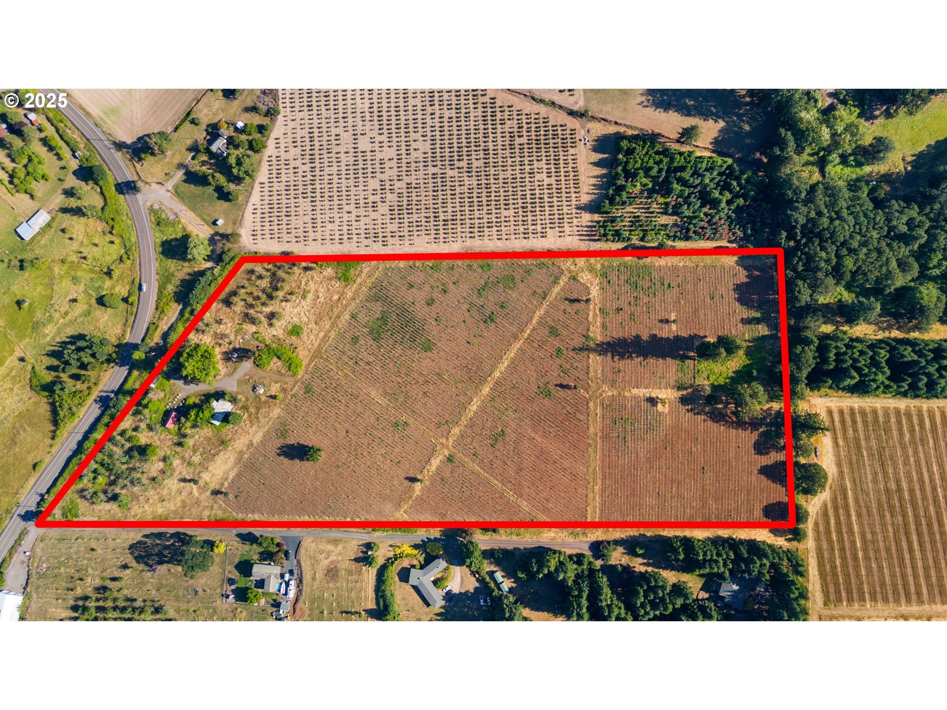 Rare opportunity to own an Eola Hills vineyard with potential homesite in the heart of Oregon’s wine country. Located adjacent to the renowned Seven Springs Vineyard, Lingua Franca and surrounded by other prestigious vineyards. This 20-acre property offers scenic views, versatile land, desirable Jory soil with vines beginning production in fall 2026. Currently planted to 8.1 acres of Pinot Noir and 3.7 acres of Chardonnay (11.8 acres total under vine), with an additional 4 plantable acres. Vineyard equipment included: Kubota tractor, tiller, Gearmore sprayer, and a 400-gallon diesel fuel tank. South-facing site with expansive views of Mt. Hood, Mt. Jefferson, surrounding vineyards, forests, and the distant coastal range. Ideal for those seeking privacy while still being just minutes to town. Prime location for vineyard estate, boutique tasting room, or quiet getaway. Zoned Farm/Forest (FF), buyers to verify all potential uses directly with Polk County.