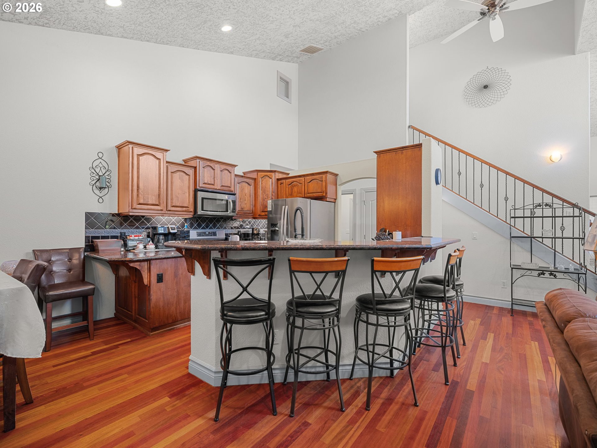 Dual living home in West Salem! Don’t miss this 4 bedroom, 3 bath home featuring vaulted ceilings, cozy gas fireplace, and a spacious kitchen with granite countertops w/ stainless steel appliances. Main level offers a beautiful primary suite with jetted tub, walk in shower, walk in closet, and private access to the backyard. Laundry room and dedicated office also on main level. Upstairs features a full second kitchen with living space, and 3 bedrooms, perfect for multigenerational living. Enjoy a private, fully fenced backyard, perfect for pets & entertaining or enjoying quiet evenings. Located on a quiet cul-de-sac, close to schools and shopping. 3 car garage includes a separate third bay set up as a shop or workspace with its own shower/tub. Schedule your tour today!