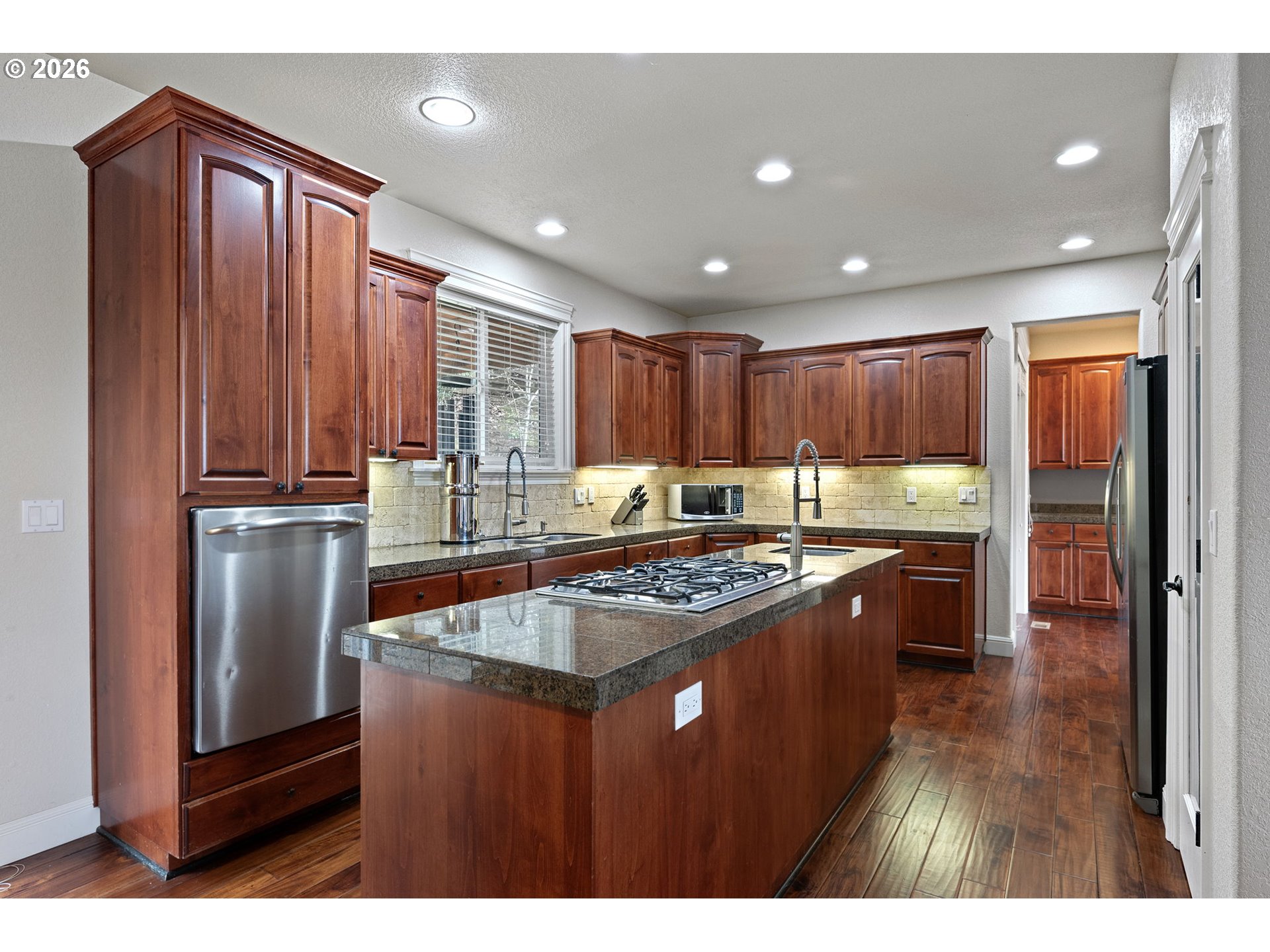 Beautifully maintained home offering space, light, and flexibility across thoughtfully designed levels. Built in 2007 and offering 2,700 square feet, this home features 4 bedrooms, 2.5 baths, a dedicated office, and a versatile flex space downstairs, providing room for everyone and endless possibilities for modern living. Vaulted and high ceilings fill the home with natural light while showcasing beautiful views of the West Salem hills.The spacious kitchen is designed for both everyday living and entertaining, featuring granite countertops, stainless steel appliances, a gas cooktop in the island with prep sink, coffee bar, and a large pantry for ample storage. A formal dining room offers the perfect setting for hosting gatherings and special occasions.Upstairs, the spacious primary suite provides a relaxing retreat with an ensuite bathroom featuring a walk-in shower, large jetted tub, private water closet, and walk-in closet. The lower level offers additional flexible living space ideal for a media room, home gym, guest area, or playroom.Enjoy outdoor living in the private backyard with a covered and uncovered patio perfect for grilling and entertaining. An oversized garage with additional storage area adds convenience and functionality. All together, this home offers comfort, versatility, and beautiful surroundings in a desirable West Salem setting.