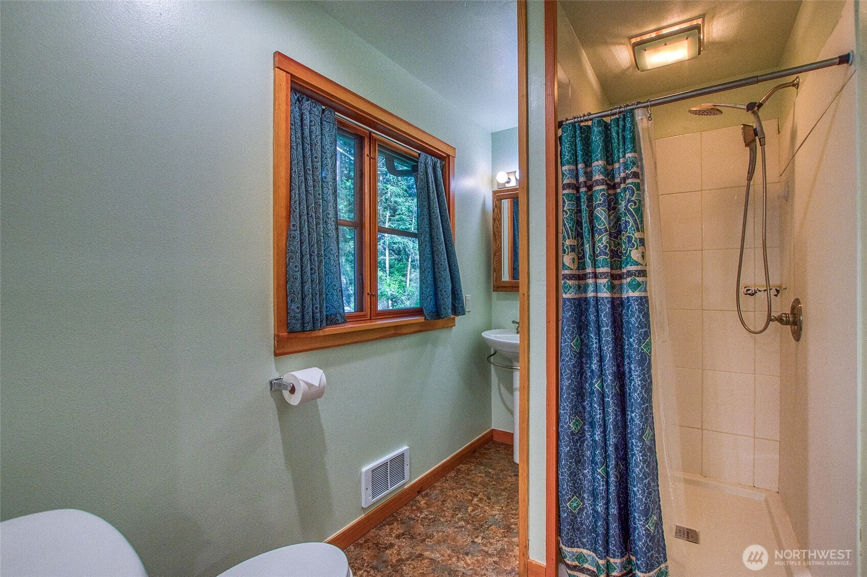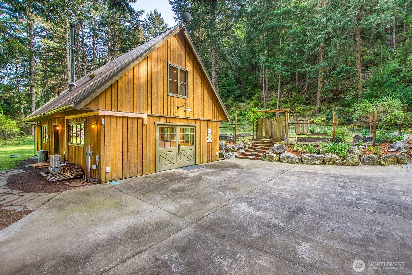 Rare 15 acres of private waterfront property and +/- 1033' of frontage facing the mainland mountains and Matia Island with the potential to create 3 lots. Mature forest, seasonal stream w/ a waterfall and meandering shoreline paths set the stage for your island retreat just 15 minutes from Eastsound. Two existing cabins each w/ 2 bedrms/1 bath & full kitchens for a total of 2165 sf of living space. A main house site is cleared & the drawings are developed w/ septic installed for 7 bedrms (total) should you someday build another home. Chicken coup, kennel/dog run, carport, storage building, patio w/ fire pit, irrigated/fenced raised bed garden and level land to play. Rent one home and occupy the other or enjoy space for friends. A simple land division is approved and ready to record if buyer prefers to have two parcels at closing (10 acres and 5 acres with a house on each lot).