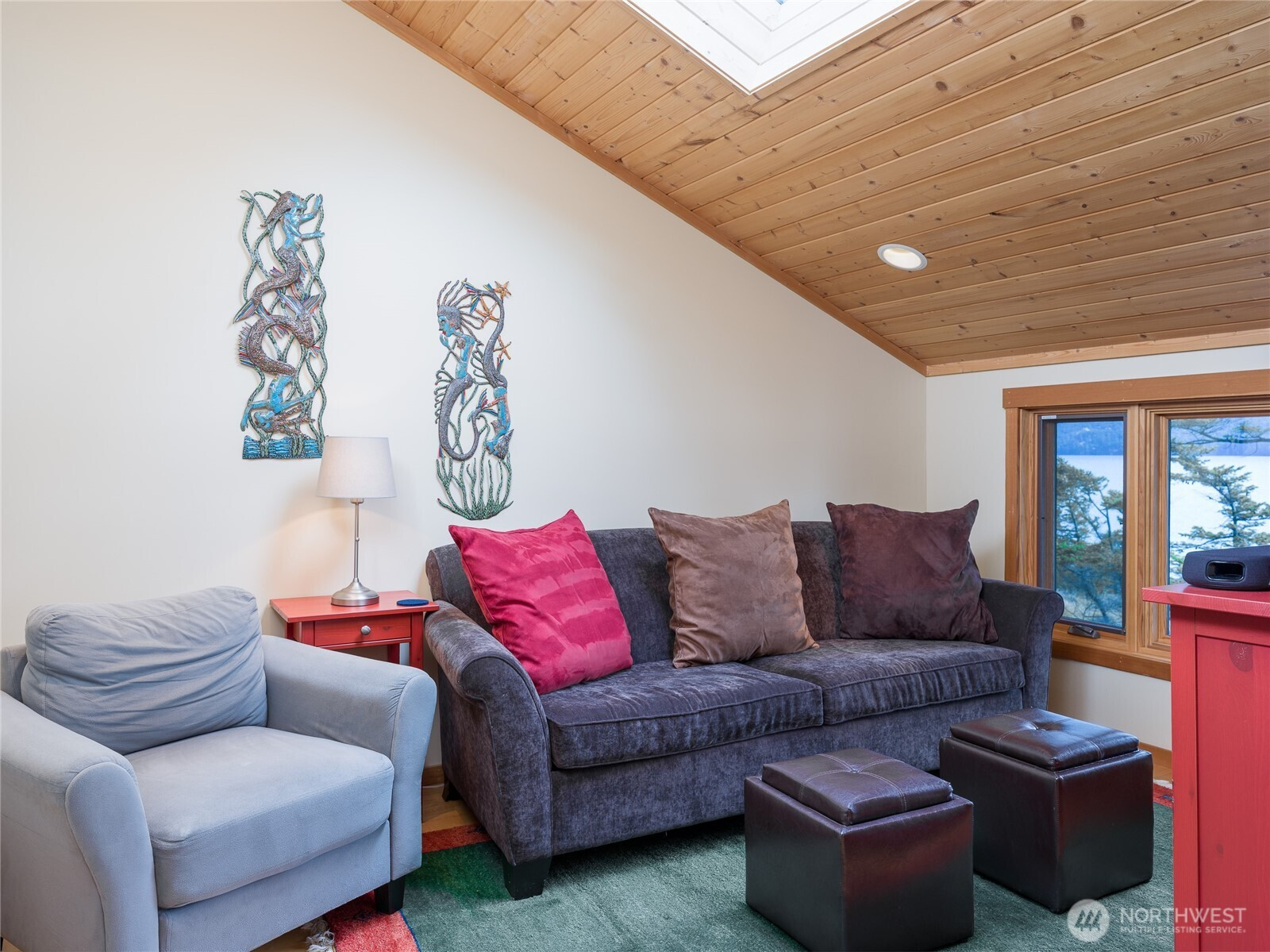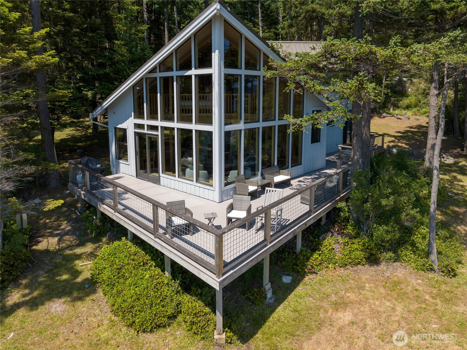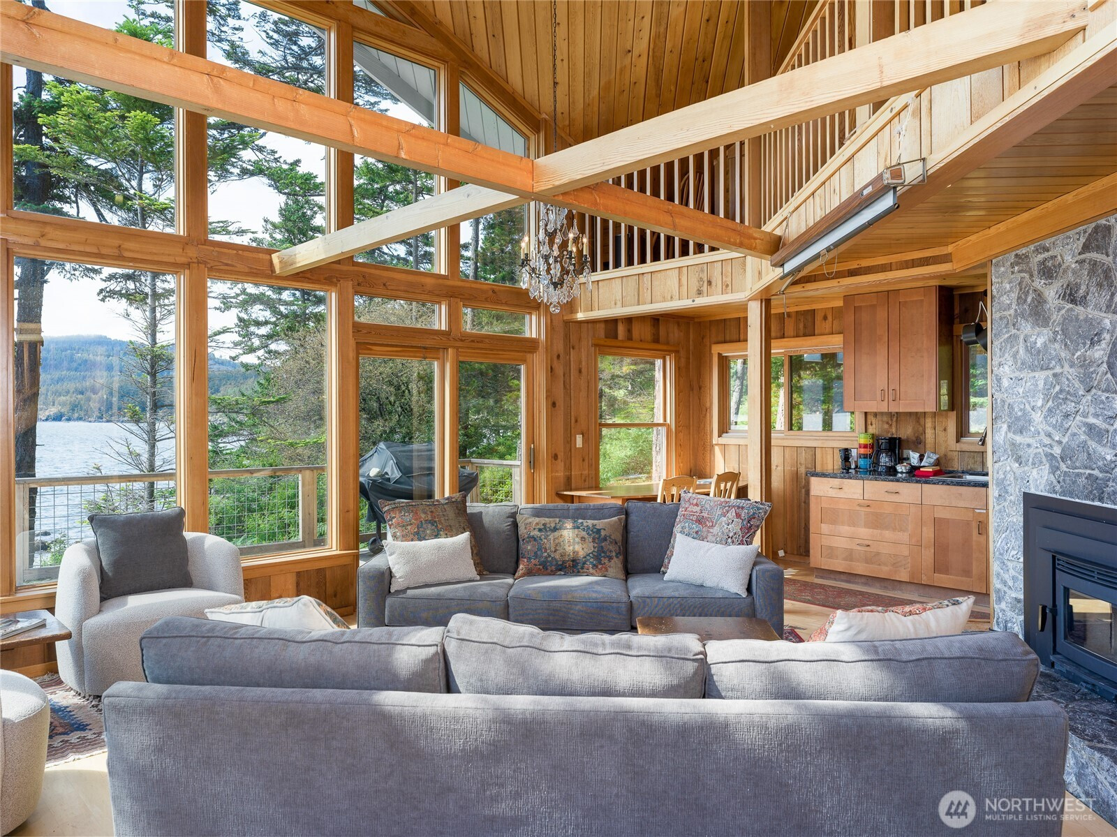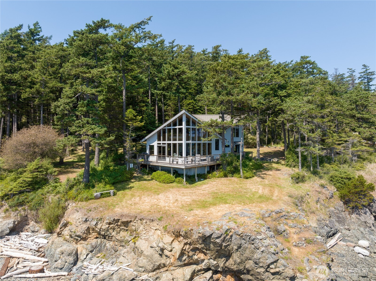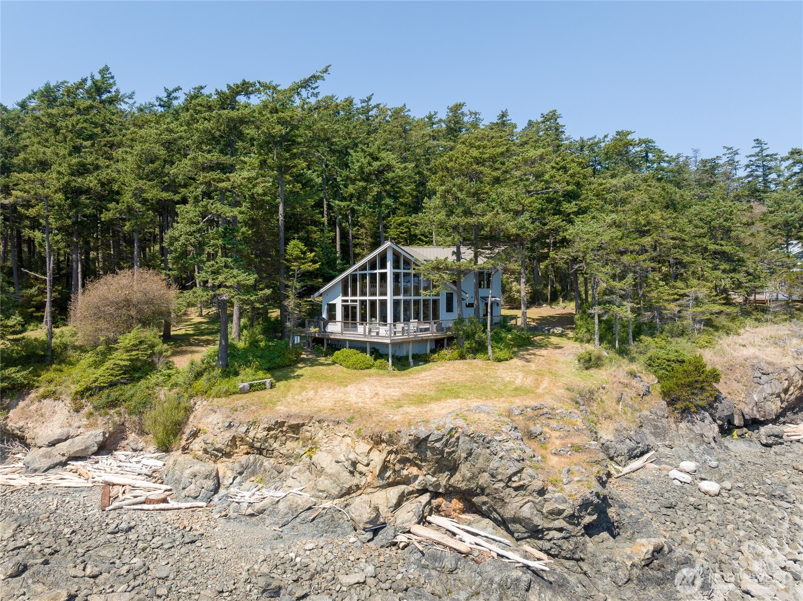 Panorama Point lives up to its name, perched on a southeast-facing point with an exceptional connection to the surrounding waters and natural beauty of Orcas Island. Expansive windows and soaring ceilings in the great room capture stunning waterfront views and fill the home with natural light throughout the day, creating an inviting and uplifting living space. A beautiful stone fireplace with a wood-burning insert provides warmth and ambiance, making the great room an ideal place to gather on cozy island evenings while enjoying the ever-changing scenery beyond. Thoughtfully designed to embrace both privacy and setting, the home sits on nearly five acres of peaceful waterfront property. As you wind down the drive through the wooded landscape, the property offers a wonderful sense of arrival and seclusion. The generous acreage and installed five-bedroom septic system provide room to further enhance the property and create a truly remarkable island estate. The home features three bedrooms, two full bathrooms, a loft, and a den, offering comfortable accommodations for owners and guests alike. Whether enjoyed as a private retreat or shared with visitors, the home is perfectly suited to island living. With an active vacation rental permit and a long-standing history of strong rental income, Panorama Point presents a rare opportunity to own a beautiful waterfront home on Orcas Island that also serves as a proven investment property.