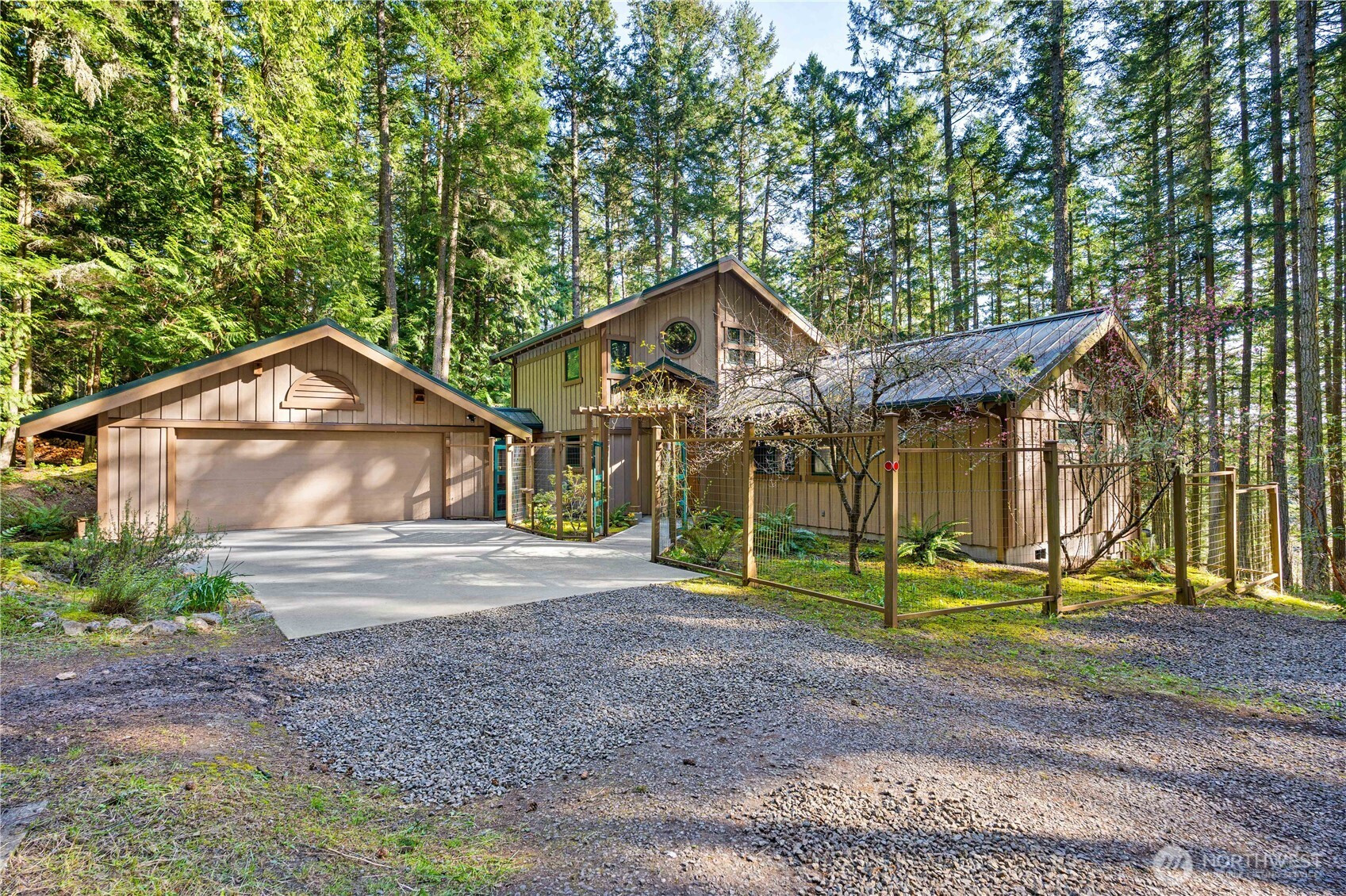 First time on the market, this Northwest contemporary home is located in the private neighborhood of Three Meadows. Beautifully maintained, the home features 2 bedrooms and 2 bathrooms, including a primary ensuite on the main level. The functional layout offers comfortable living spaces with good natural light.Exterior features include board-and-batten siding and a metal roof, providing a clean, durable finish. An outdoor deck offers space to enjoy the summer sun and the surrounding flora and fauna. Situated on a private lot, the property offers a quiet setting with ample space to relax and take in the natural surroundings.Three Meadows is a community of 30 parcels, each approximately five acres, with 210 acres set aside as common land that residents enjoy and maintain on a volunteer basis. Shared amenities include open space, trails, a community barn, and pastures where owners may raise livestock for non-commercial use. Most pastures have been recently fenced, and the 1905 barn is structurally sound and actively used. Common lands also feature a 35-acre marsh, ponds, open pastures, and native forest. Limited availability in this neighborhood makes this a strong opportunity for buyers seeking privacy while still having access to well-maintained shared land.