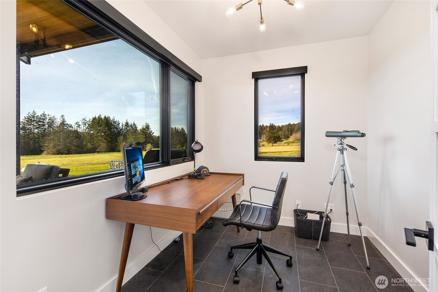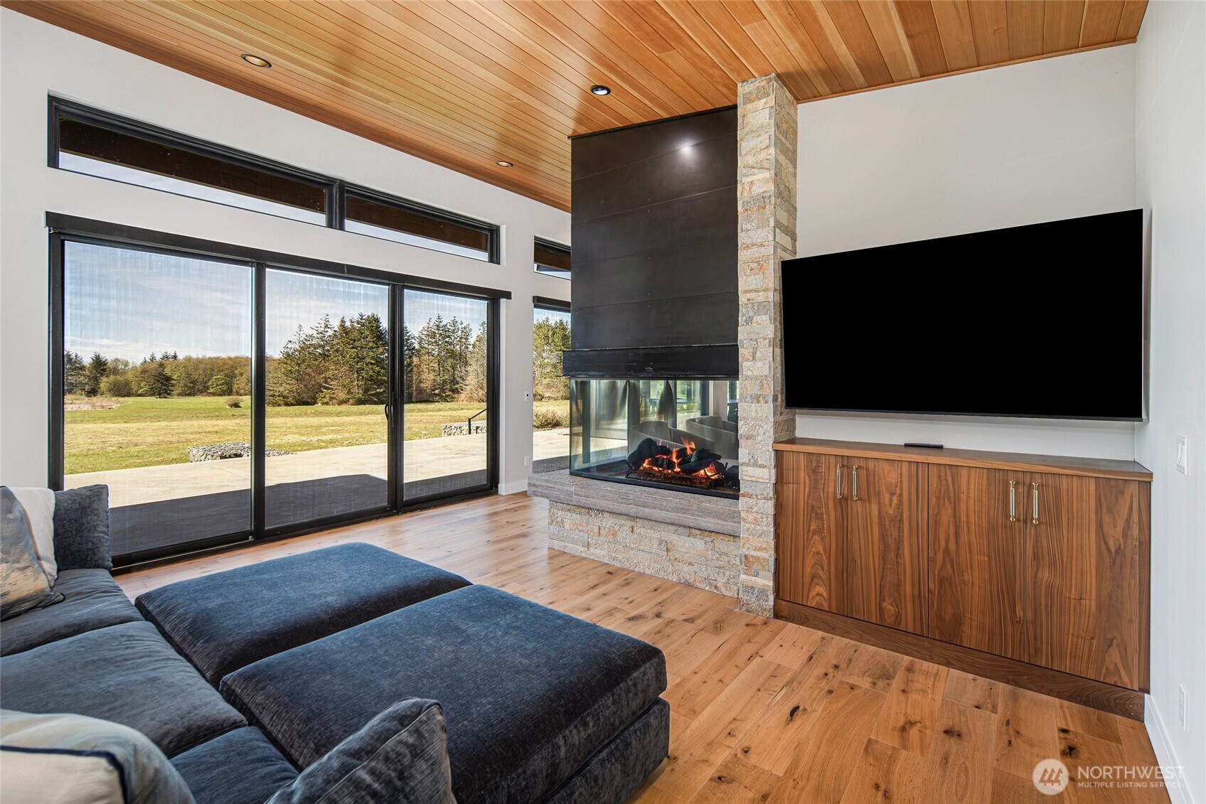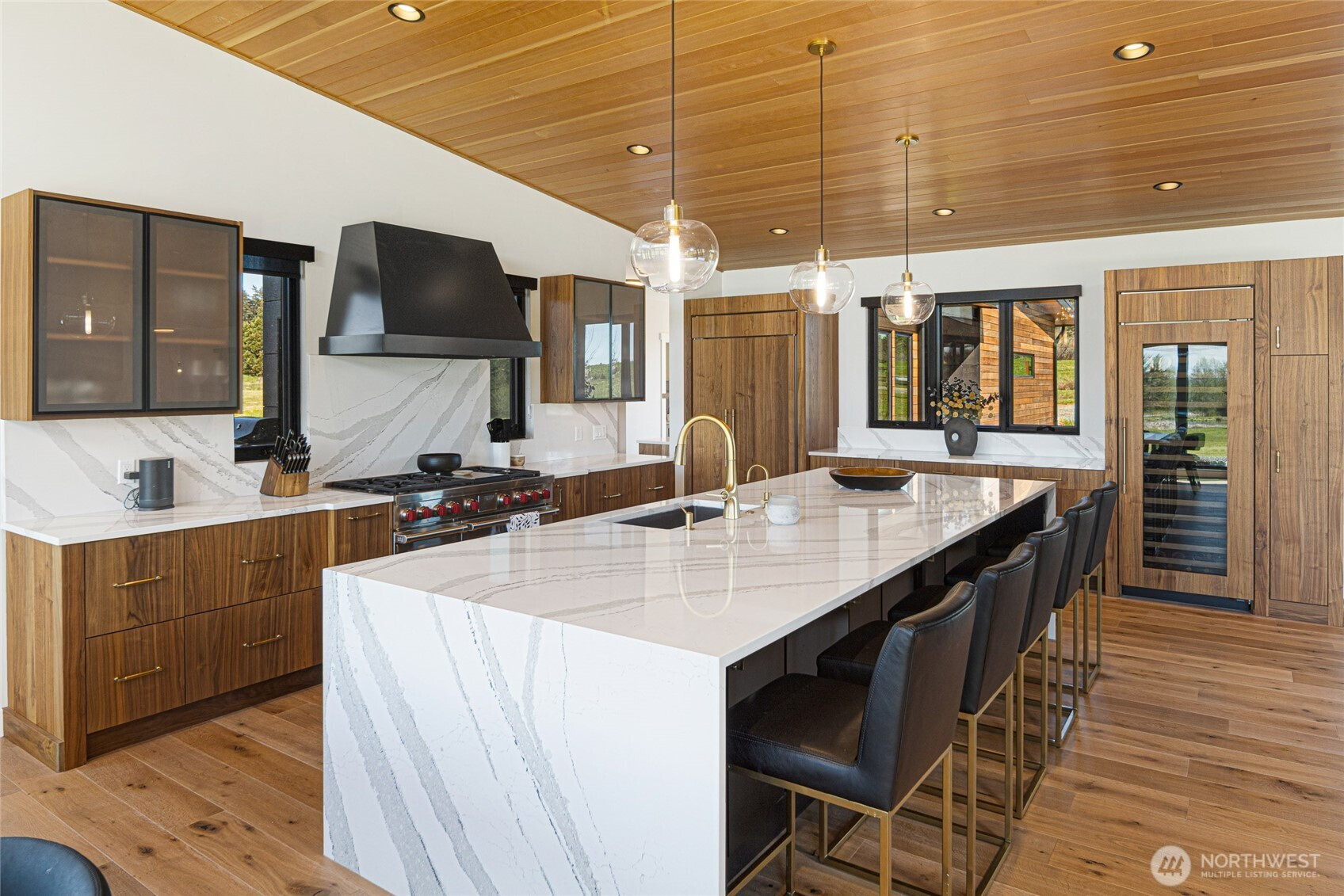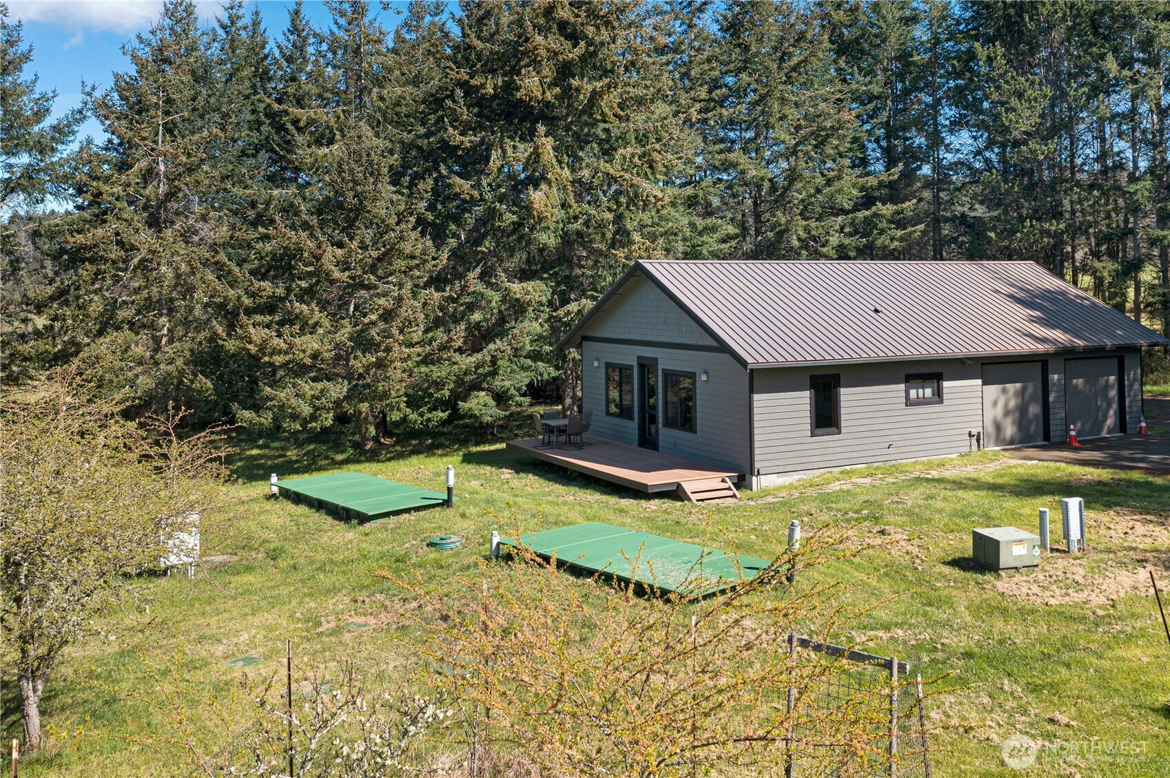Refined living near beautiful False Bay—this is a rare opportunity to own a newly built modern estate on 8± private acres in the sought-after Gleneagle neighborhood. Completed in 2023, the home combines clean, contemporary design with timeless craftsmanship, all set among open skies, west-facing views, and peaceful island privacy. The 3,372 sq ft main residence features three en-suite bedrooms, five bathrooms, and a dedicated office, offering a layout that works just as well for daily living as it does for entertaining. At the heart of the home is an open-concept living space anchored by a chef’s kitchen with high-end appliances, custom cabinetry, and quality finishes throughout. Expansive windows fill the home with natural light and frame serene meadow and sunset views, along with a picturesque outlook across common land featuring a pond, gazebo, and small dock. A separate 786 sq ft guesthouse provides flexible space for visitors, extended stays, or a private studio—while preserving privacy for both homes. Modern San Juan Island living at its best—new construction, thoughtful design, and a quiet, scenic setting just minutes from Friday Harbor’s shops, dining, and marina.