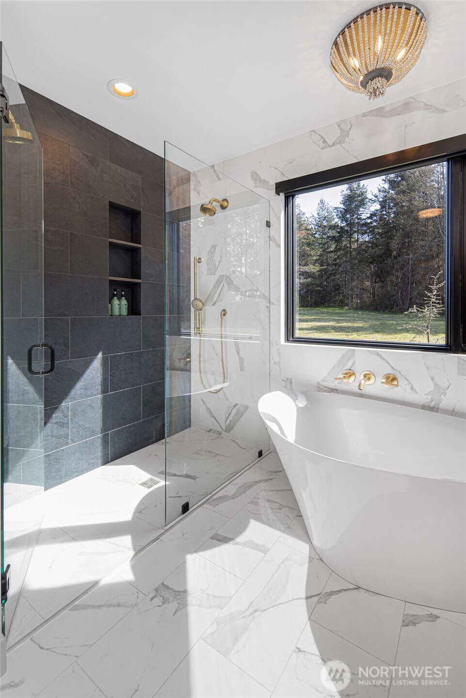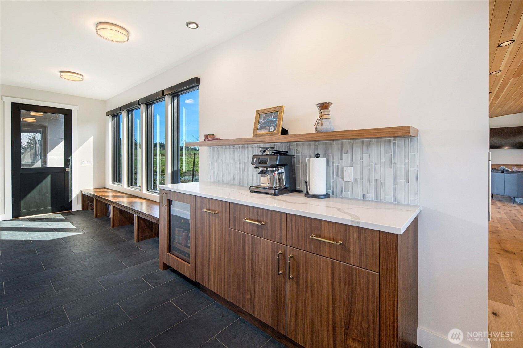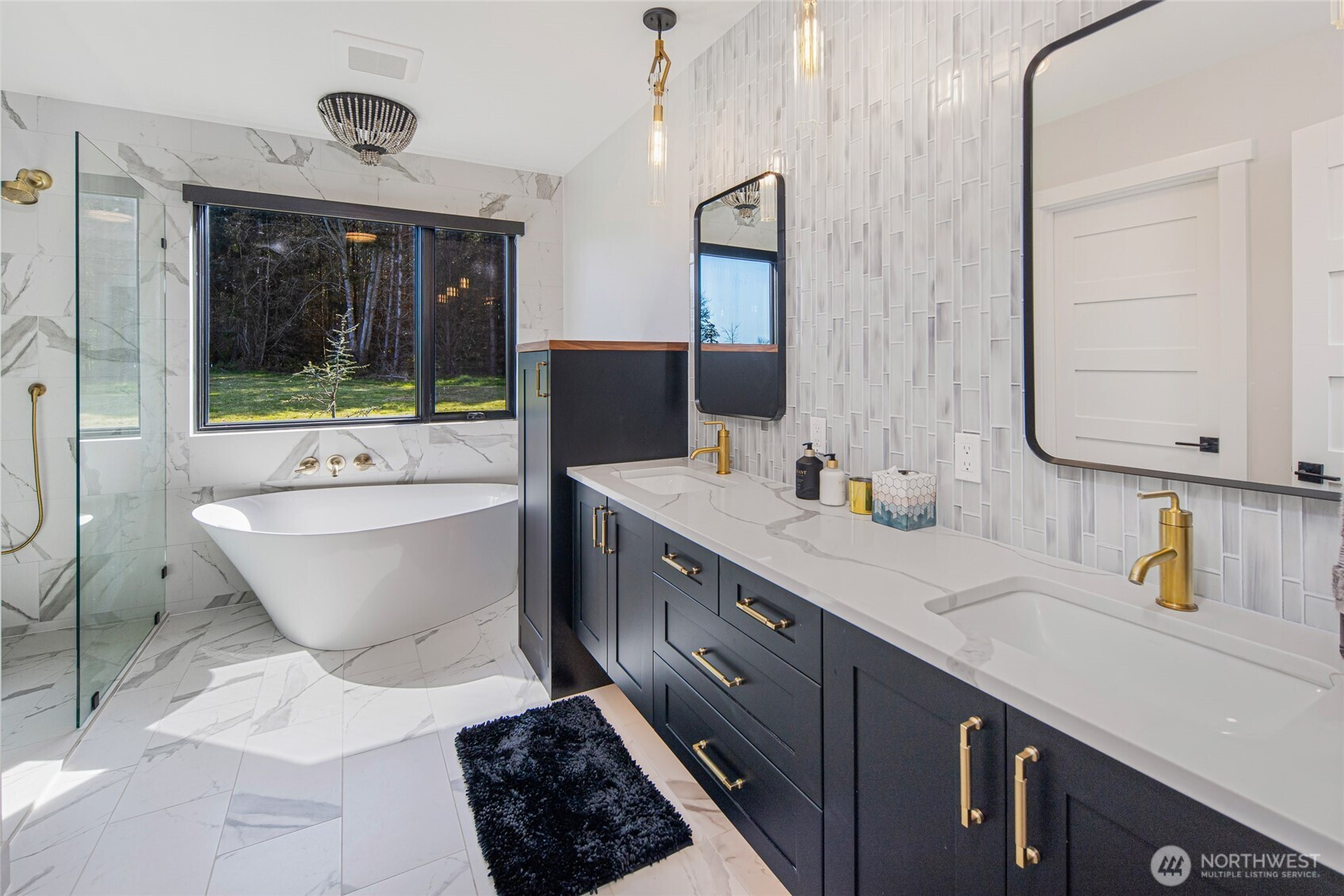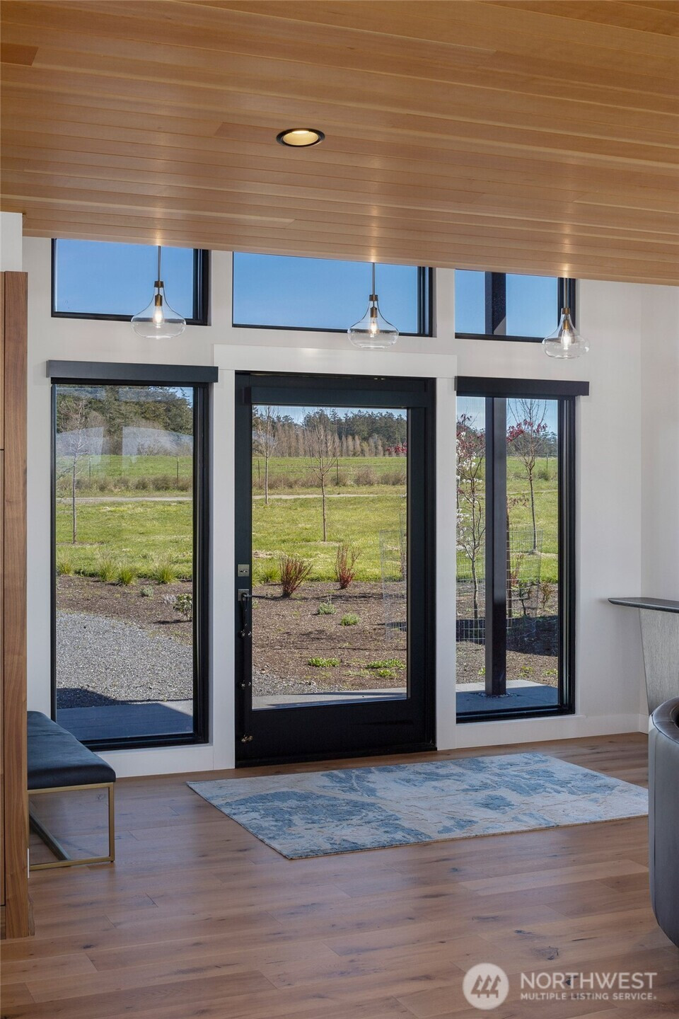 Refined living near beautiful False Bay—this is a rare opportunity to own a newly built modern estate on 8± private acres in the sought-after Gleneagle neighborhood. Completed in 2023, the home combines clean, contemporary design with timeless craftsmanship, all set among open skies, west-facing views, and peaceful island privacy. The 3,372 sq ft main residence features three en-suite bedrooms, five bathrooms, and a dedicated office, offering a layout that works just as well for daily living as it does for entertaining. At the heart of the home is an open-concept living space anchored by a chef’s kitchen with high-end appliances, custom cabinetry, and quality finishes throughout. Expansive windows fill the home with natural light and frame serene meadow and sunset views, along with a picturesque outlook across common land featuring a pond, gazebo, and small dock. A separate 786 sq ft guesthouse provides flexible space for visitors, extended stays, or a private studio—while preserving privacy for both homes. Modern San Juan Island living at its best—new construction, thoughtful design, and a quiet, scenic setting just minutes from Friday Harbor’s shops, dining, and marina.