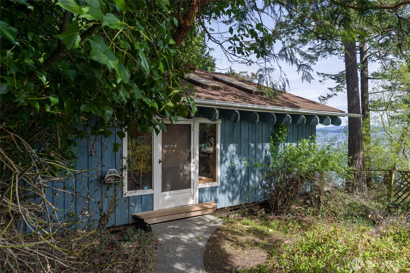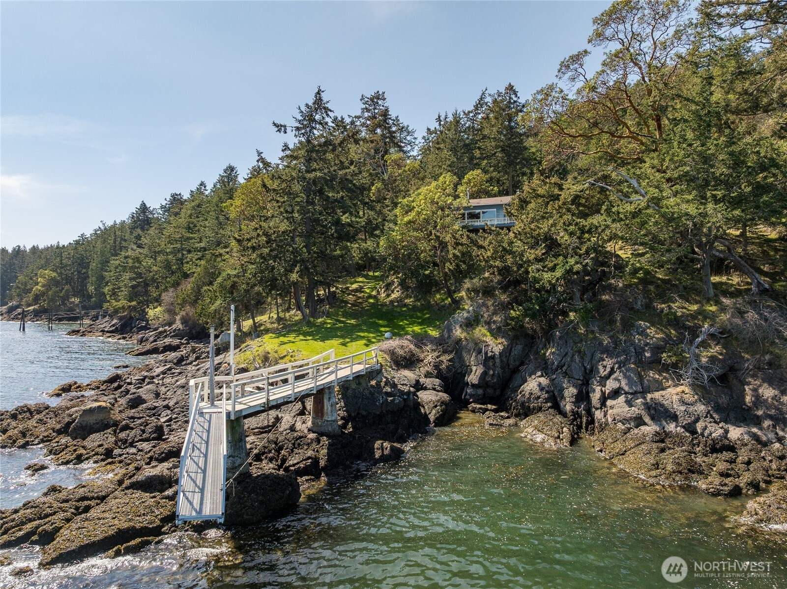 Nearly ten acres of terraced shoreline and mature landscaping, just a short stroll from the Lopez Ferry Landing. The centerpiece is a rare deep-water private dock with a 35-foot float, solid depth, power, and vehicle access for easy boat loading — a genuine rarity in the San Juans. (The float is currently stored off site.) The 1962 main house offers sweeping views of open water, mountains, and ferry traffic from 2,410 sf across two levels. A 600 sf waterfront cottage adds flexible space for guests, a studio, or a home office. Rounding out the property: a 960 sf detached garage and shop, two-car carport, chicken coop, fenced garden, dog run, and additional storage sheds. Two tax parcels, two wells, catchment with storage for irrigation, pocket beaches, a 20KW backup generator, and excellent privacy make this a self-sufficient retreat. Community Hilltop water and Rock Island fiber are available on the property but not yet connected — easy upgrades for the next owner.