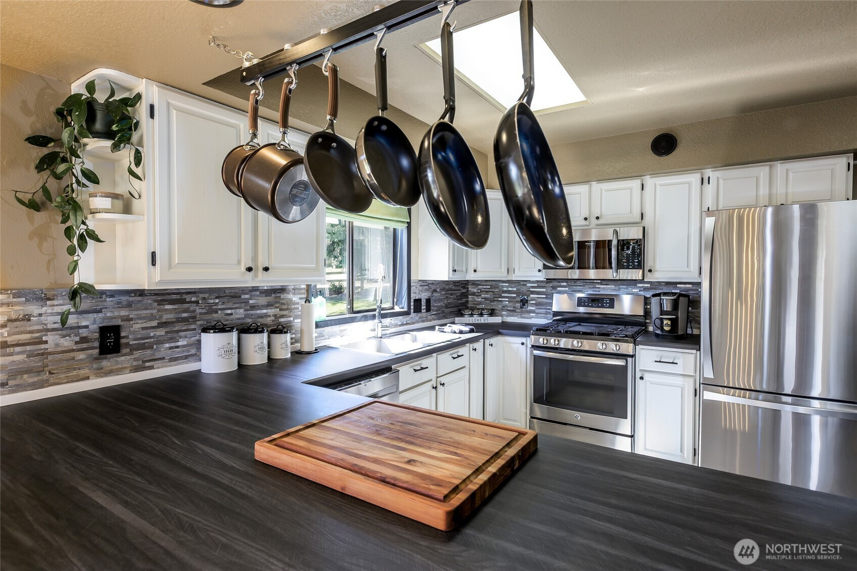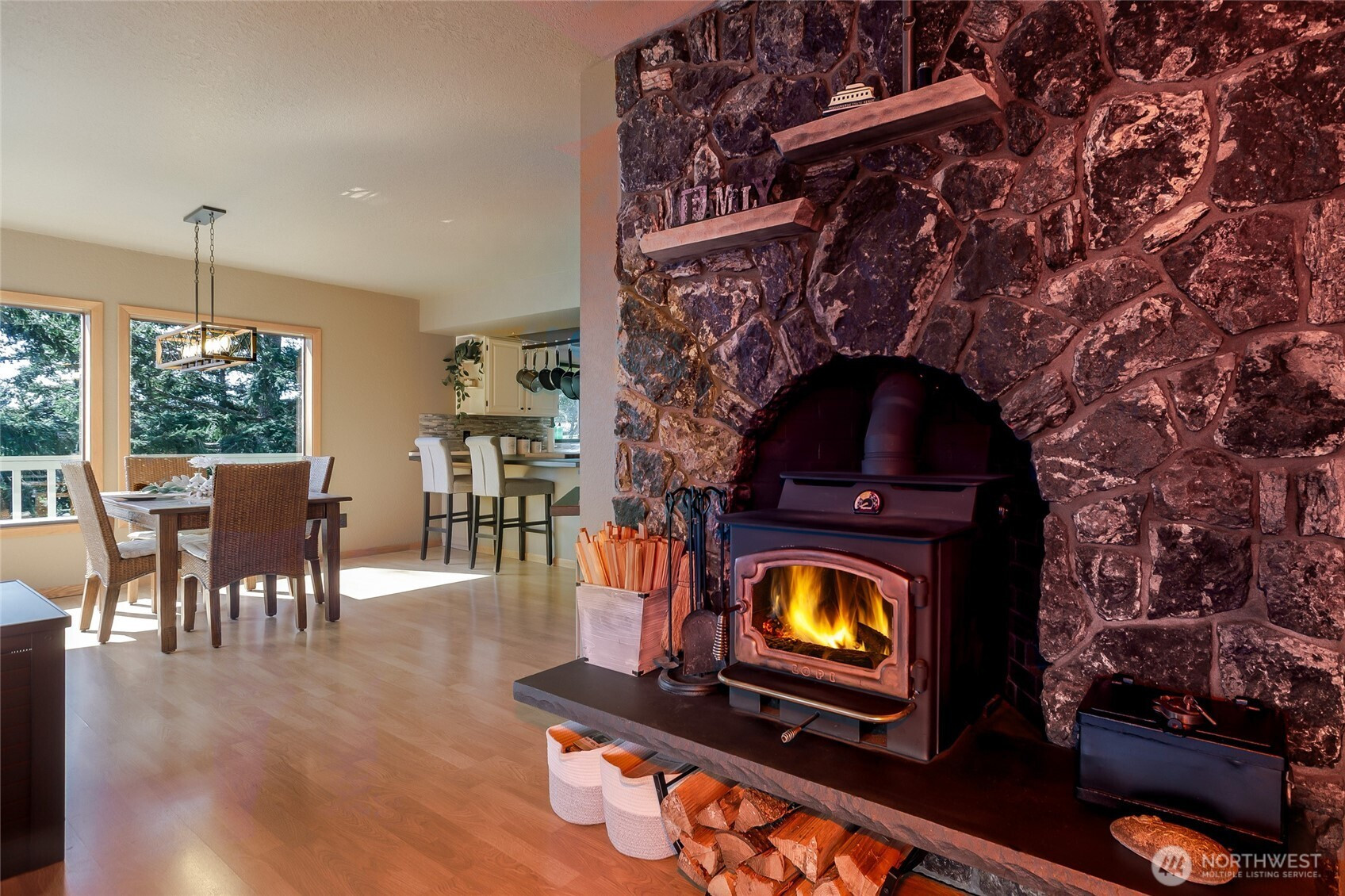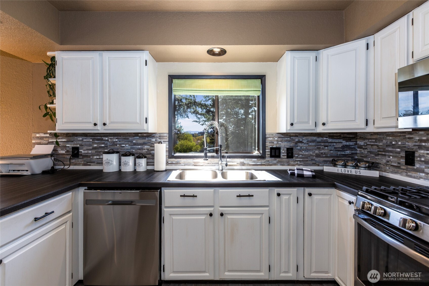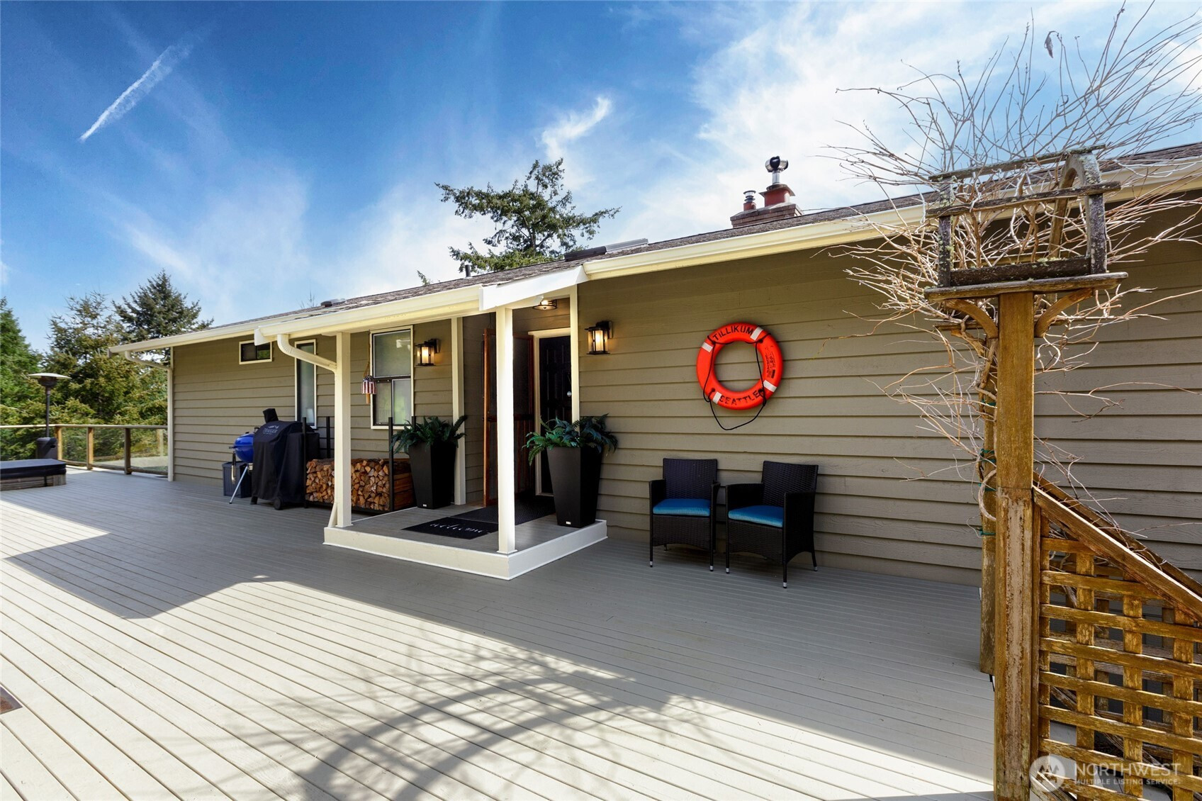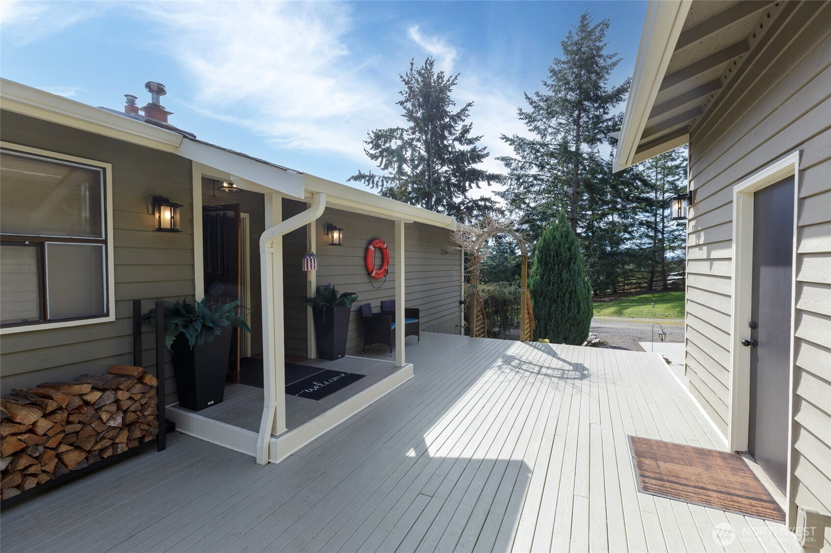Immaculate and spacious, this inviting home offers the perfect blend of comfort, privacy, and partial views of the Straits, sun-washed valleys, and glowing sunrises. Designed for both everyday living and entertaining, the updated kitchen features a propane cooktop, stainless steel appliances, and generous storage—ideal for gatherings large and small. The thoughtfully designed 3-bedroom, 3-bath layout supports easy main-floor living, while the lower level provides flexible space with an additional bedroom, bath, and large great room—perfect for guests, hobbies, or media room potential. Sun-drenched decks extend the living space outdoors, creating the perfect setting for morning coffee, evening dinners, or unwinding in the hot tub. Set on 1.7 acres, the property includes a fenced garden area, fruit trees, raised beds, firepit, and a charming historic bunkhouse that adds character and versatility. This is a home where you can relax, entertain, and fully embrace the island lifestyle. By appt.