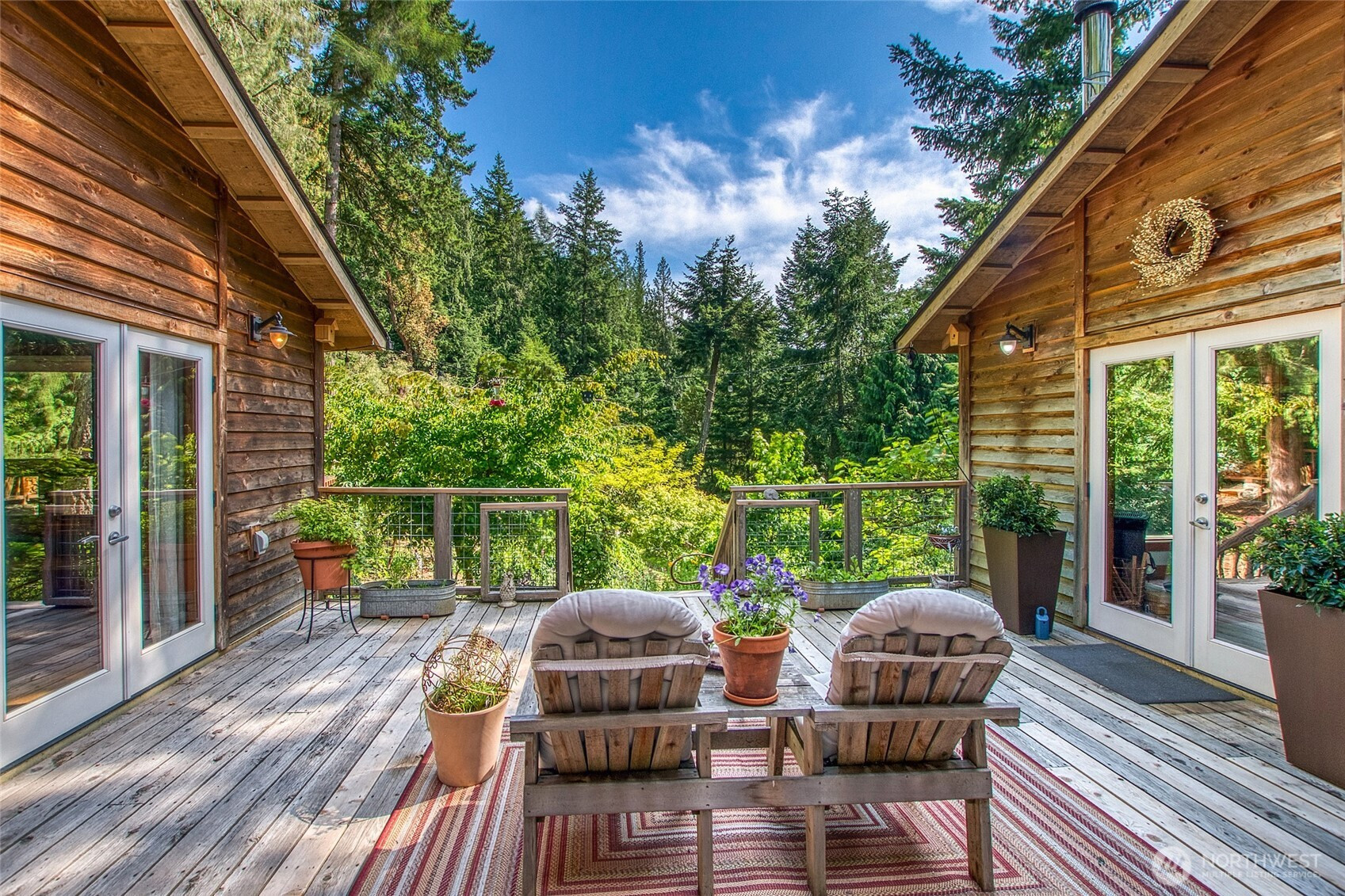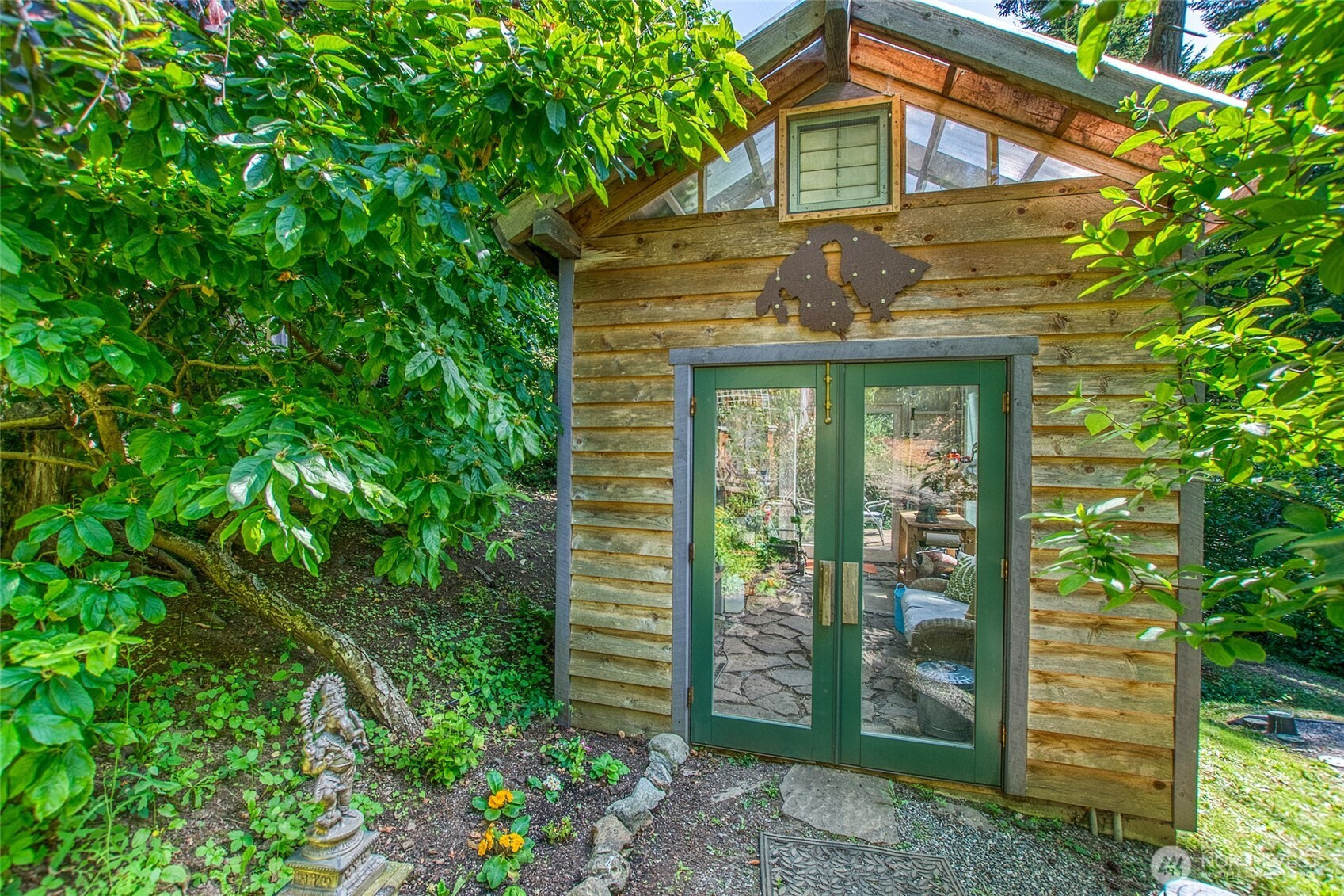 (503) 893-8874Warm & inviting custom 2 bedroom, 1.5 bath home minutes from Eastsound, but worlds away in solitude. This well-crafted home & grounds sit in a 1.45 acre canyon of forest & sunlight. Renovated kitchen w/quartz counters, center island w/induction cooktop, Thermador appliances & ample storage. Primary bath w/soaking tub, rain shower & custom cabinets. Light-filled home has warm southern-pine floors, crafted wood finishes, vintage doors, built-in rosewood window seat. Separate artist studio. Plantings flourish on this sunny deer fenced property. Raised & rock-terraced vegetable & herb beds, heirloom roses, perennial flowers, fruit trees & grape arbor. Hand-built greenhouse w/stone floor & power. Hot tub w/covered pergola.Vacation Rental permit.
