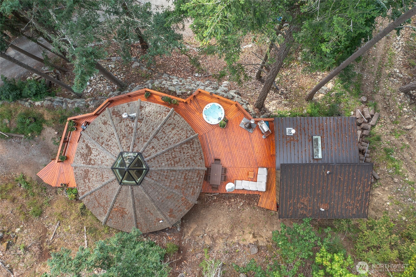 Turtleback Mountain Retreat. Adjoins Turtleback Preserve with nearly 2,000 ft of common boundary and easy access to hiking trails. Views over Crow Valley with glorious sunrises. Separate office and garden in lower area, house, bunk house, and large deck on upper driveway with fantastic views. This 21.77-acre property has two water systems and much of the property has underground utilities available for additional improvements including the garden, lower lot and main house site. With end-of-road privacy, several rocky view knolls, incredible views to the northeast and south, this is a nature lover’s paradise.