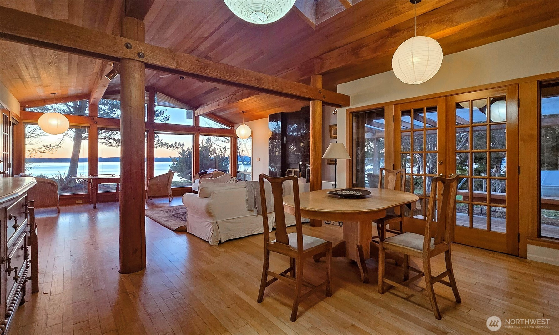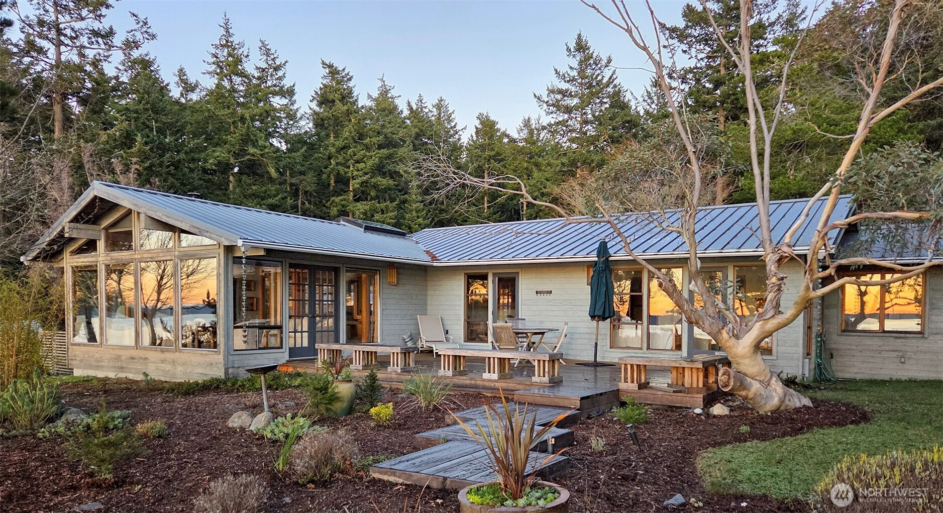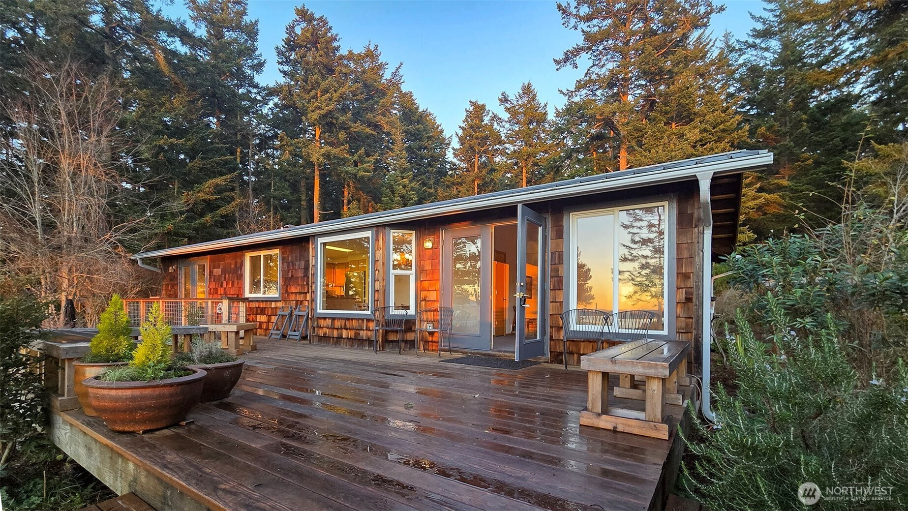Sweeping 180 Degree views across San Juan Channel, Strait of Juan de Fuca, Cattle Point Lighthouse and the Olympic Mtns from this private 9.32 acres on beautiful Lopez Island. Architect designed home with lots of custom touches, light and bright great room with walls of windows to take in the amazing views and vibrant sunsets. Spacious 1168 sq ft guest house with two large bedrooms, dining room, living room and 2 baths. Plenty of room for everyone. Trail to sandy walking beach, watch the seals play and keep an eye out for passing whales!