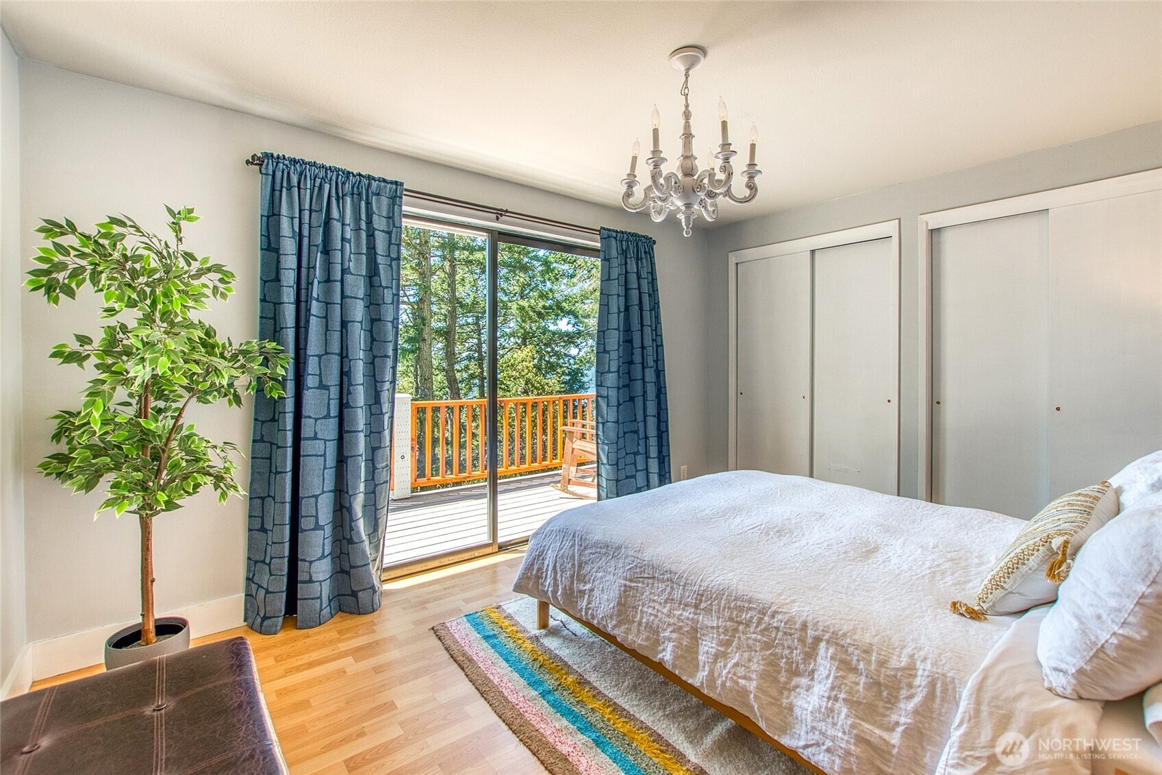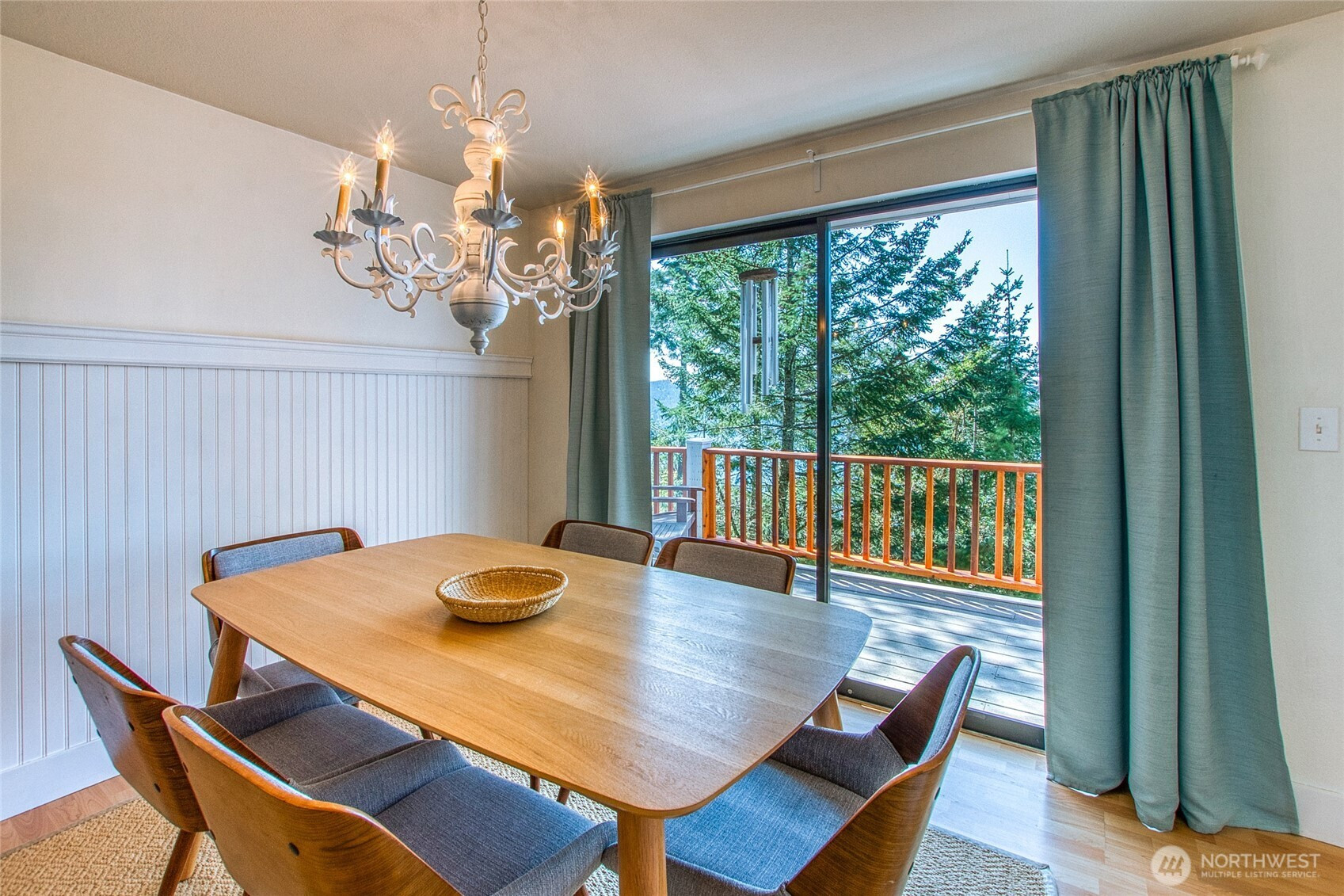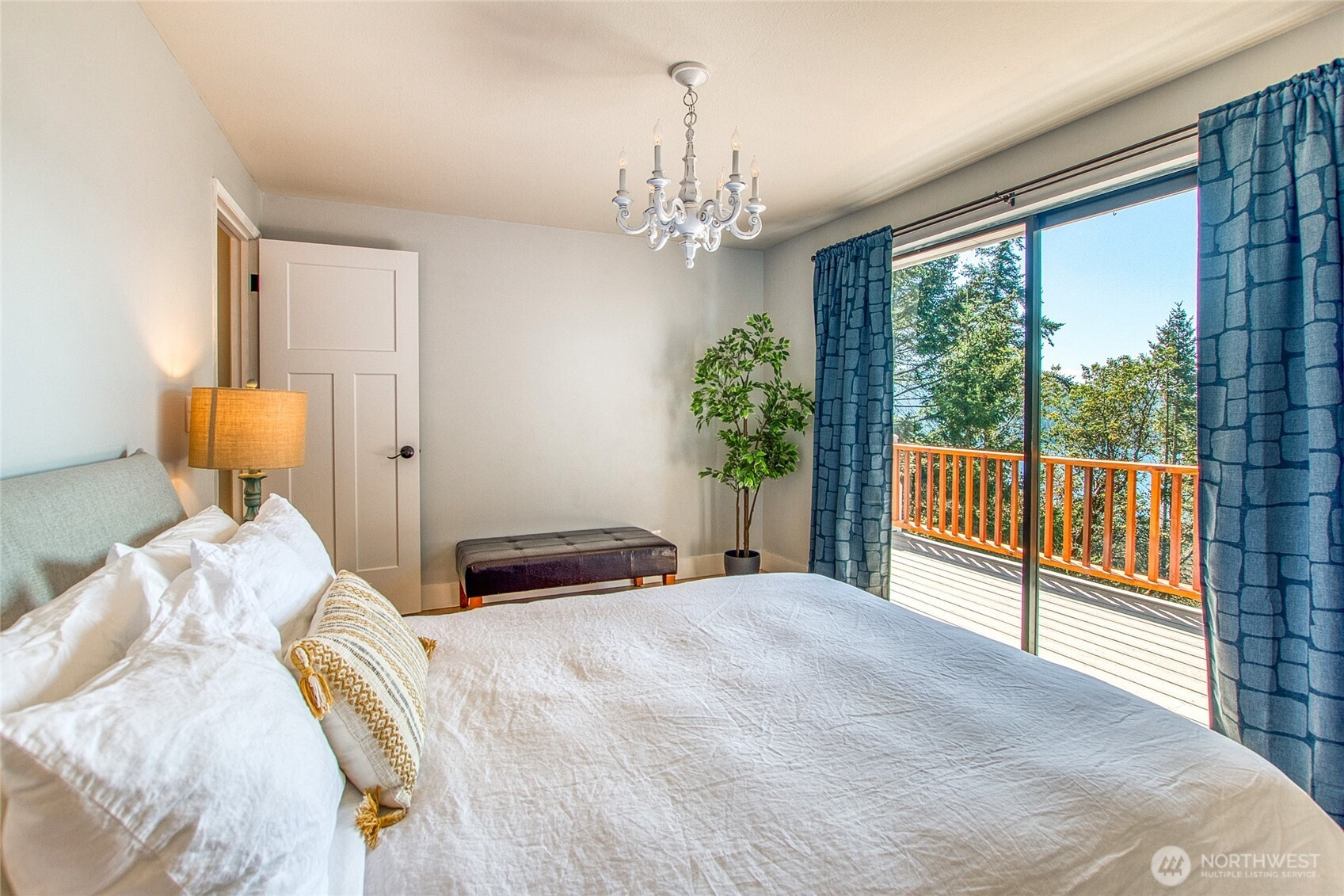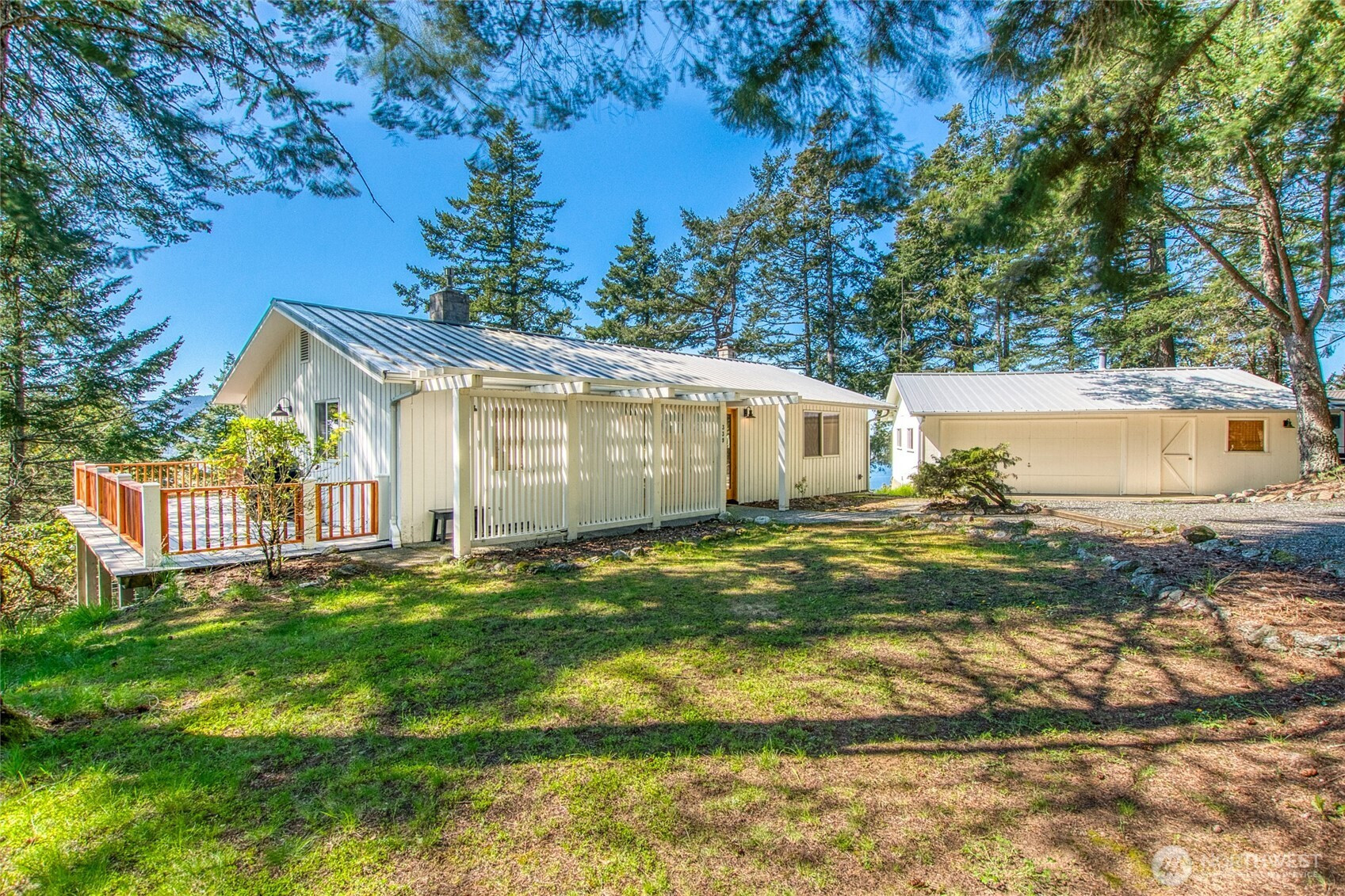 Enjoy sunsets over Eastsound and water views beyond from this stylishly updated home just 5 minutes to Moran Park. This Airbnb “guest favorite" invites effortless living year-round with its large circular drive, easy level entry, oversized 800 sq.ft. garage & shop, low-maintenance yard and many recent upgrades including: central heat/cooling, propane fireplace, new septic, 200-amp service, metal roof, gutters, exterior paint, new deck rail, front doors, remodeled bath and new flooring. A timeless floorplan gives you 2 beds/1 bath and living area on main floor plus a lower level w/ bedroom, private bath, utility room & flexible bonus room. Move-in ready + a peaceful setting close to lakes, trails, and local cafes = A real gem... Come see!