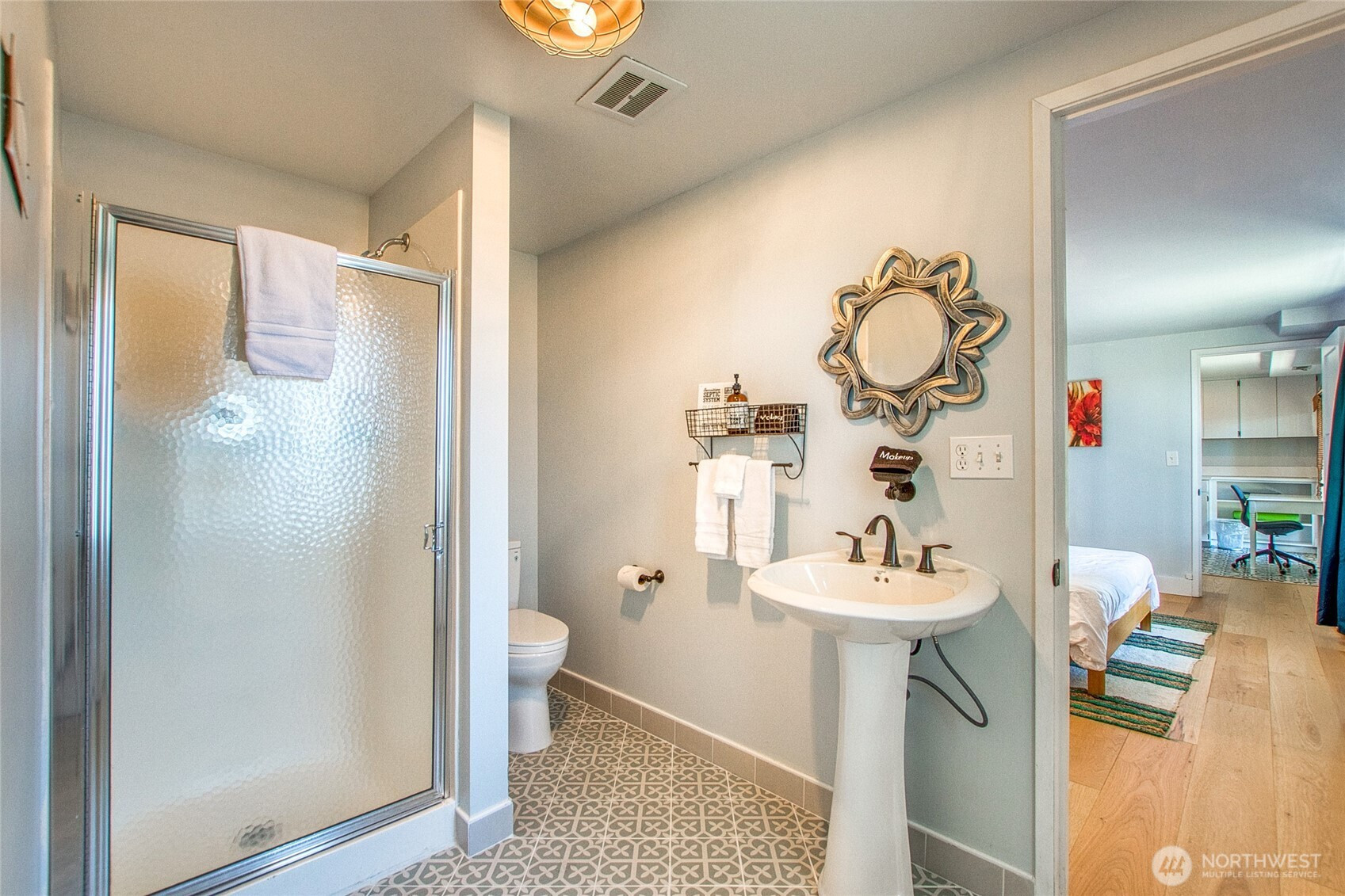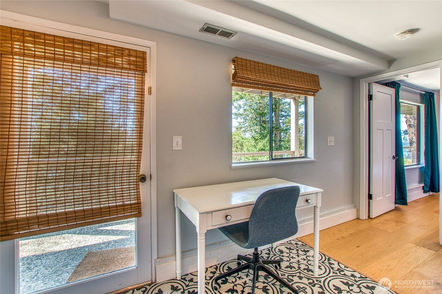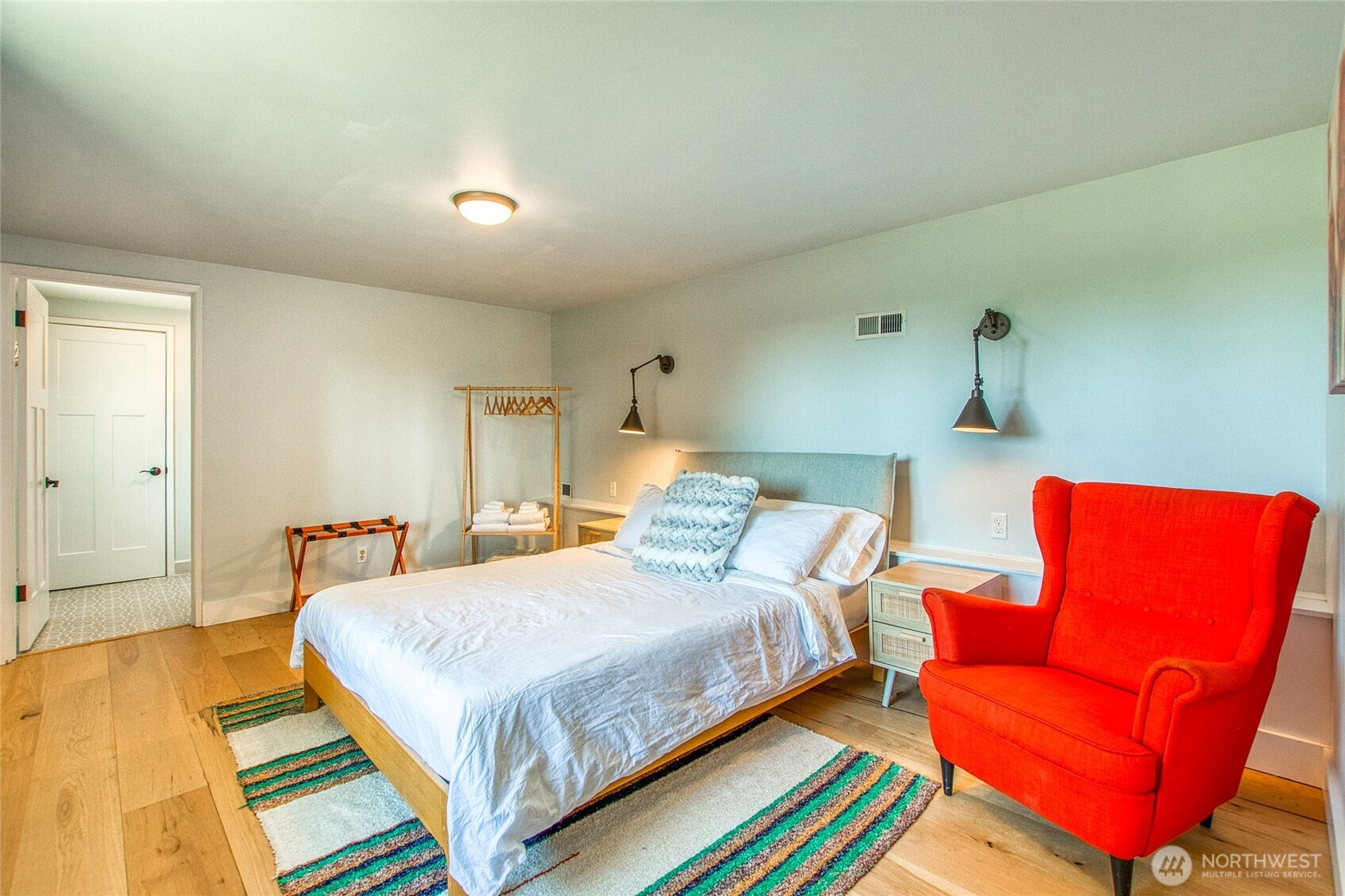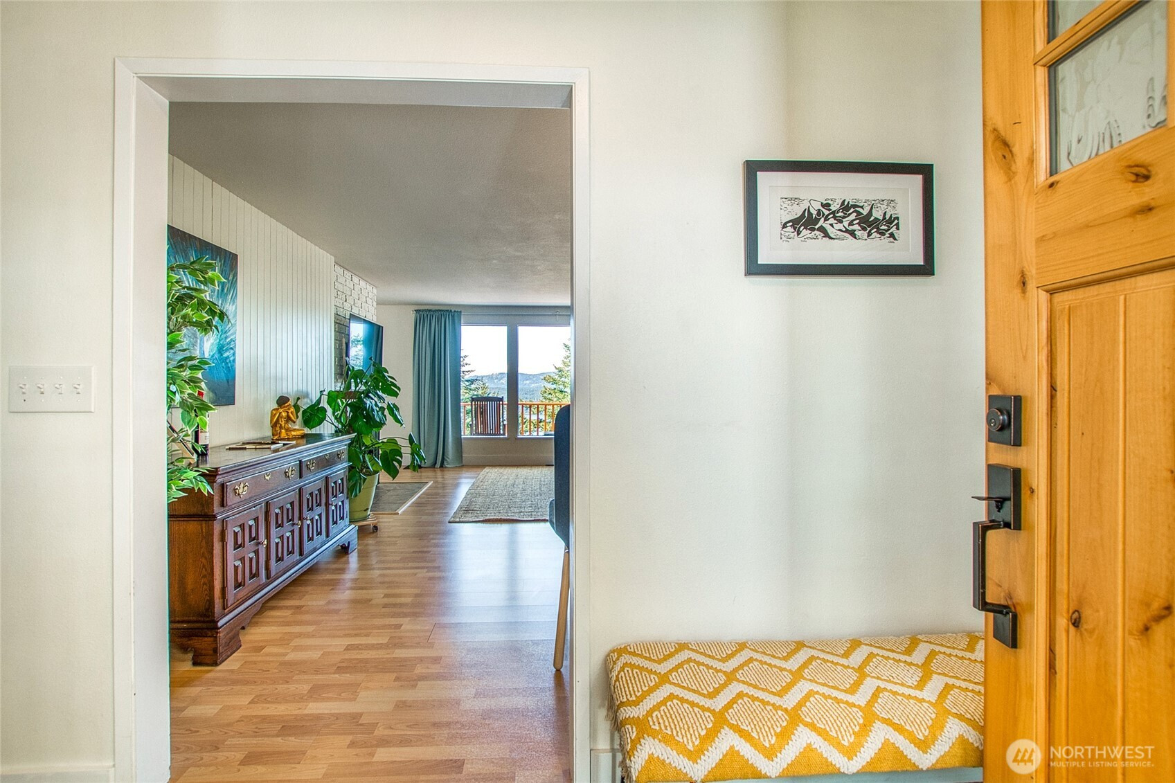 Enjoy sunsets over Eastsound and water views beyond from this stylishly updated home just 5 minutes to Moran Park. This Airbnb “guest favorite" invites effortless living year-round with its large circular drive, easy level entry, oversized 800 sq.ft. garage & shop, low-maintenance yard and many recent upgrades including: central heat/cooling, propane fireplace, new septic, 200-amp service, metal roof, gutters, exterior paint, new deck rail, front doors, remodeled bath and new flooring. A timeless floorplan gives you 2 beds/1 bath and living area on main floor plus a lower level w/ bedroom, private bath, utility room & flexible bonus room. Move-in ready + a peaceful setting close to lakes, trails, and local cafes = A real gem... Come see!