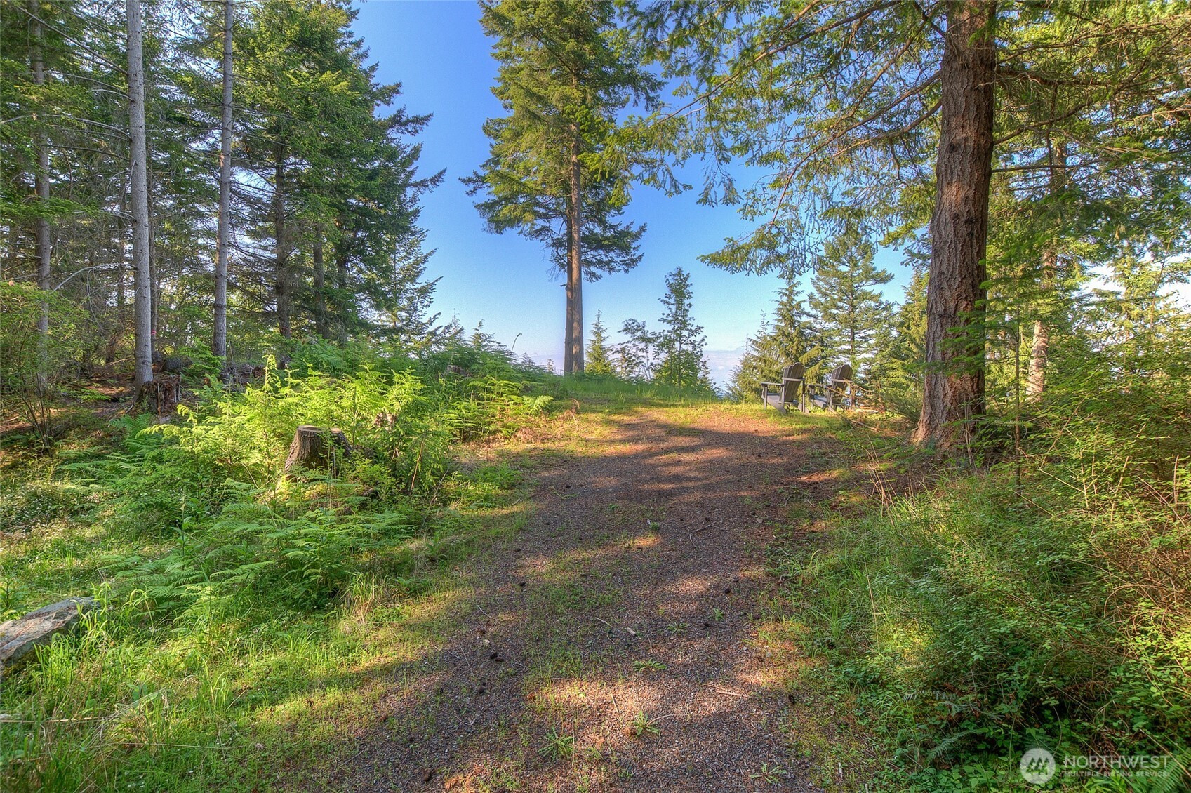 Lot 41 in Eagle Lake sits atop a knoll, surrounded by firs and alders, with stunning views across Rosario Strait to Barnes, Clark, Lummi, Bellingham, and the Cascades. Center of 100' building circle marked. 2022 site plan, geotech report, and wetland analysis completed. Water, power, and fiber at road by driveway. Community septic drainfield available—tank-only design required. Eagle Lake amenities include 290+ acres of trails, a pristine lake for swimming, fishing, and paddleboarding, ocean access, a clubhouse, a garden, and more. Temporary camping allowed, with laundry and shower facilities available at the clubhouse. Custom cedar storage shed included. A perfect sanctuary to unwind and reconnect with nature. Seller financing available.