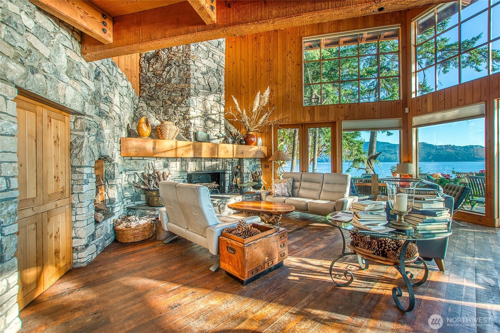 Absolutely stunning 28-acre waterfront estate on picturesque Orcas Island. This luxury property combines complete privacy & incredible natural beauty across two waterfront tax parcels with a beautiful main home, separate guesthouse, your own 65-foot protected deepwater dock, two private beaches and a brilliant waterfront pavilion with kitchen, wet bar & fireplace. The masterfully designed main residence features 2 bds & 2 baths and a massive deck all directly on the Salish Sea. Tucked near one of your beaches find the 1-bed, 1-bath guesthouse with full kitchen & fireplace. A large garage & bunkhouse sit above main home while the park-like grounds include a fenced garden, greenhouse and meandering trails along the shoreline.