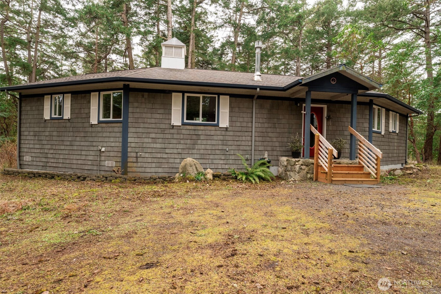 Nestled in the trees, in the community of Cape San Juan, sits this well-designed single level, 1,264 square foot home built in 2001. With vaulted ceilings, the kitchen, living room with cozy propane fireplace, and dining area are central to the open floorplan. The two bedrooms, each with ensuite baths, are thoughtfully placed on either side of the great room. Large picture windows and French doors look out to the natural landscaping, which is partially fenced and offers a peaceful area to relax and gather. This home benefits by end of the road privacy and is conveniently located near the Cape San Juan Pool, Clubhouse and fire station. Many know and appreciate the Cape area as being rich with possibilities for enjoying the outdoors: hiking trails and opportunities for wildlife viewing - deer, racoons, fox, bald eagles abound at American Camp National Park, Mt. Finlayson, and Cattle Point Natural Conservation Resource Area. In addition, the nearby Cape San Juan Community sand and pebble beach offers views of San Juan Channel, and Goose Island with potential sightings of whales, seals or bald eagles. The Cape San Juan Marina has protected long term moorage for Cape residents, assigned on a wait list basis, with seasonal guest spaces available October-April. This home is move-in ready and awaiting your special touch to make it your own.