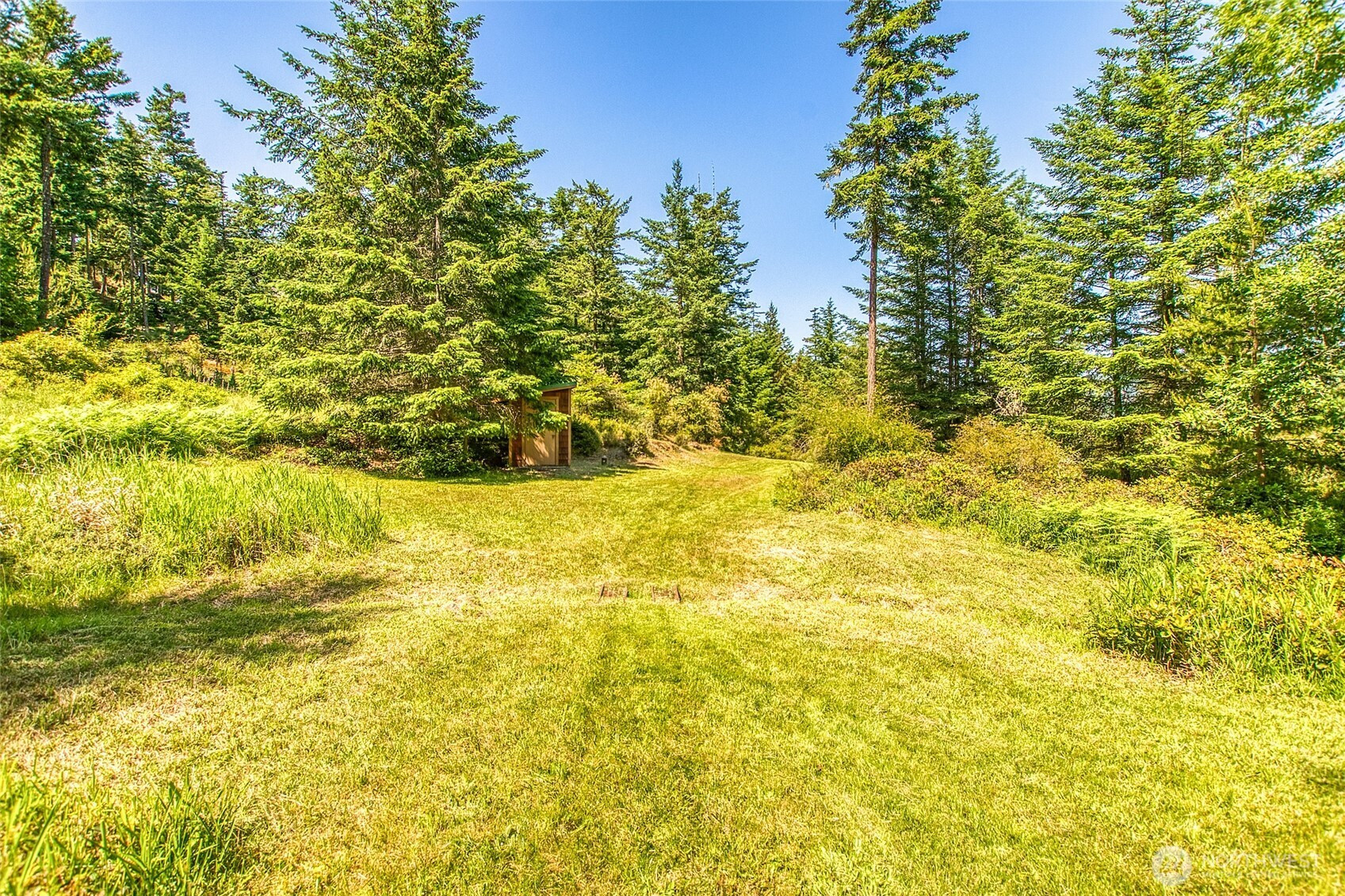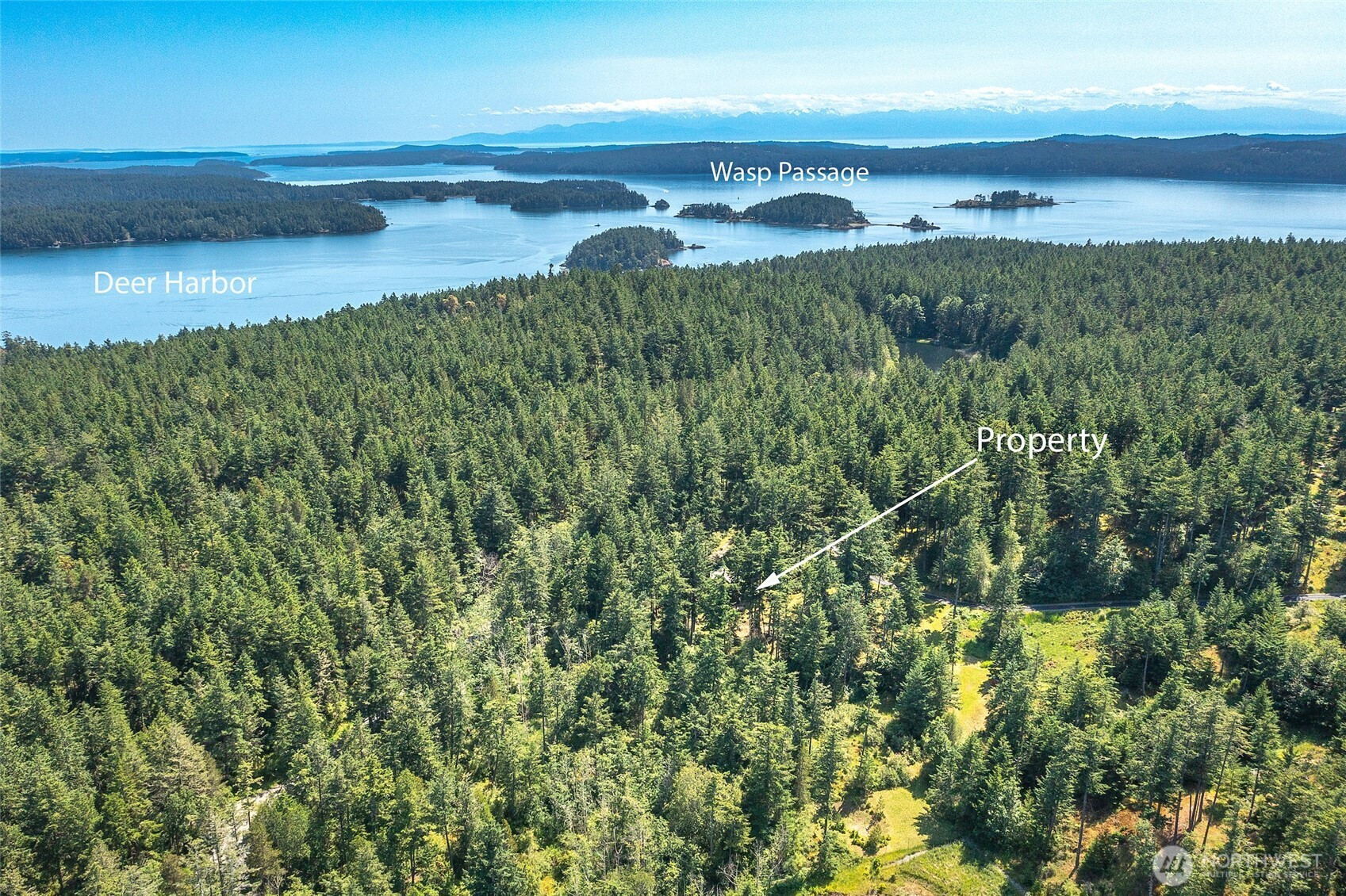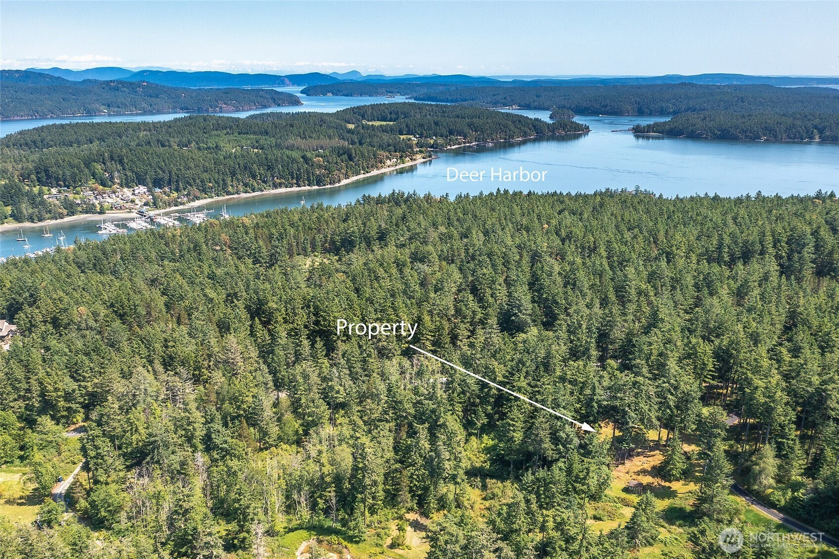 PRIME DEER HARBOR ACREAGE WITH CARRIAGE HOUSE Private, mostly level 3.38± acre parcel in the desirable Suncrest neighborhood offering an exceptional opportunity to build a larger home while enjoying the sweet carriage house. With selective tree trimming, a future residence could capture views toward Turtleback Mountain. Infrastructure is already in place, including a 3-bedroom septic system, fiber optic internet, driveway, and utilities, making this an ideal build-ready site. A well-maintained Craftsman-style carriage house allows for comfortable living during construction, featuring 506± sq ft upper-level open living space with full bath, covered deck, and attic storage. The lower level includes radiant-heated finished space with half bath and a 552± sq ft area currently used as living space that can easily be restored to a true 2-car garage. Recent upgrades in upper level include: flooring and trim, closet and built-in bedroom dresser, kitchen, bathroom vanity. Downstairs upgrades include: bathroom vanity, floor paint, new washer/dryer. New interior/exterior paint throughout. Lightly treed grounds offer garden space and multiple potential building areas. Conveniently located near Deer Harbor and Cayou Quay marinas.