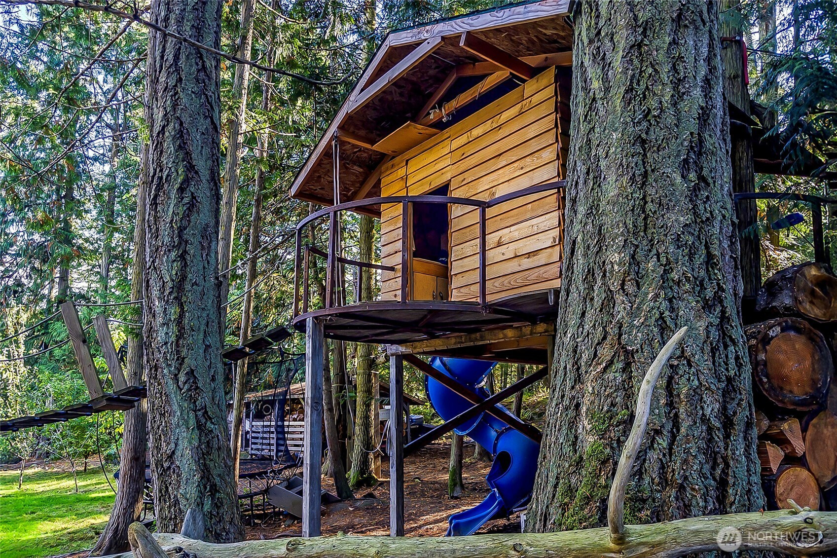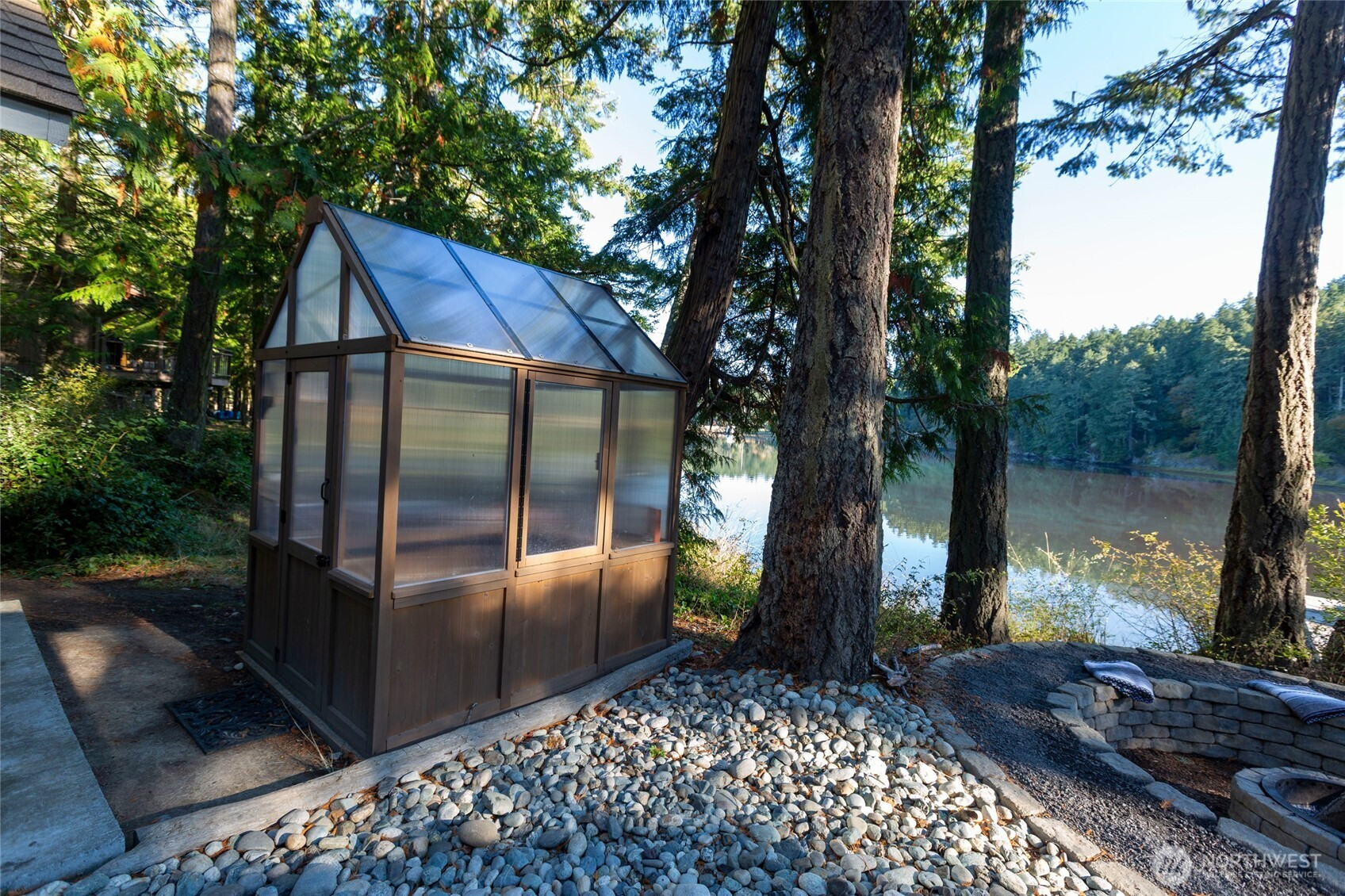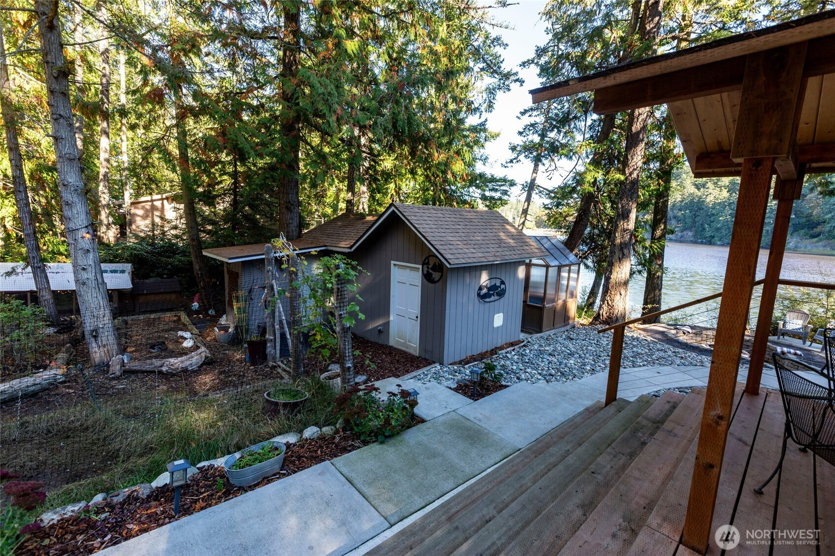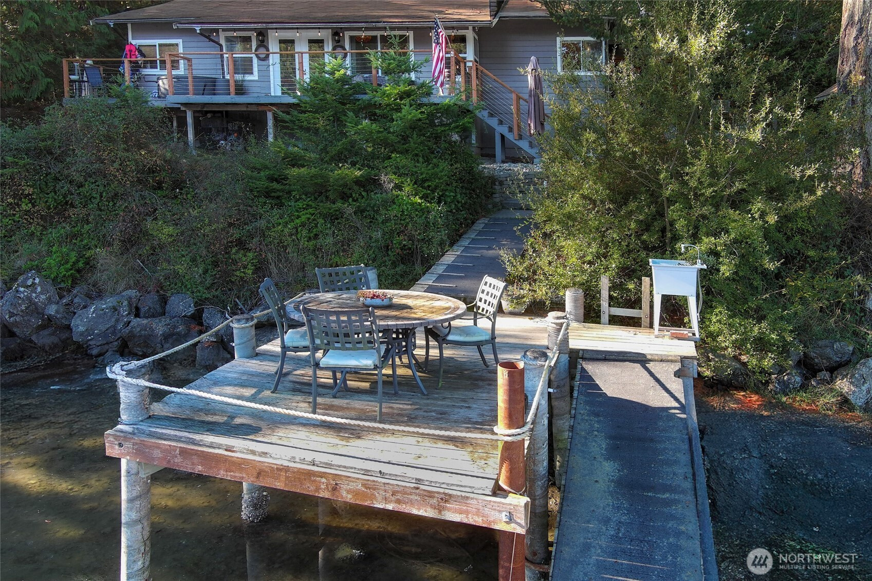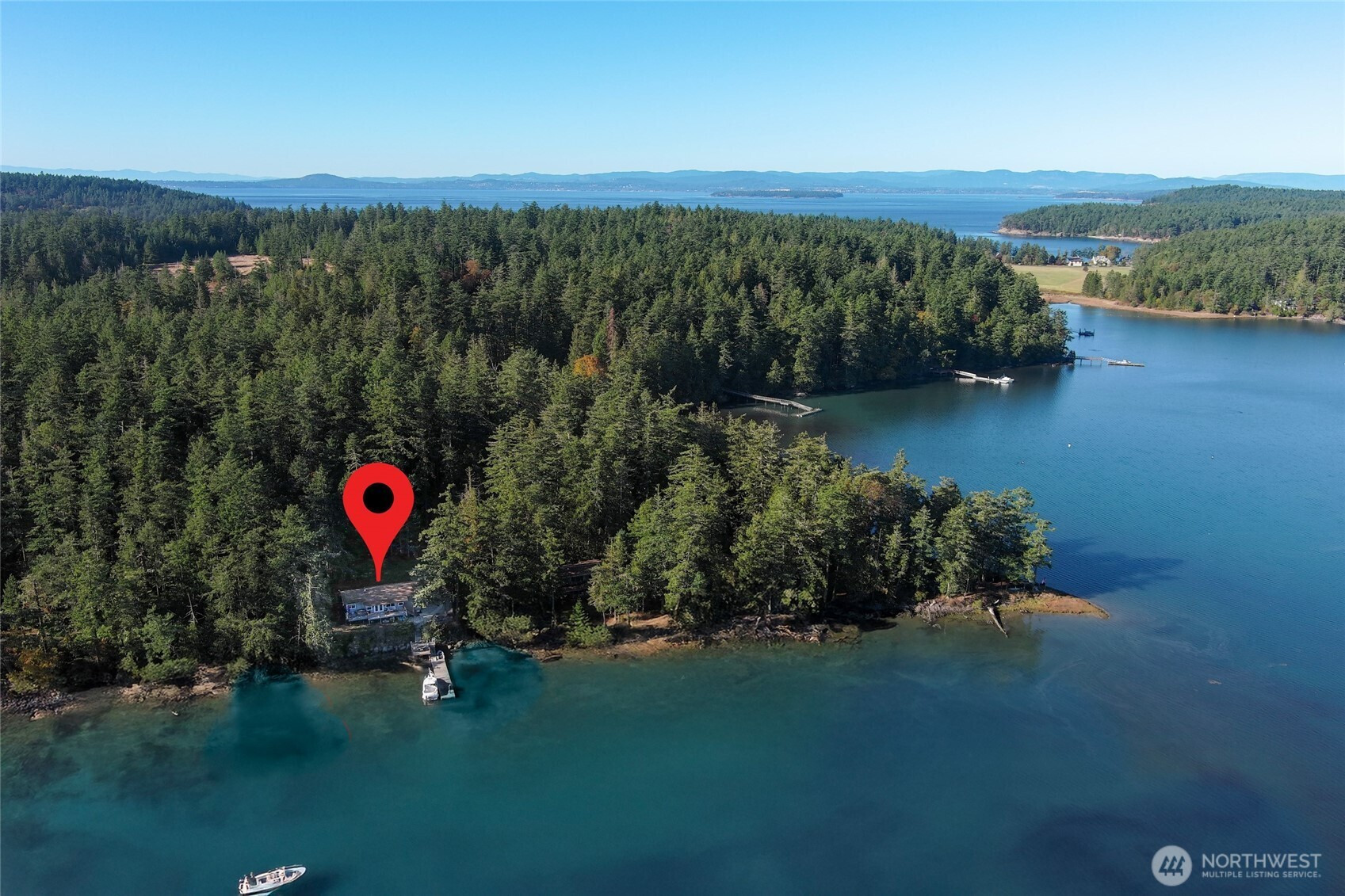 Beautifully remodeled waterfront retreat on Garrison Bay! This 1,248 sq ft home offers 2 bedrooms, 2 baths, and an office, on a private .75-acre lot with ~130 ft of low-bank water frontage with tideland rights. Enjoy your own inner harbor private dock, a sunken firepit with plenty of seating, and a deck perfect for enjoying views of the bay and English Camp. This property also features a charming detached guest quarters with a murphy bed, a greenhouse, fruit trees, chicken coop, pump house, RV parking with power hookup, and an amazing treehouse among the tall cedars. Perfect for year-round living or a peaceful island getaway surrounded by nature and bay views.