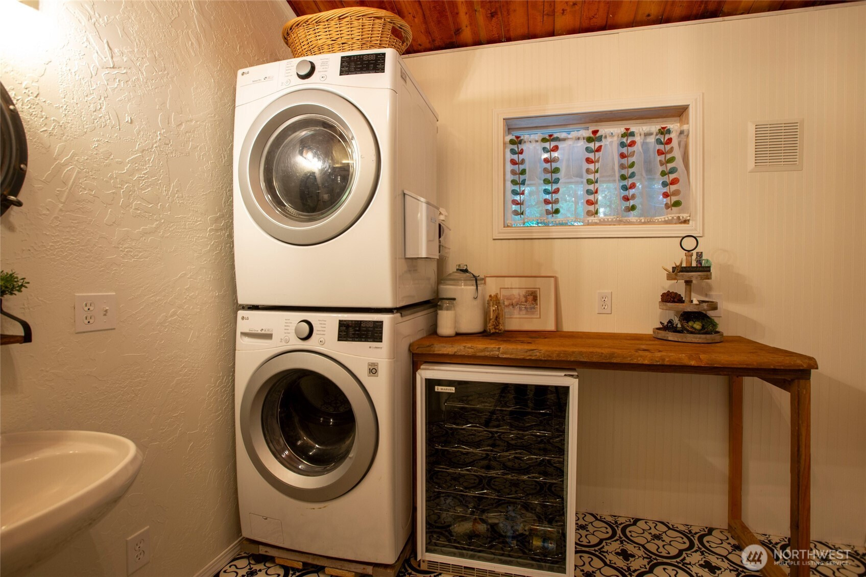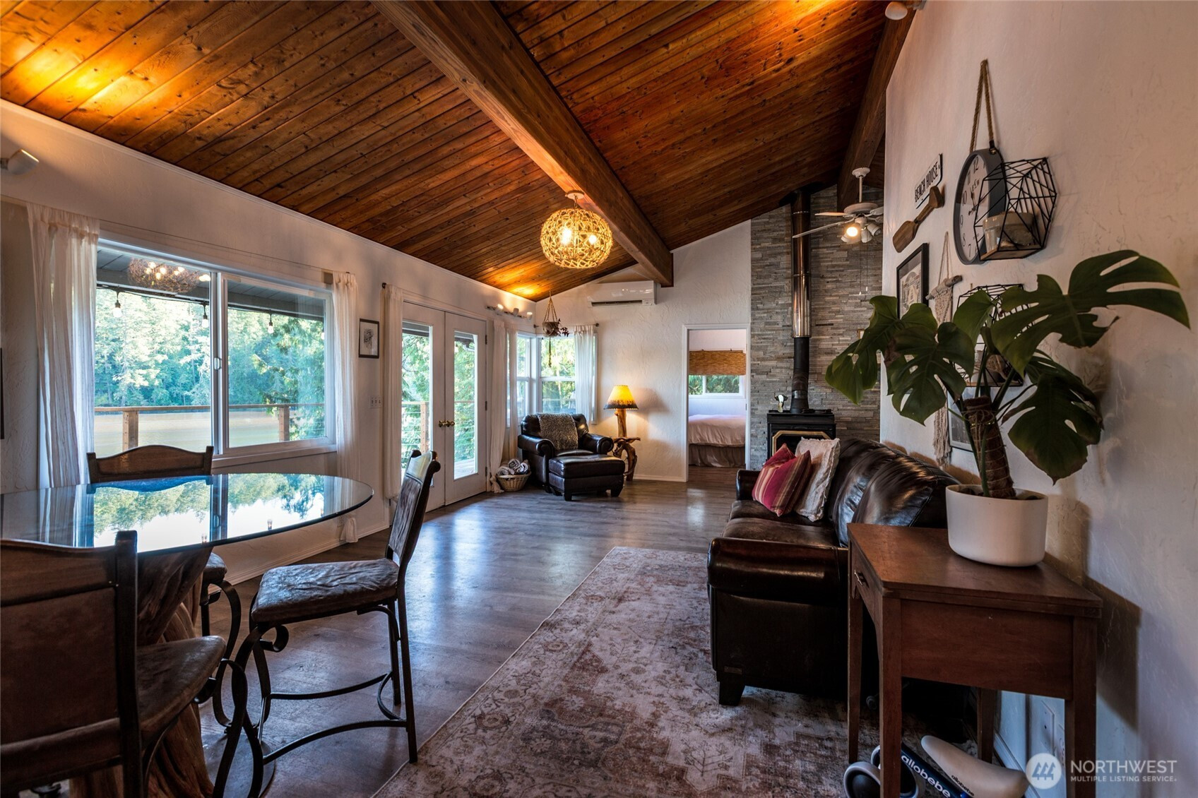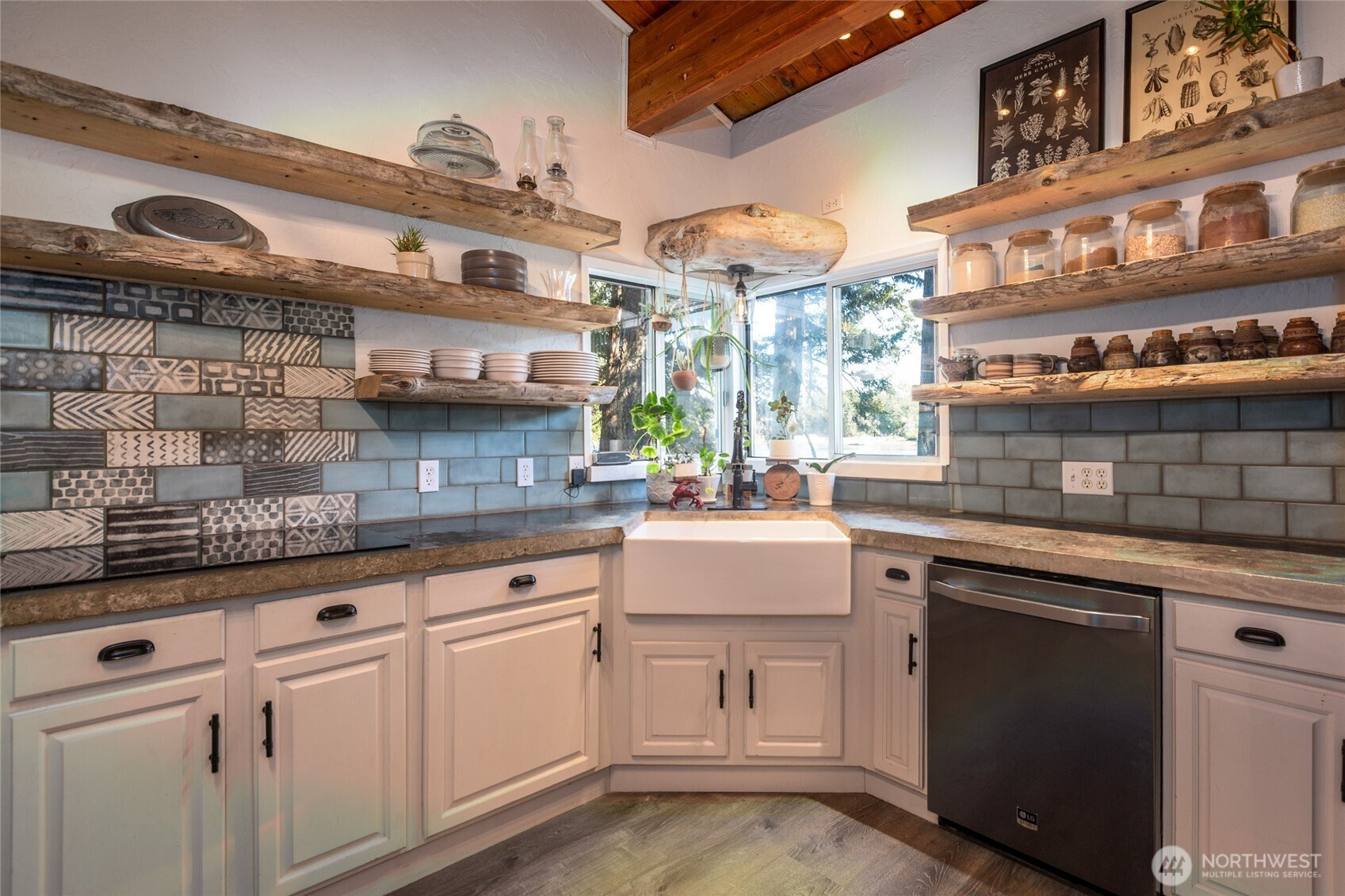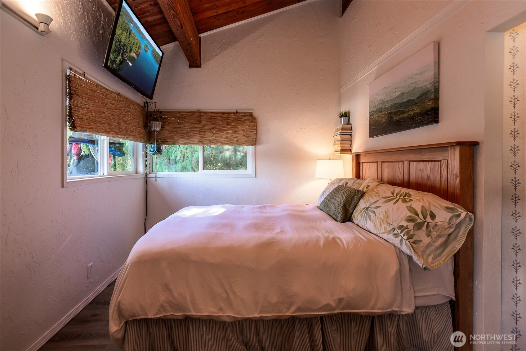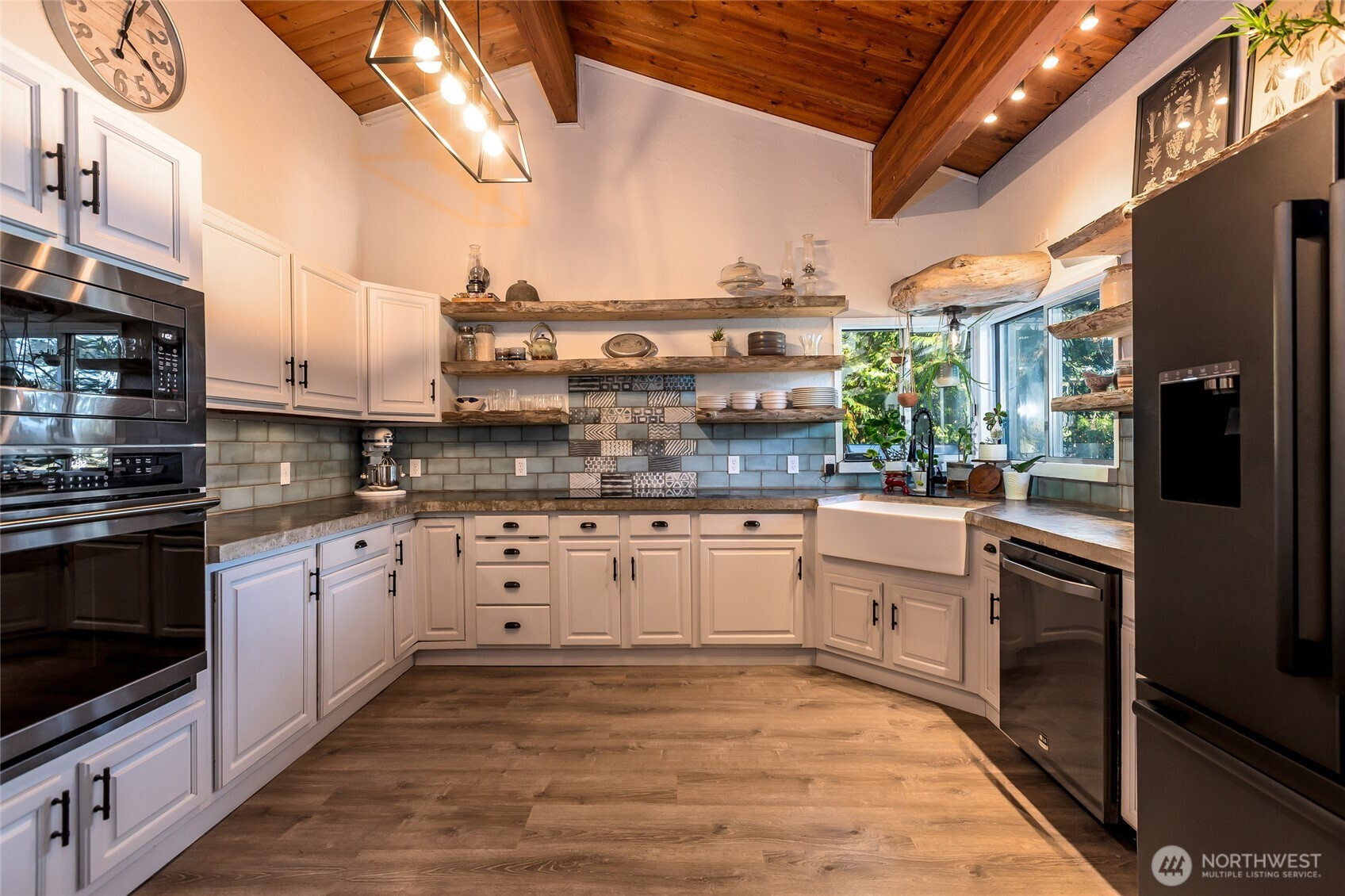Beautifully remodeled waterfront retreat on Garrison Bay! This 1,248 sq ft home offers 2 bedrooms, 2 baths, and an office, on a private .75-acre lot with ~130 ft of low-bank water frontage with tideland rights. Enjoy your own inner harbor private dock, a sunken firepit with plenty of seating, and a deck perfect for enjoying views of the bay and English Camp. This property also features a charming detached guest quarters with a murphy bed, a greenhouse, fruit trees, chicken coop, pump house, RV parking with power hookup, and an amazing treehouse among the tall cedars. Perfect for year-round living or a peaceful island getaway surrounded by nature and bay views.