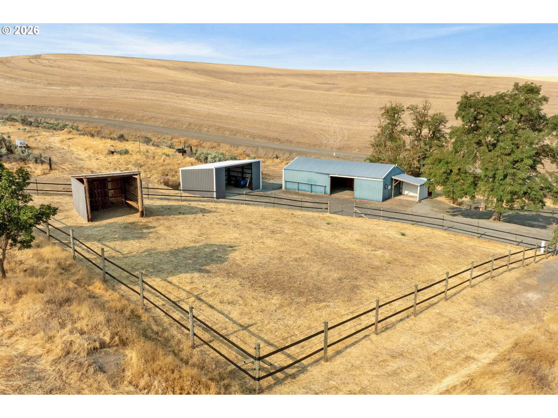 Equestrian and Agricultural Estate on 22+ Acres Near the Columbia River.Discover the perfect fusion of rural charm, equestrian facilities, and productive farmland on this expansive 22+ acre estate, just moments from where the Deschutes River meets the Columbia River—an outdoor enthusiast's paradise for fishing, hiking, and recreation. This inviting single-level home features three bedrooms and three bathrooms, along with a full basement that harmonizes with the vast open landscape, providing comfort and connection to nature. Equestrian lovers will find ample amenities, including three-sided shelters and multiple riding arenas. The barn boasts a spacious tack room and flexible storage options, along with additional structures like a hay barn, pump house, and RV parking.The property features productive wheat fields, offering seasonal harvests and adding both beauty and utility to the landscape. The rolling acres of golden wheat create a picturesque backdrop while enhancing the property’s value. Additionally, there’s potential for a secondary homesite, perfect for expansion or guest accommodations. Whether you’re exploring nearby trails, enjoying riverside activities, or cultivating crops, this estate seamlessly blends functionality with lifestyle and natural beauty.With its proximity to the Deschutes and Columbia Rivers, along with various outdoor attractions, this property offers convenience while providing privacy and a sense of retreat. This rare estate is a unique opportunity, combining equestrian facilities, fertile farmland, open space, and development potential—ideal for those seeking a rural lifestyle rich with possibilities in the Columbia Gorge.