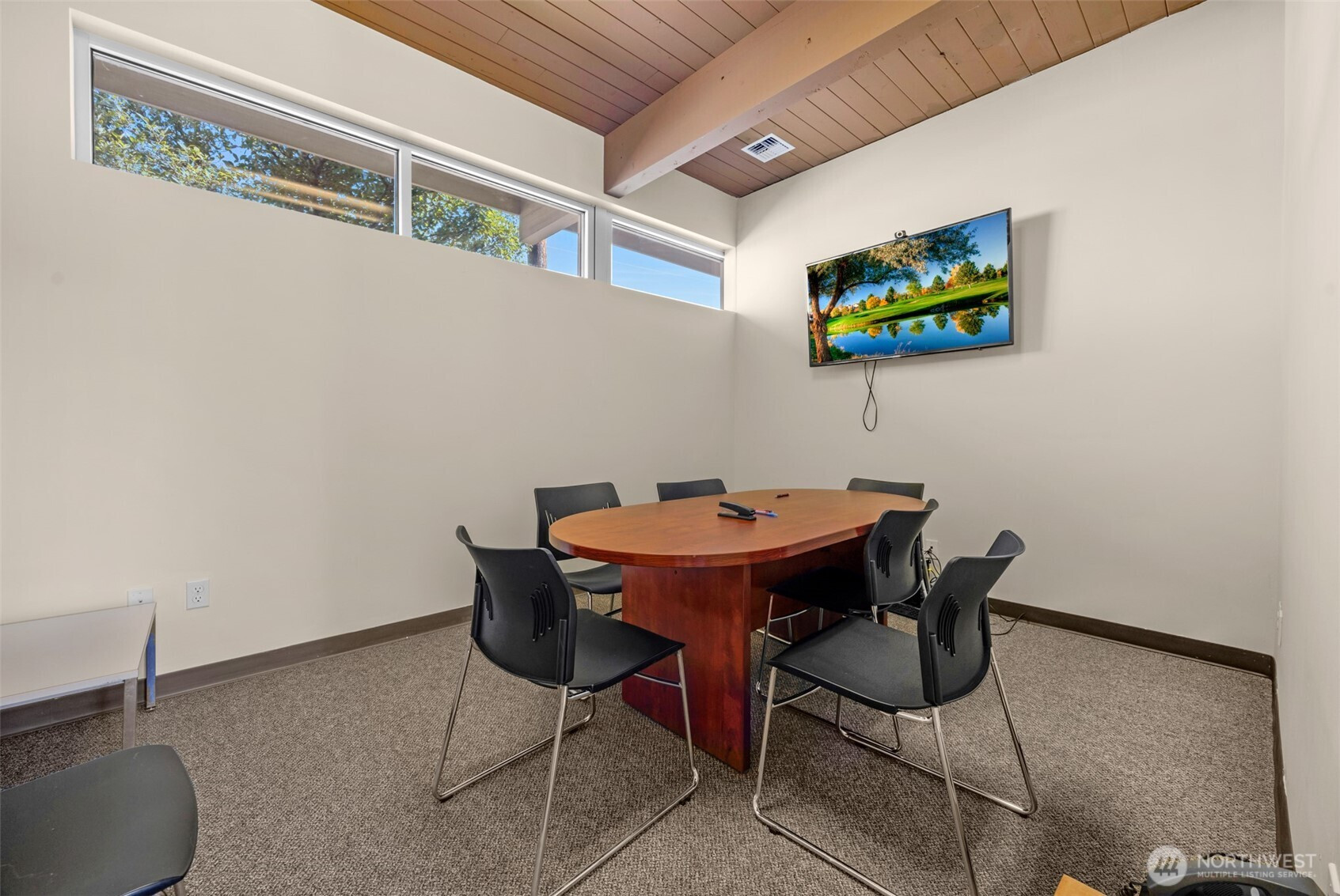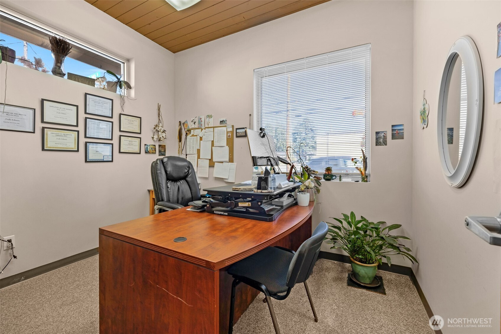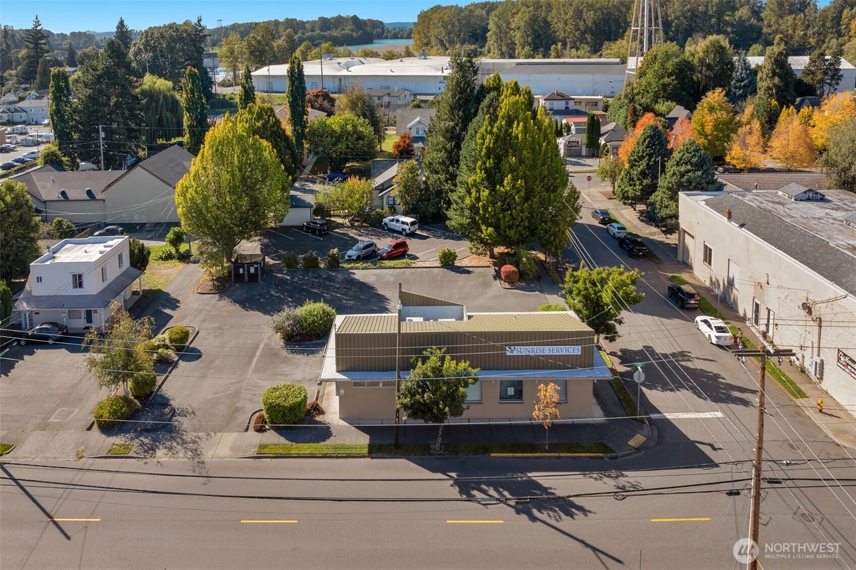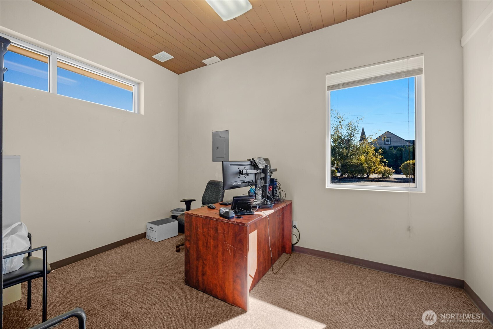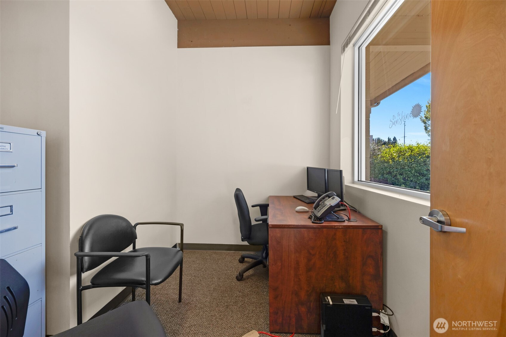 Two office spaces in one prime location! This low-maintenance, one-story building features 1,612 sq. ft, high ceilings, large windows & abundant natural light. Flexible zoning and a versatile layout make it ideal for a wide range of businesses—operate in one suite and rent the other. Currently divided into two units: Suite A offers an exterior entrance, 2 offices, a bathroom, conference room, storage, and shared kitchen. Suite B is larger with 2 exterior entrances, 3 offices, lobby, conference room, bathroom, storage, and shared kitchen. Located in DT Mount Vernon, it boasts 128 ft of street frontage, strong visibility, walkable amenities, a metal roof, A/C, and a large level parking lot with 3 access points. An incredible opportunity!