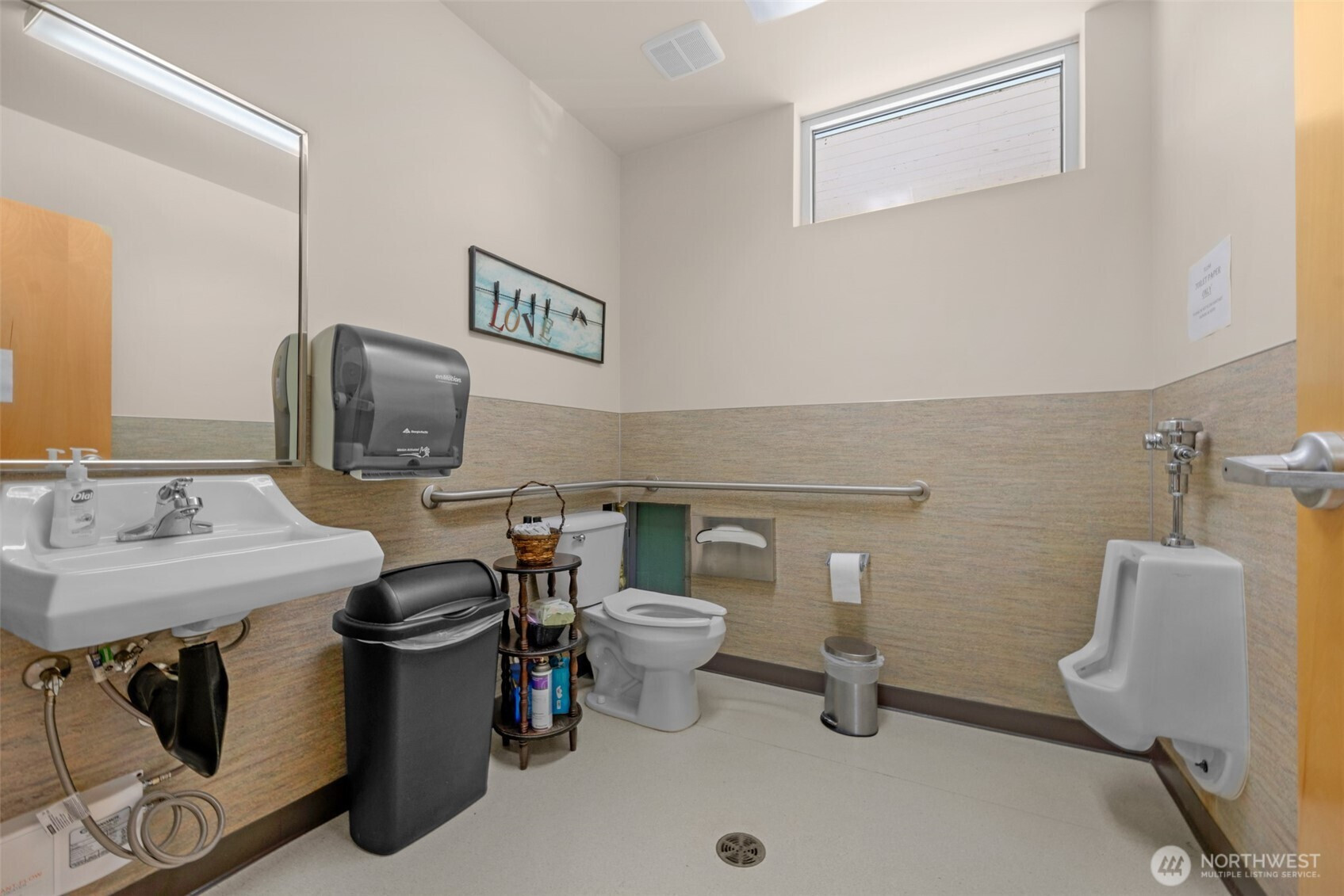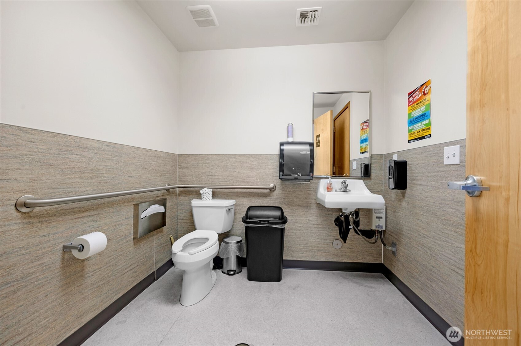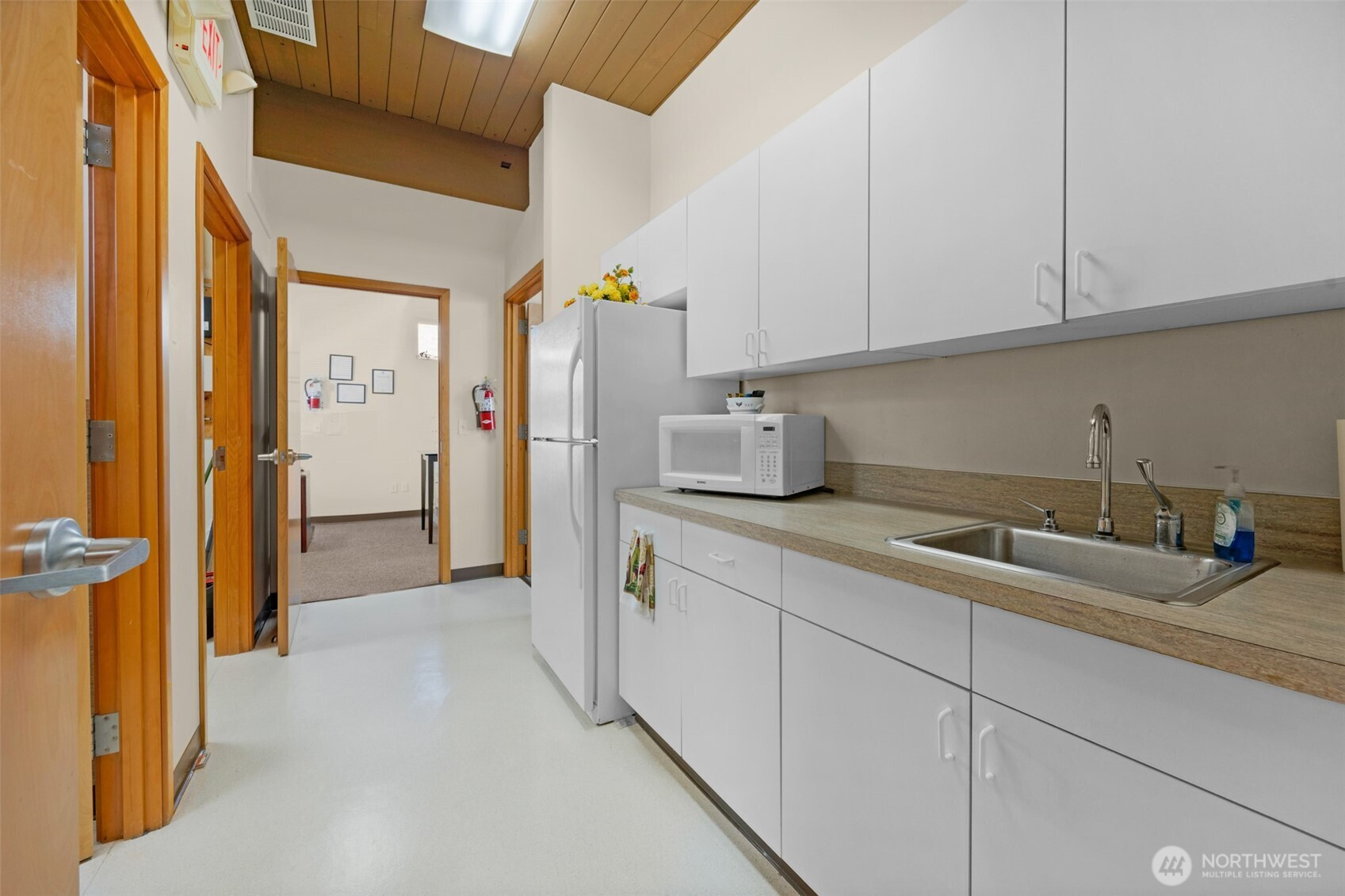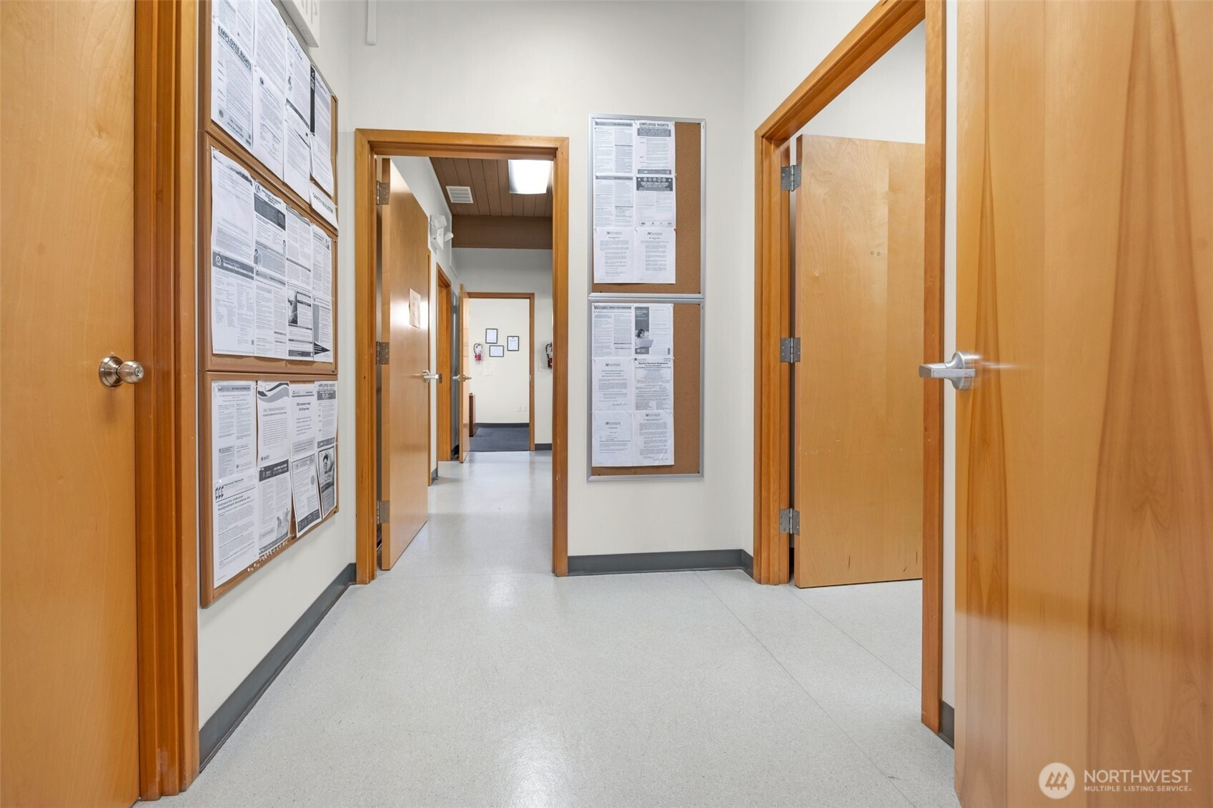 Two office spaces in one prime location! This low-maintenance, one-story building features 1,612 sq. ft, high ceilings, large windows & abundant natural light. Flexible zoning and a versatile layout make it ideal for a wide range of businesses—operate in one suite and rent the other. Currently divided into two units: Suite A offers an exterior entrance, 2 offices, a bathroom, conference room, storage, and shared kitchen. Suite B is larger with 2 exterior entrances, 3 offices, lobby, conference room, bathroom, storage, and shared kitchen. Located in DT Mount Vernon, it boasts 128 ft of street frontage, strong visibility, walkable amenities, a metal roof, A/C, and a large level parking lot with 3 access points. An incredible opportunity!