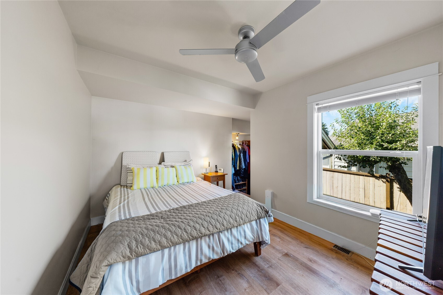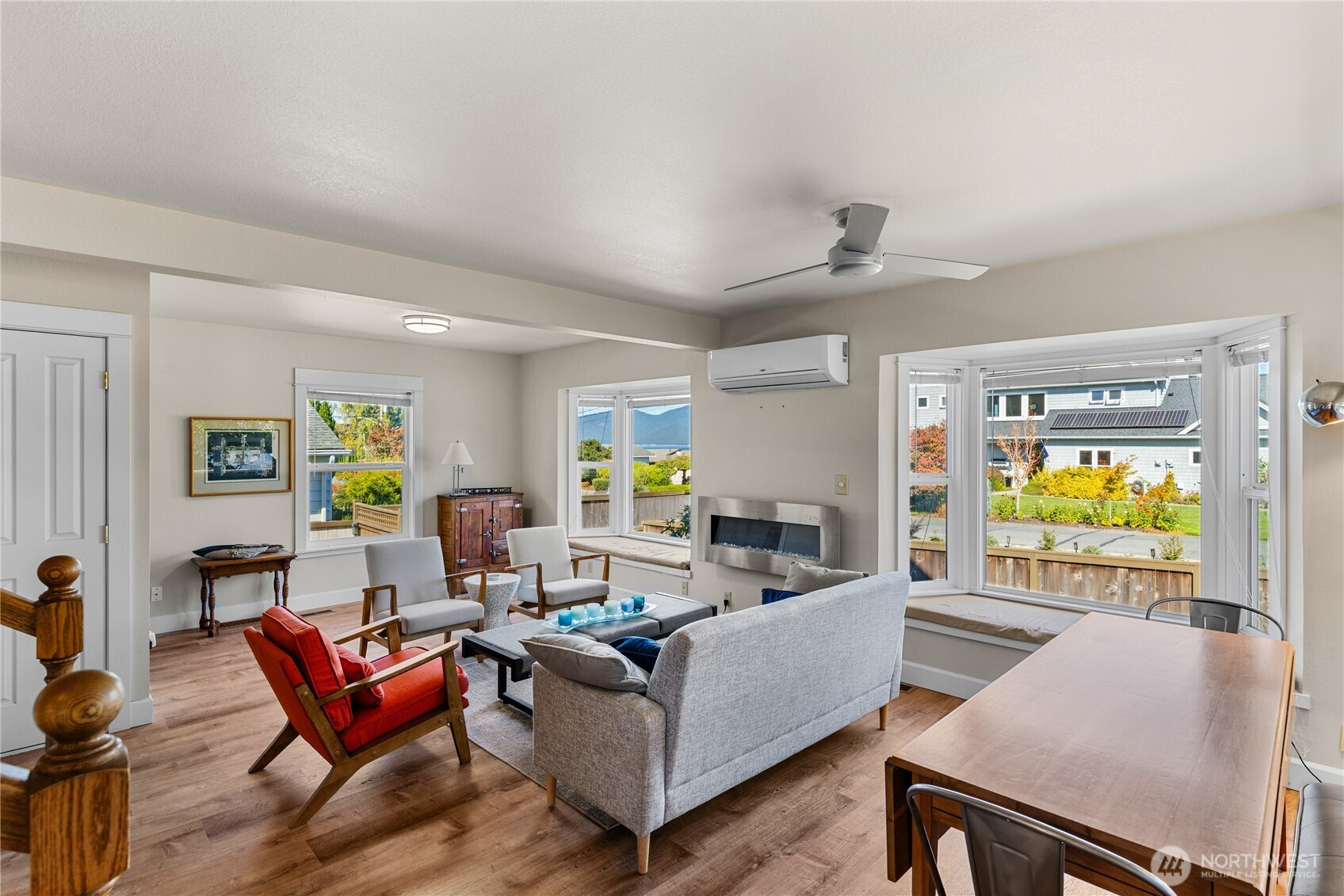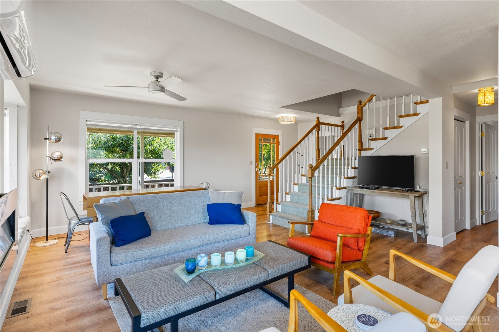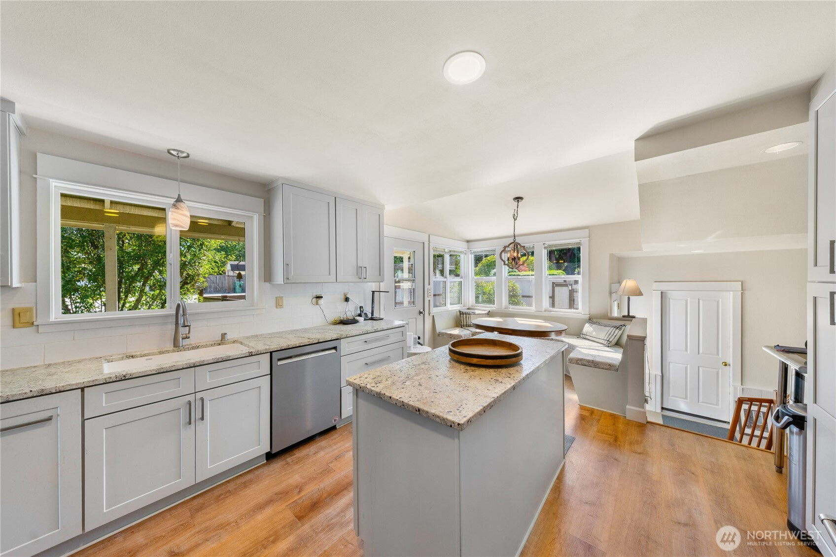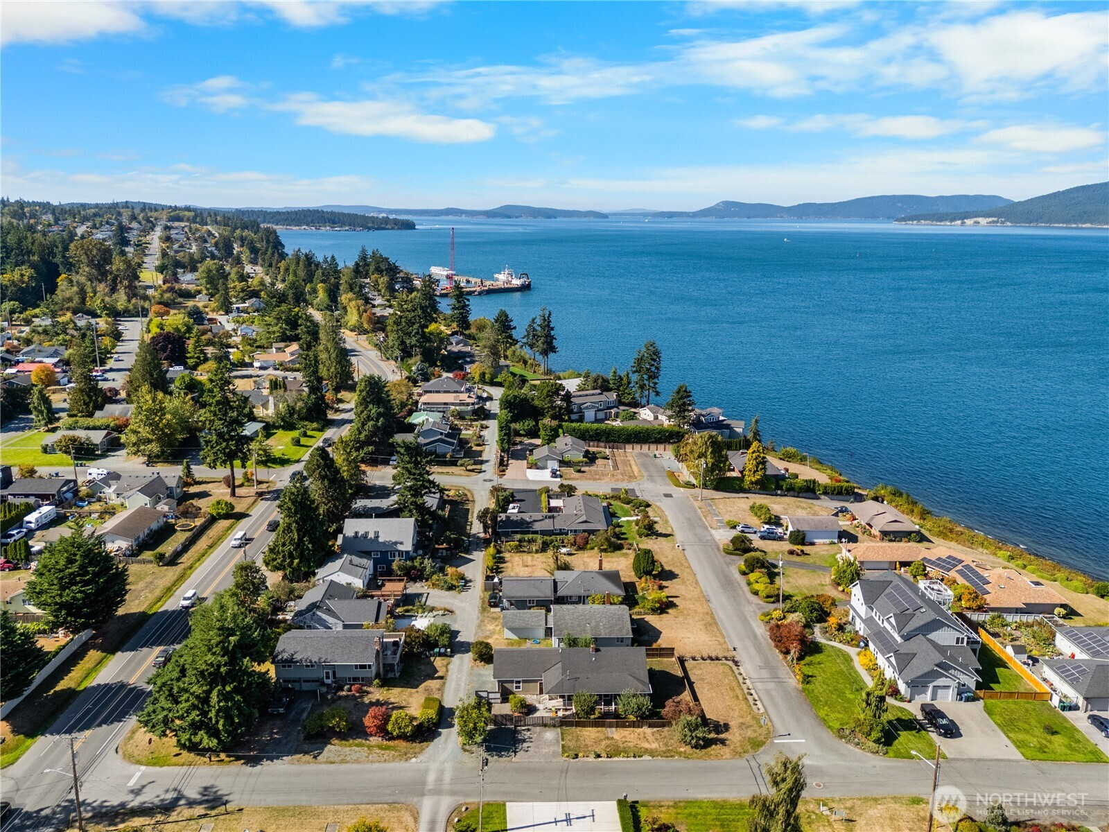 Enjoy incredible water views from this 3 bed & 2.5 bath Old Town home set on a spacious corner lot with room for an ADU. The main floor offers a bright living area with built-in seating and a work nook, plus a stylish kitchen with stainless appliances, granite counters, and island dining. The primary suite with walk-in closet and full bath is conveniently on the main level, while two bedrooms sit upstairs. A finished basement adds versatility with a full bath, laundry, storage, and space for a gym, office, or media room. Outdoor patios and deck space provide multiple spots to relax and take in the views. Two-car garage, mudroom entry, and off-street parking add comfort and convenience.