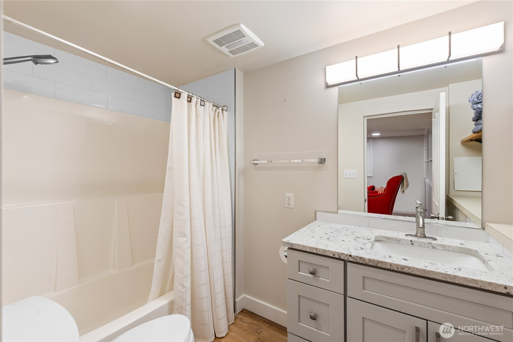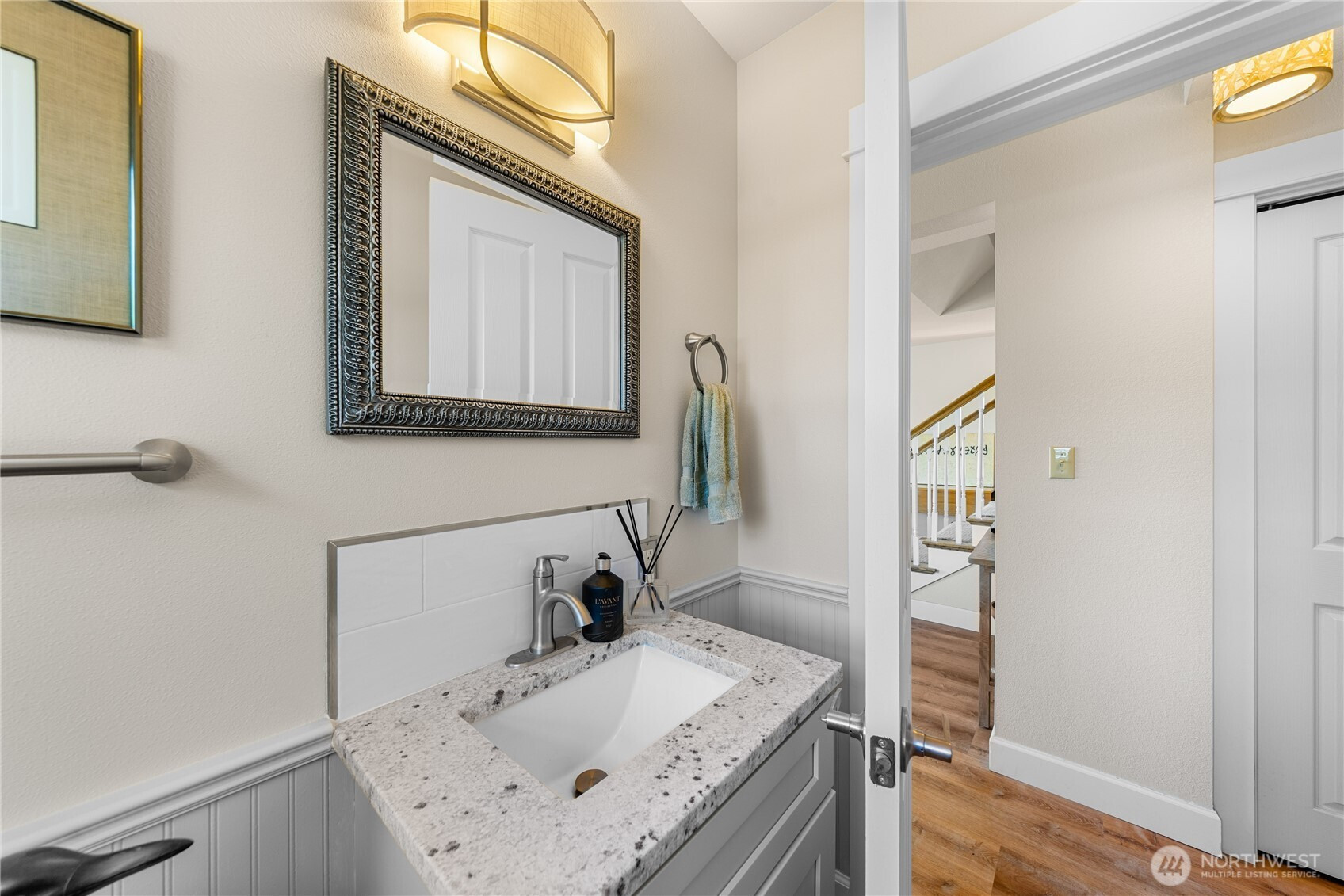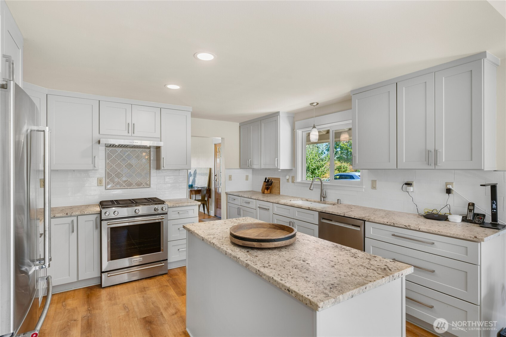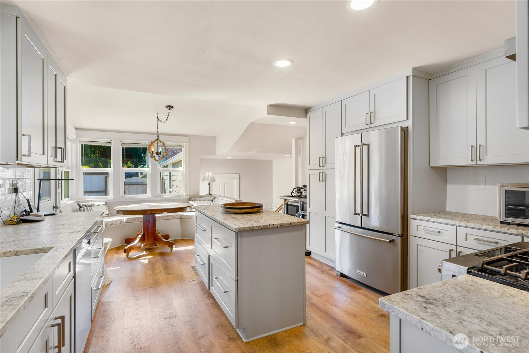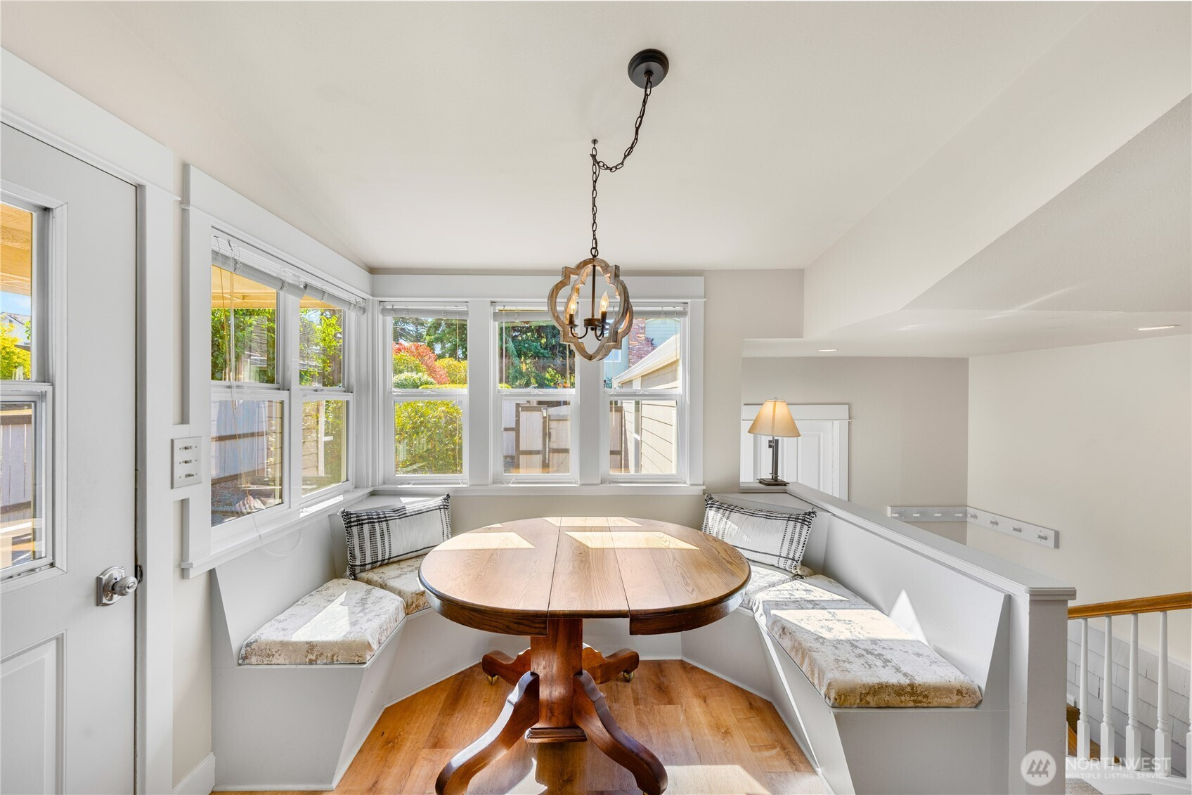 Enjoy incredible water views from this 3 bed & 2.5 bath Old Town home set on a spacious corner lot with room for an ADU. The main floor offers a bright living area with built-in seating and a work nook, plus a stylish kitchen with stainless appliances, granite counters, and island dining. The primary suite with walk-in closet and full bath is conveniently on the main level, while two bedrooms sit upstairs. A finished basement adds versatility with a full bath, laundry, storage, and space for a gym, office, or media room. Outdoor patios and deck space provide multiple spots to relax and take in the views. Two-car garage, mudroom entry, and off-street parking add comfort and convenience.