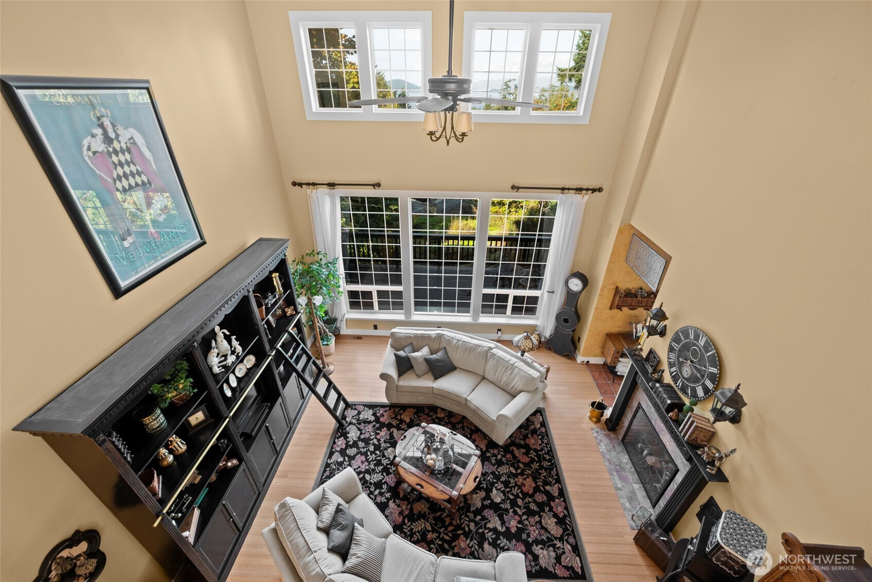 Beautiful custom craftsman home with main level living set on just over 2.5 acres overlooking Fidalgo Bay & the shipping channels! Elegant living room with a double sided gas fireplace & soaring ceilings with walls of windows to capture the water views & private setting. Chef's gourmet kitchen is ready for entertaining featuring a generous island, granite counters, stainless appliances & walk-in pantry. Large primary bedroom with updated ensuite bath and spacious walk-in closet. Upstairs offers two guest bedrooms, loft area & an updated guest bath. Cozy family room with kitchenette, bonus room and bath on the lower level. Wrap around deck, concrete patio, lush landscaping and a serene waterfall! RV/boat parking! Gated entry & access to Anacortes Forest Land trails. This property offers a perfect blend of private, tranquil living while being just 5 minutes from downtown Anacortes!!! NEW ROOF to be installed before closing.