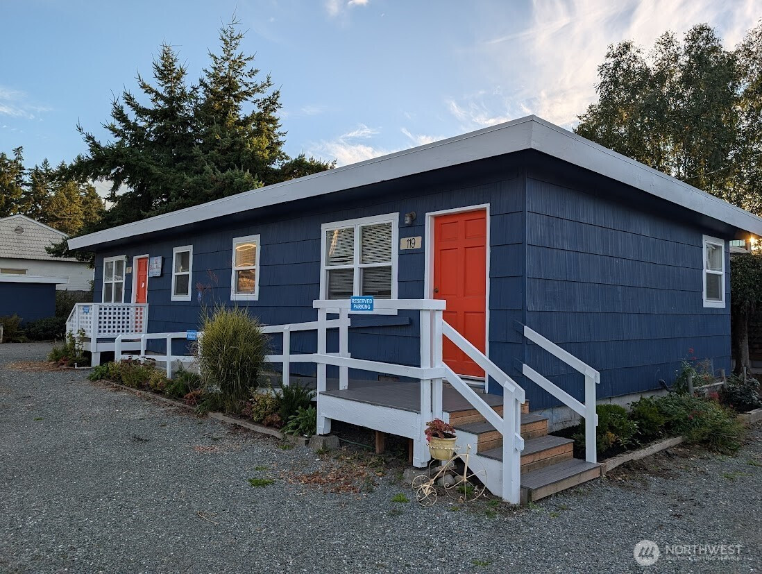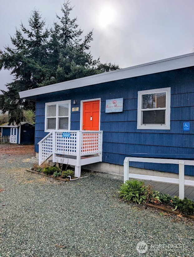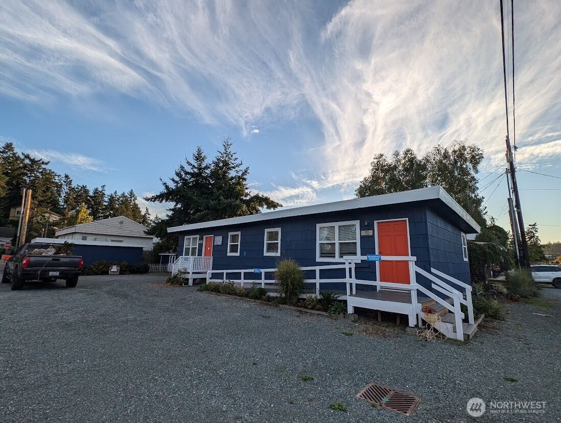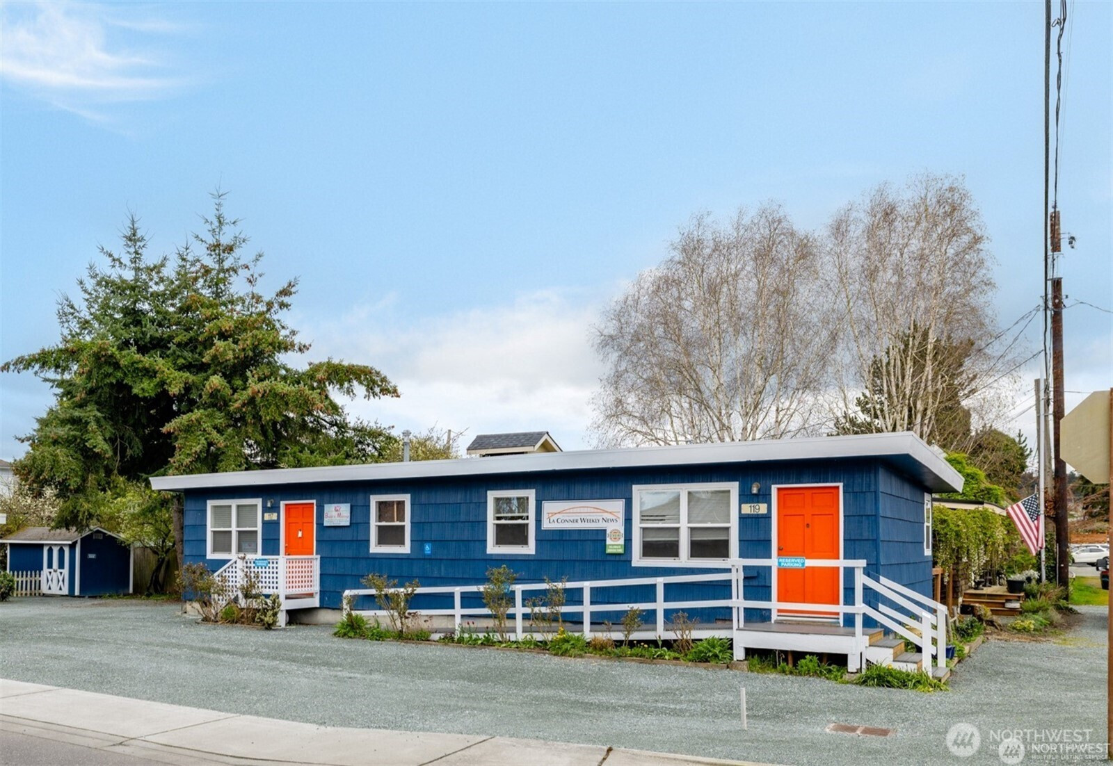 Downtown La Conner Business Opportunity: Prime location on edge of Downtown La Conner Historic Zone. Rare corner lot with off street parking just off Morris Street/ La Conner Historic District on 3rd St drive to La Conner Marina. Prime walking area +close to Public Restrooms. Presently 2 units + Commercial Gar/Storage. VACANT North Unit AVAILABLE, appx 500 sq-ft @ $995-per month. Possible to lease full building at $1850.00 per month NN. Originally built 1960 restaurant, 1979 moved onto site. Can be opened up with tenant improvements into single business opportunity such as coffee, bakery, retail or professional office space. Open 5 car parking front +plus 1 behind. SOUTH END Garage/Storage AVAILABLE SEPARATELY as 500 sq-ft +Business vehicle parking (has electric panel & lighting) or as full lot package. See Plot Plan drawing and SEE FLYER PLEASE. NO SIGN 119 - don't disturb 117 Massage tenant please.